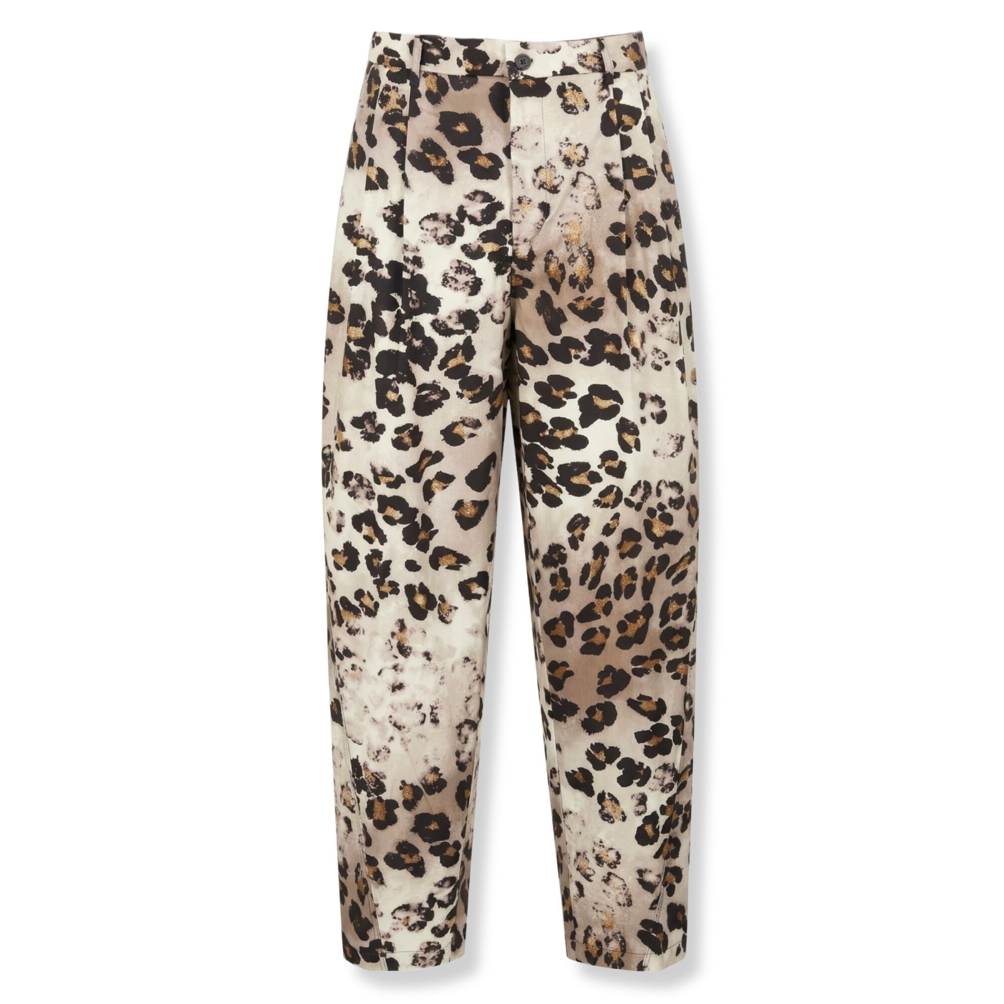 Pantaloni Laneus. Design in tessuto con motivo animalier, vita regular con pince sul davanti, linea a gamba ampia.