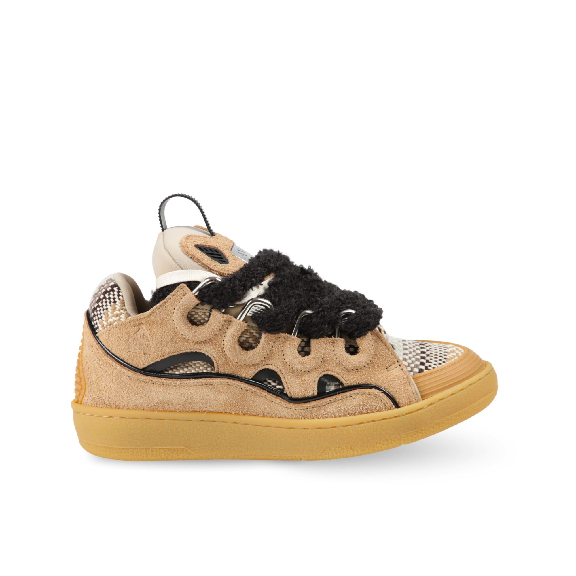Curb Suede Sneakers with Mesh Laces Lanvin. Tomaia strutturata in cotone jacquard e suede, punta tonda e chiusura con lacci extra larghi.