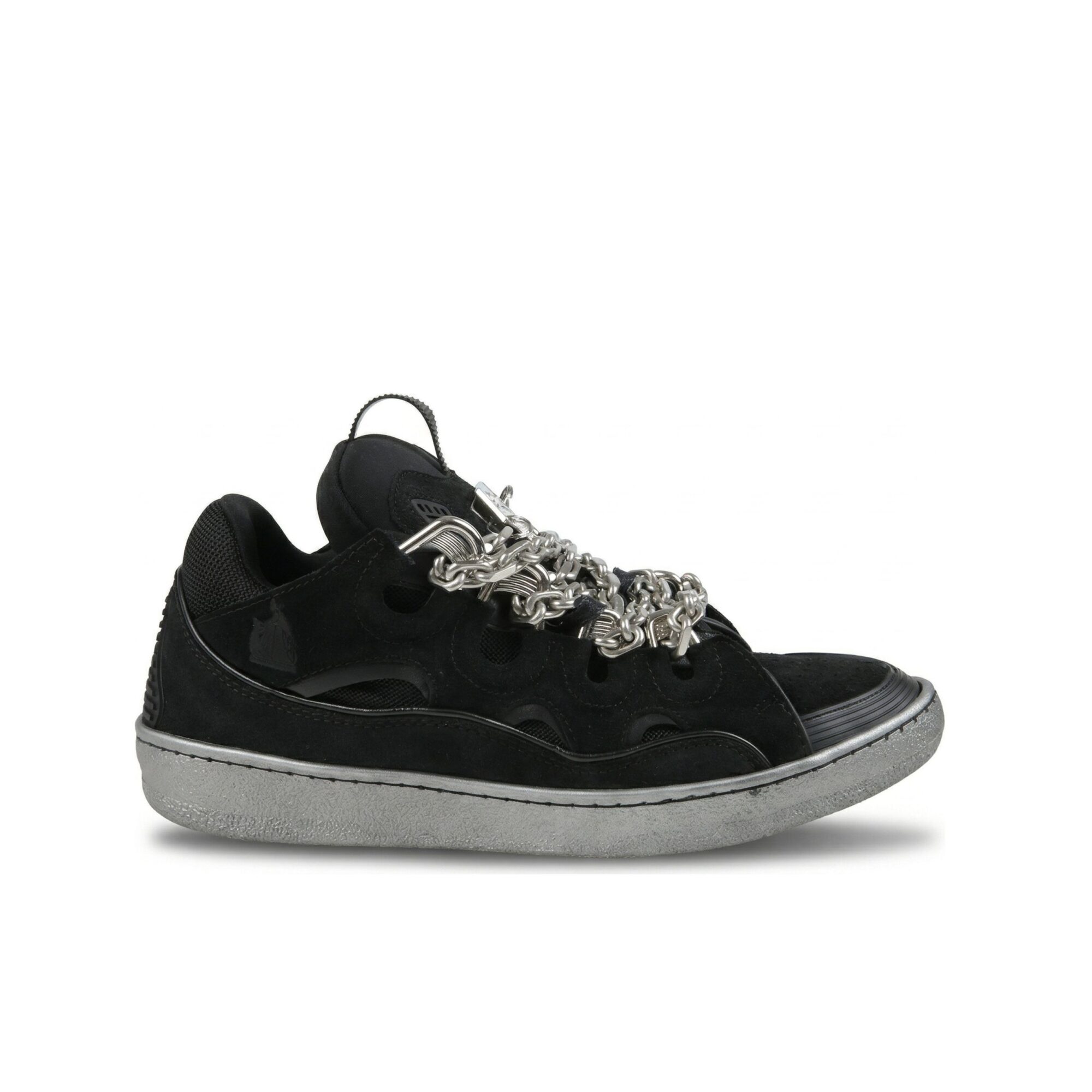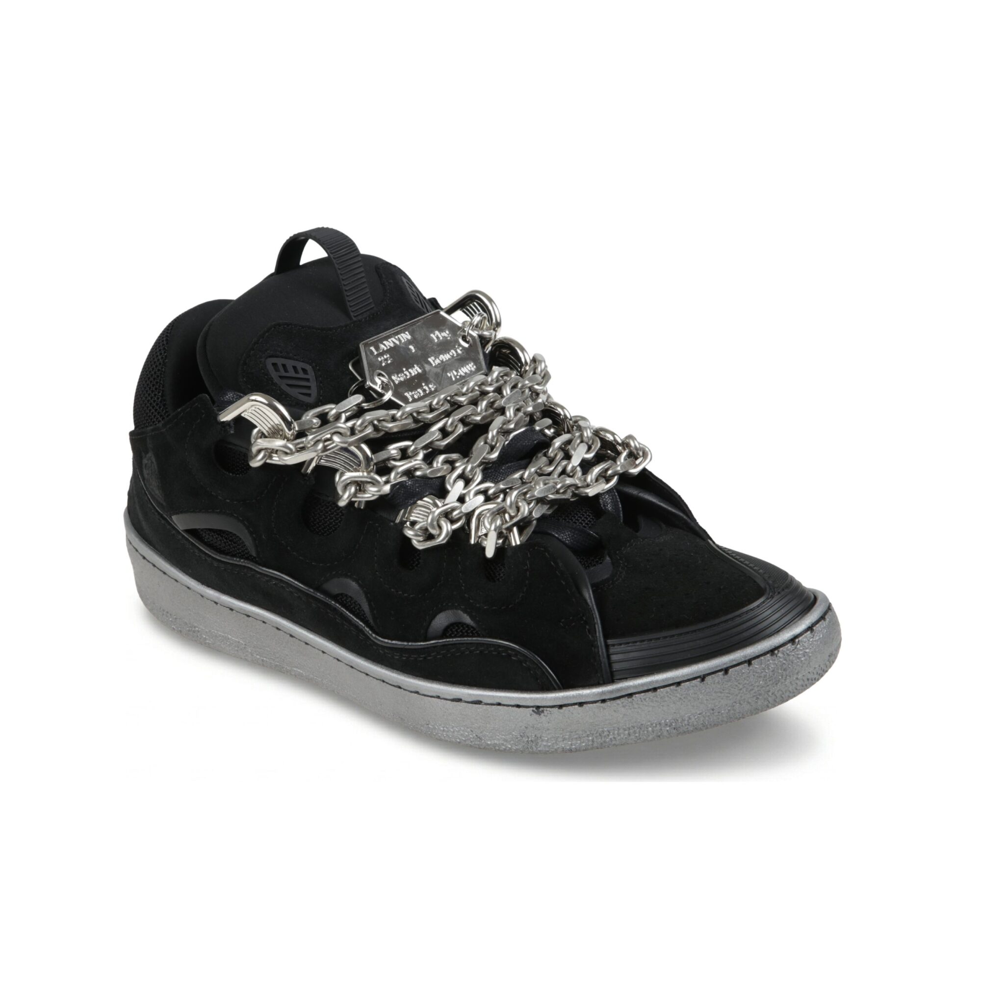 Sneakers Curb ID Chain Lanvin. Tomaia oversize in suede, allacciatura con catena metallica e targhetta sul davanti, suola in gomma.
