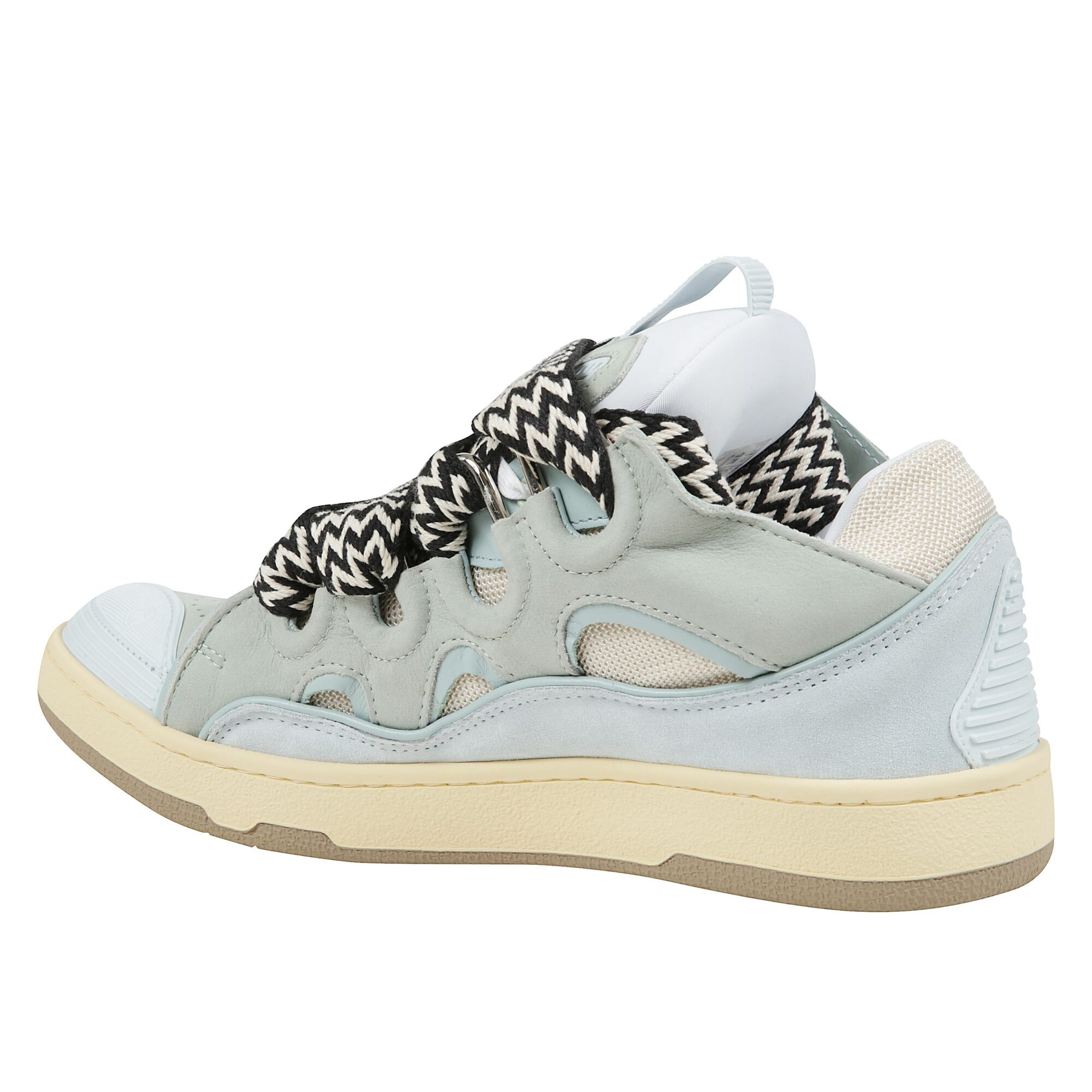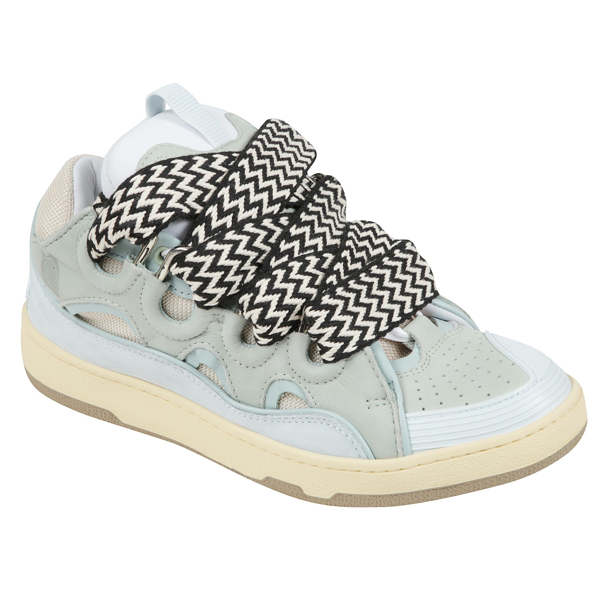 Curb sneakers di Lanvin. Design in pelle e tessuto con microfori. Chiusura con lacci spessi multicolor.