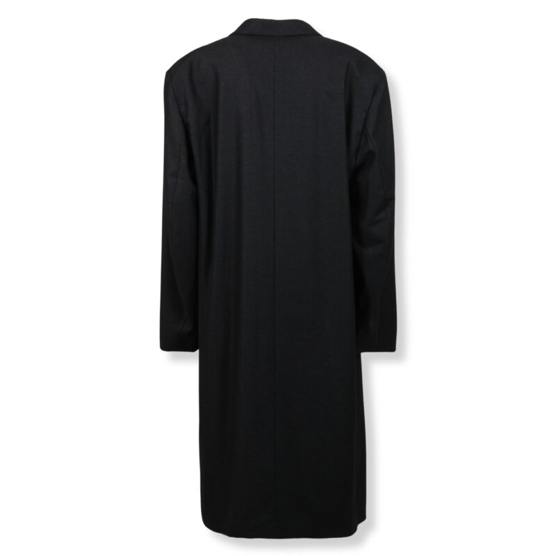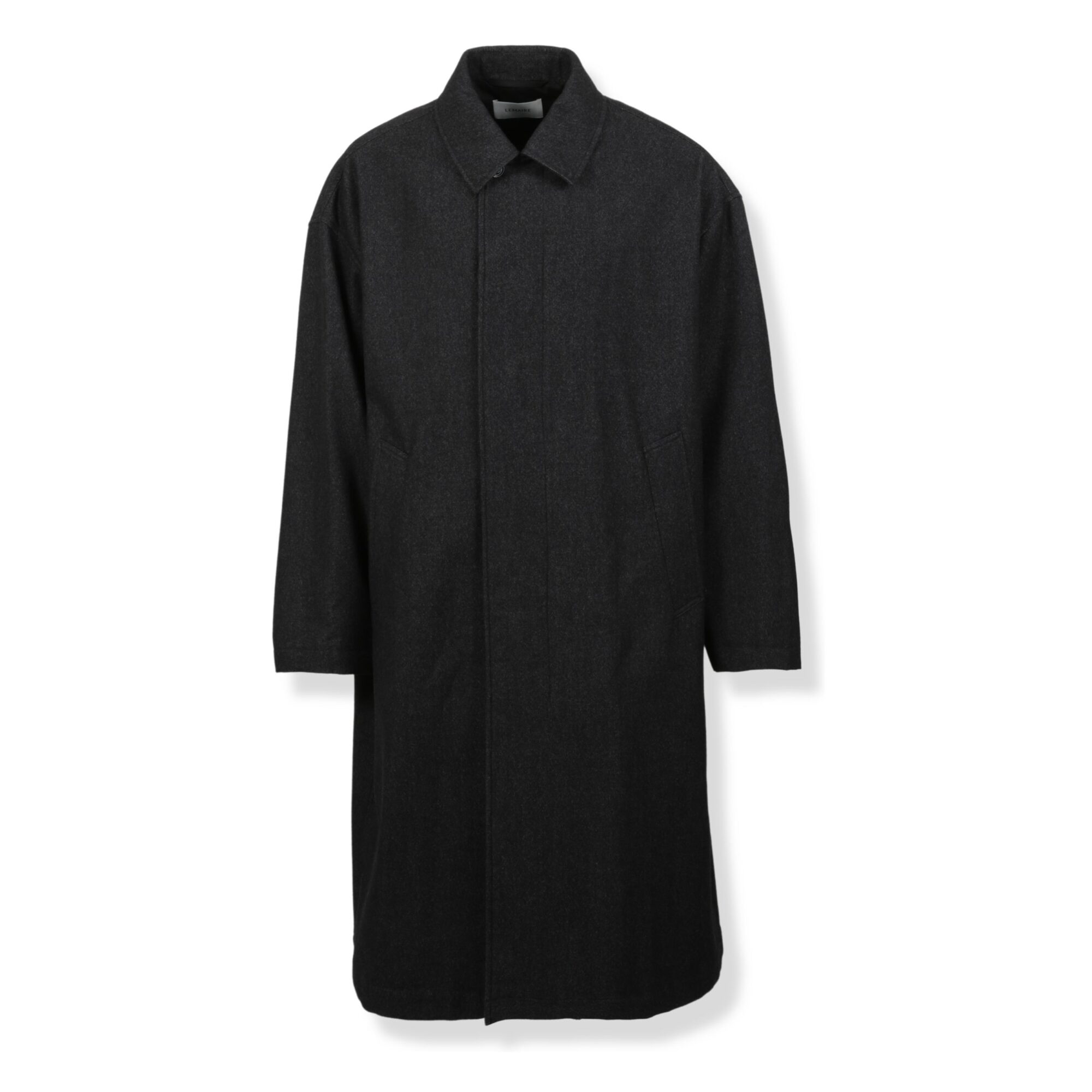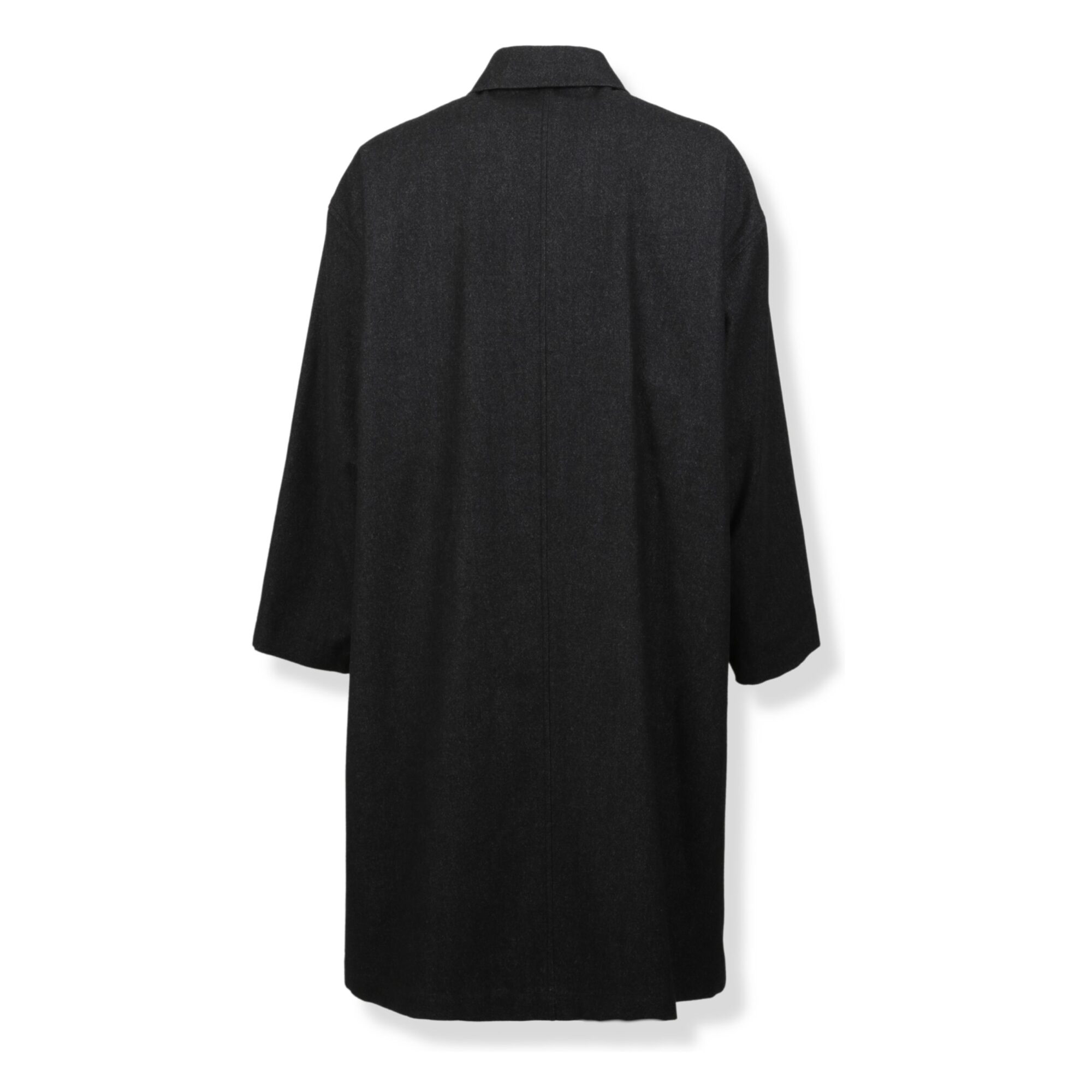 Soprabito Lemaire. Taglio oversize, colletto a camicia e chiusura frontale nascosta con due tasche a filetto laterali.