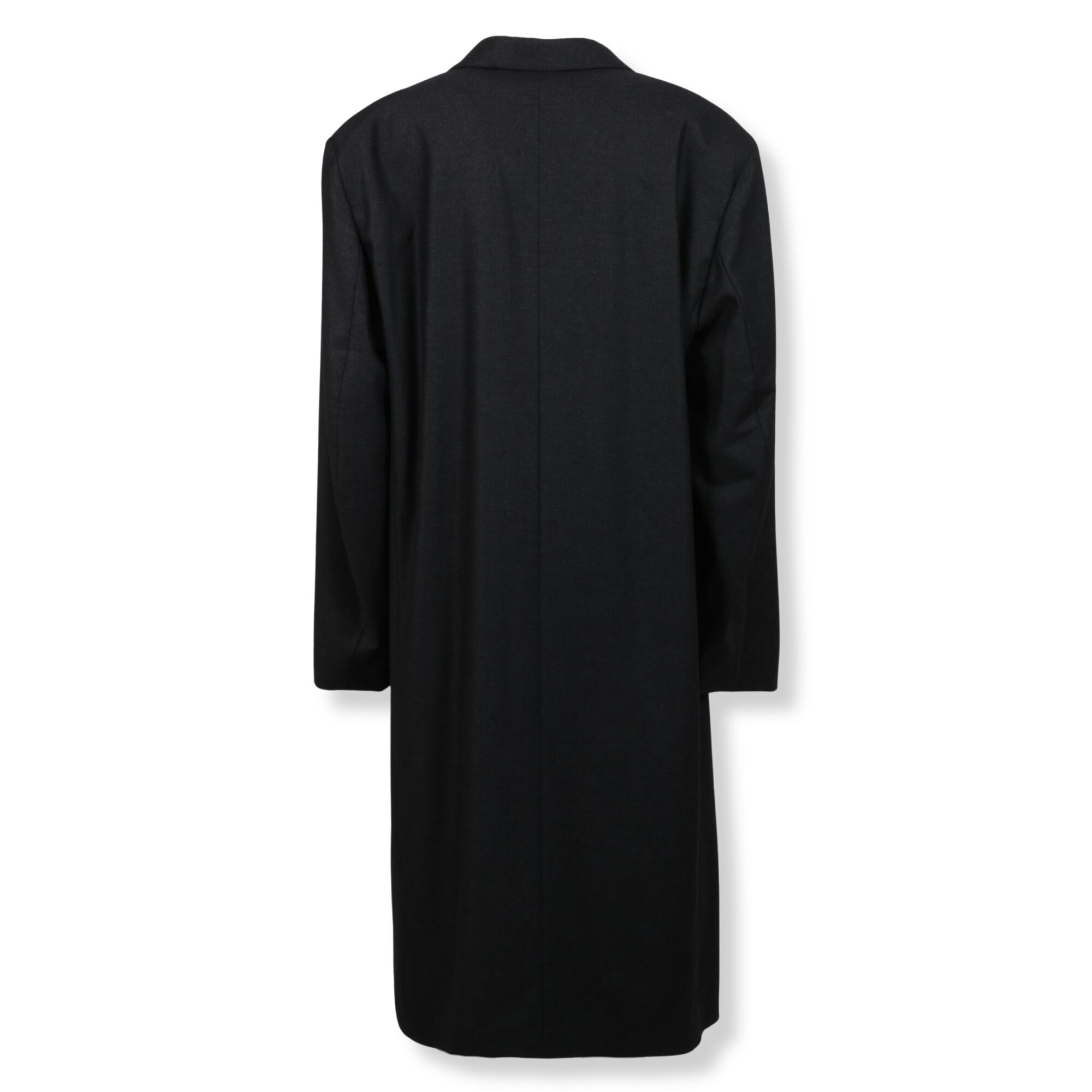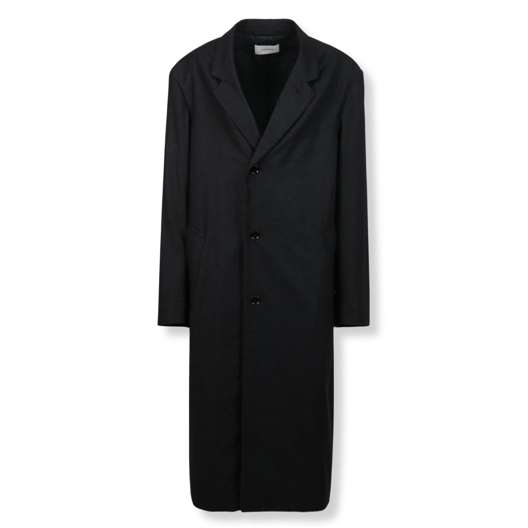 Soft Chesterfield Coat Lemaire. Taglio oversize, collo rever. Chiusura monopetto con bottoni e due tasche a filetto laterali.