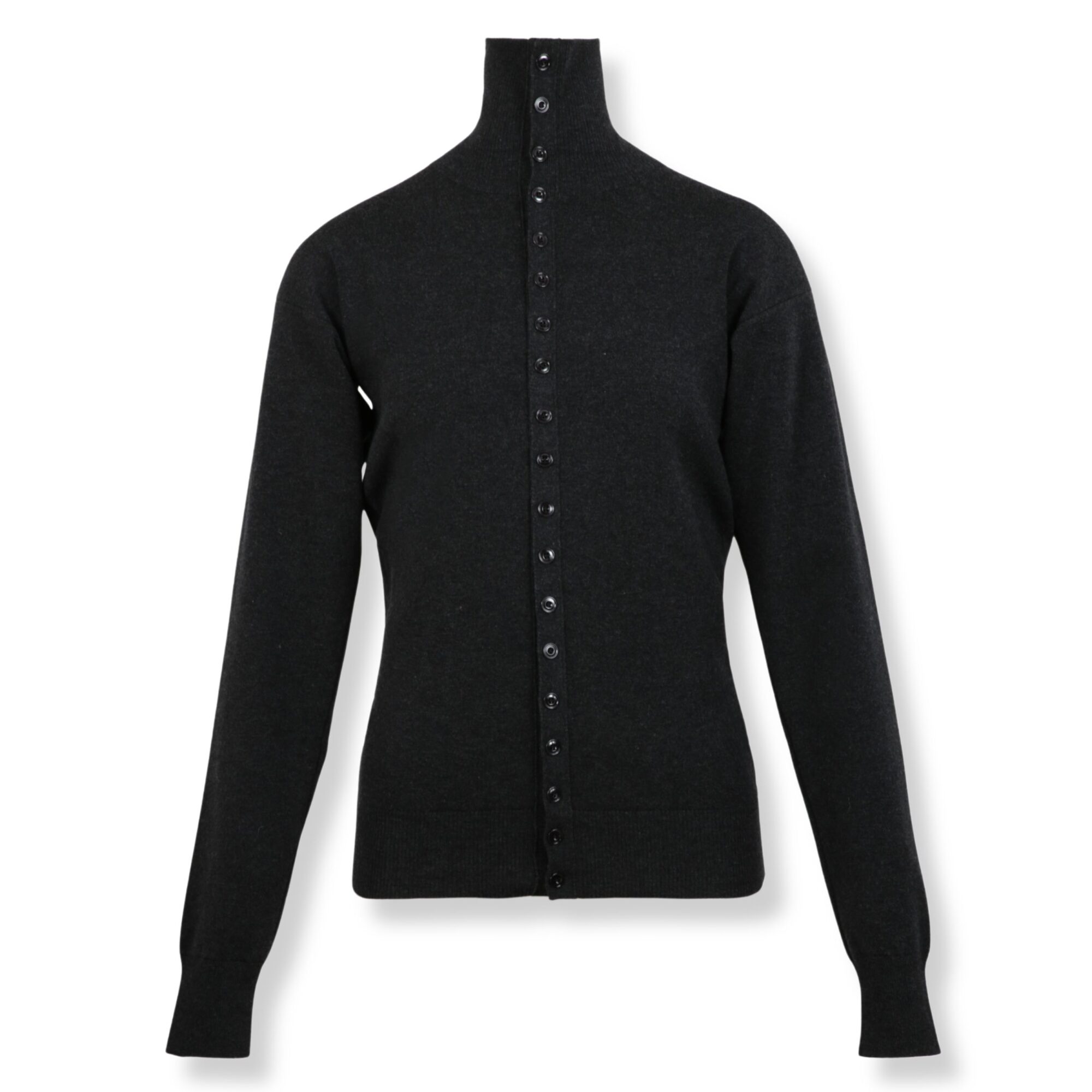 Buttoned Fitted Cardigan Lemaire. Collo alto e chiusura frontale a bottoni. Polsini e orlo a costine.