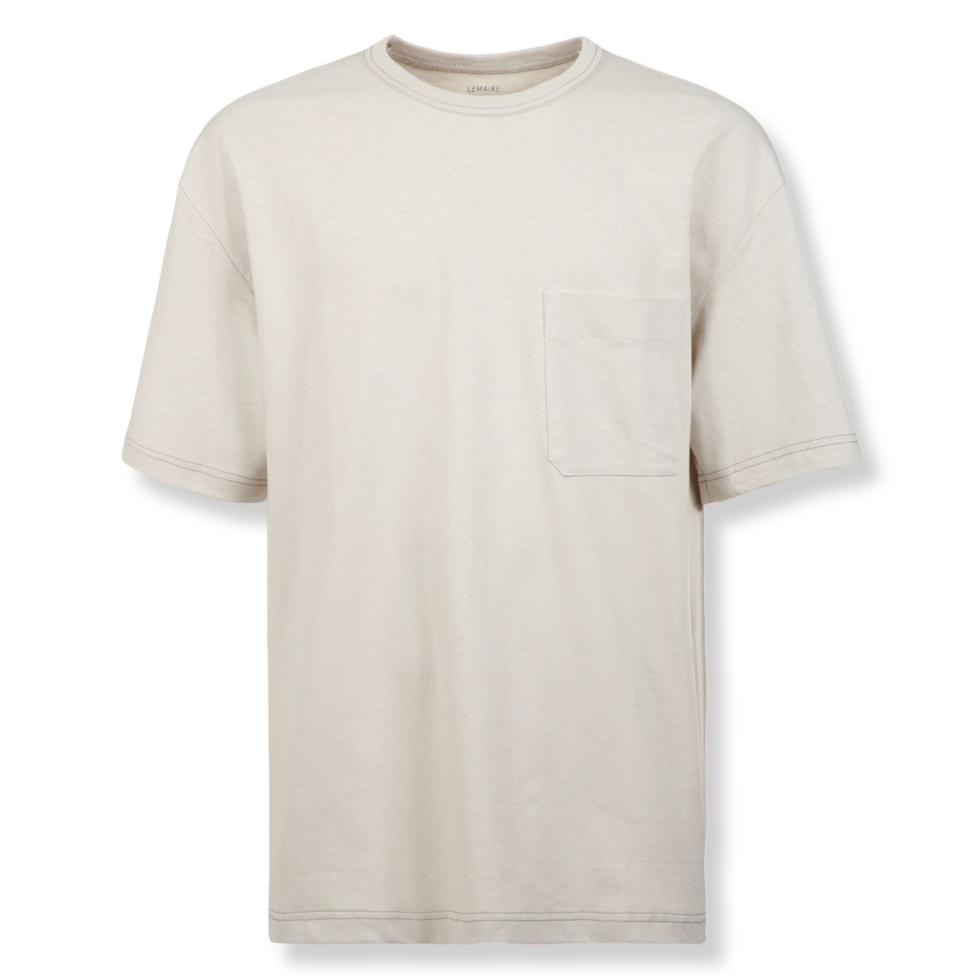 Boxy Short Sleeve T-Shirt Lemaire. Design in jersey di cotone e lino, taglio boxy con linea fluida, girocollo rotondo rifinito a costine e taschino applicato sul petto.
