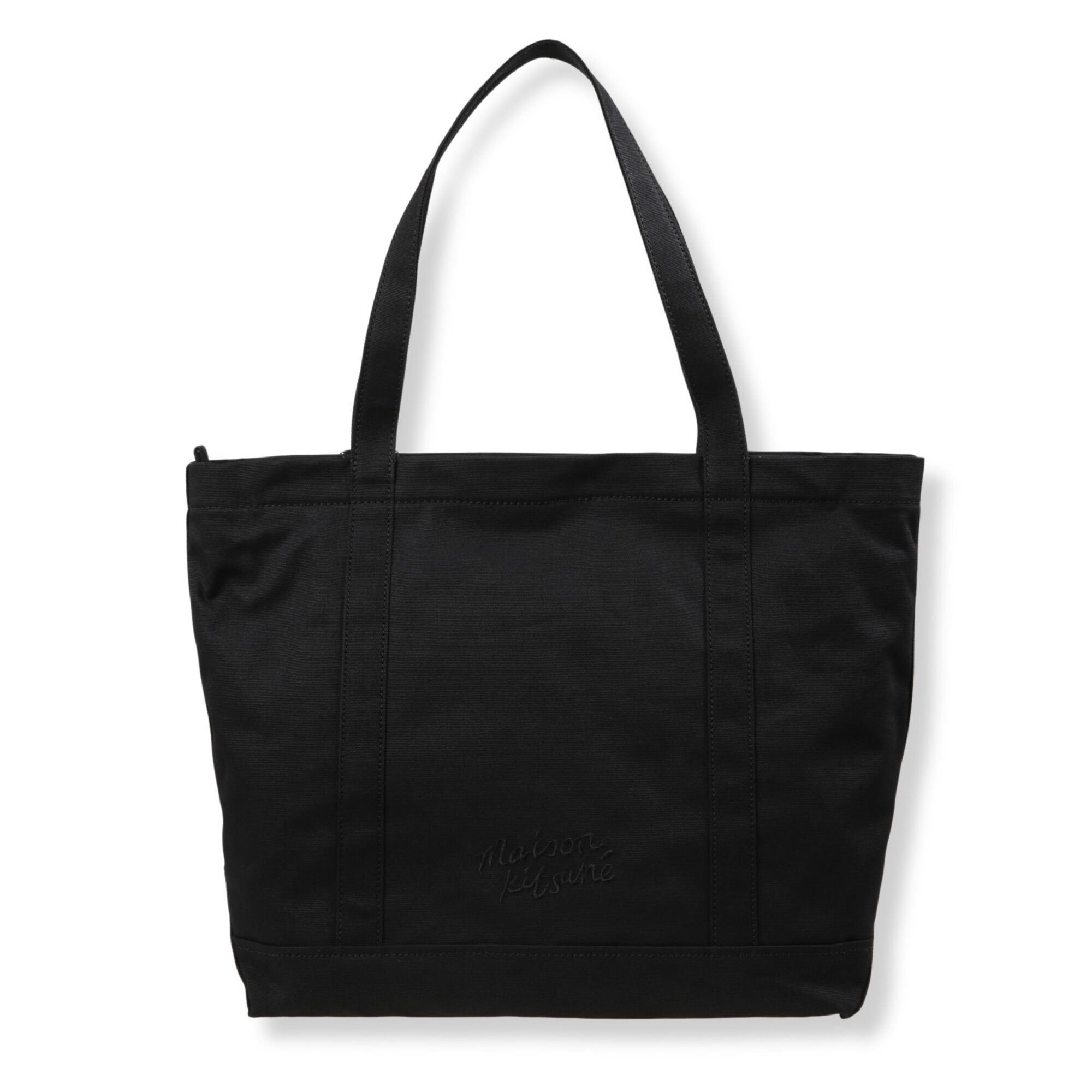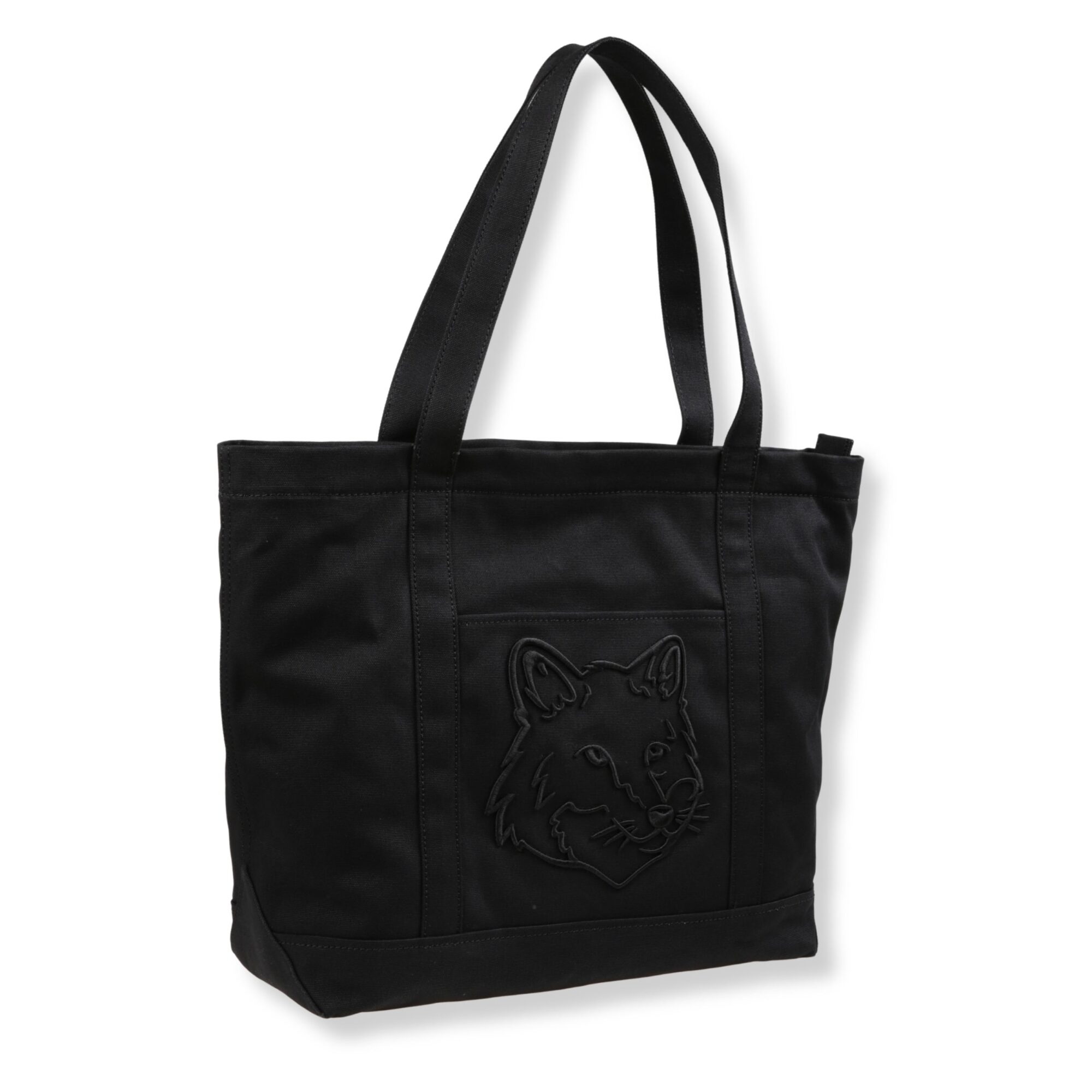 Fox Head Small Tote Maison Kitsuné. In tela con doppio manico superiore e ricamo sul davanti, chiusura con zip superiore.