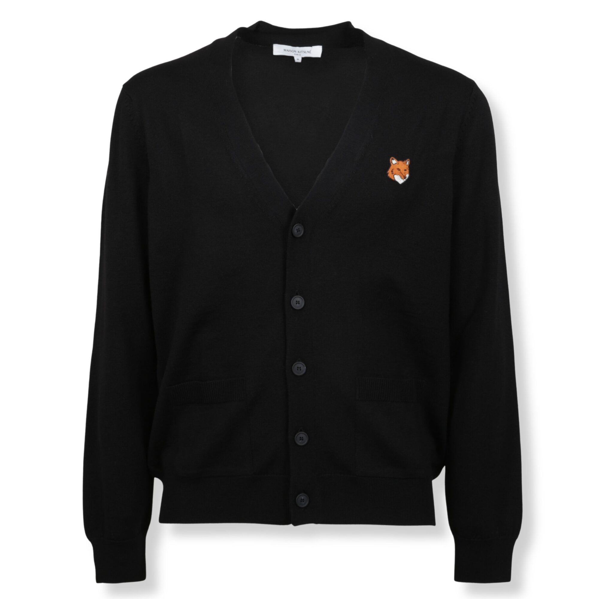 Fox Head Cardigan Maison Kitsuné. In lana merino, scollo a V e chiusura con bottoni frontale. Bordi a costine e logo del brand sul petto.