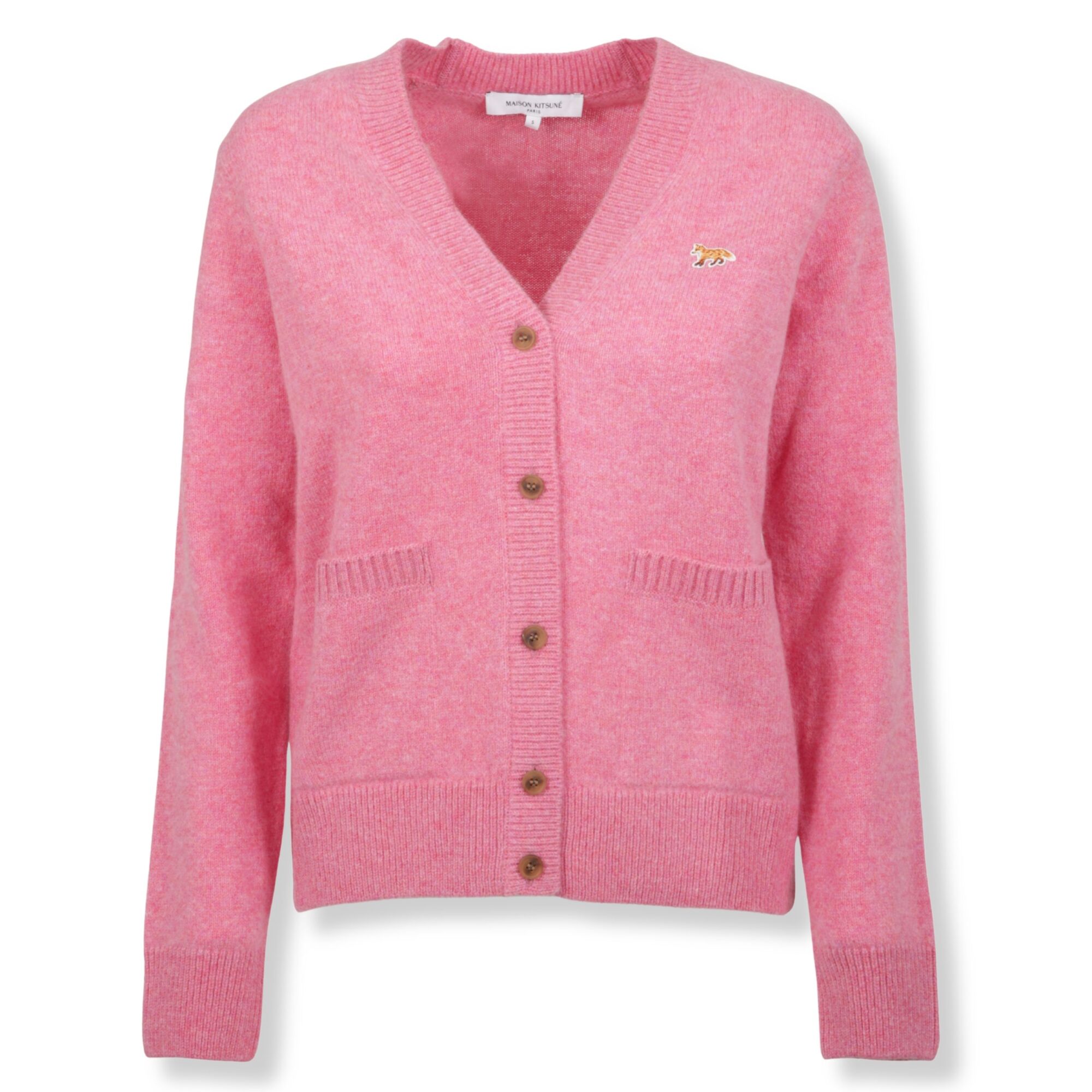 Baby Fox Boxy Cardigan Maison Kitsuné. Scollo a V e abbottonatura frontale, bordi rifiniti a costine. Piccolo logo Baby Fox sul petto e due tasche applicate sul davanti.
