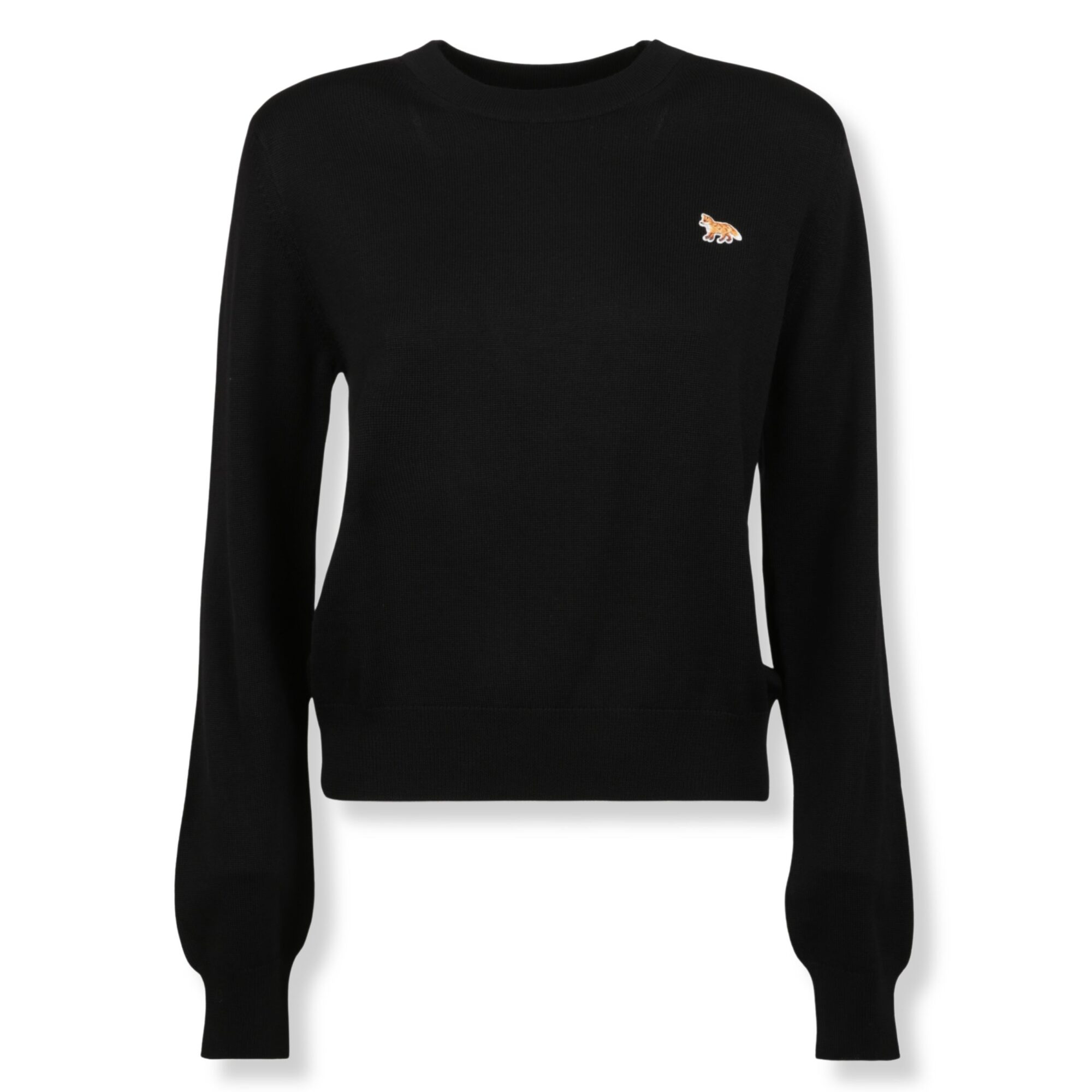 Baby Fox Regular Jumper Maison Kitsuné. In lana merino, girocollo e bordi rifiniti a costine con piccolo logo del brand sul petto.