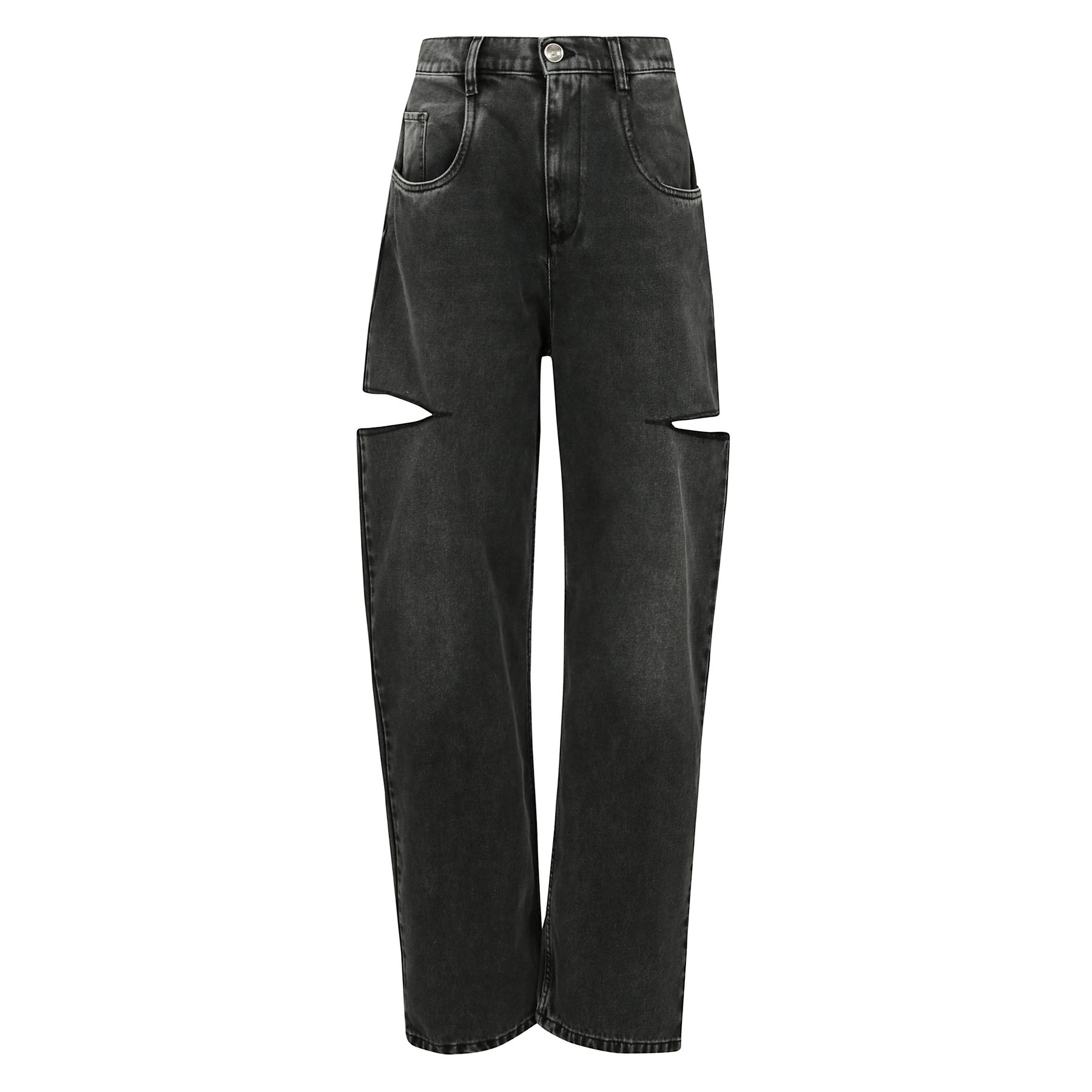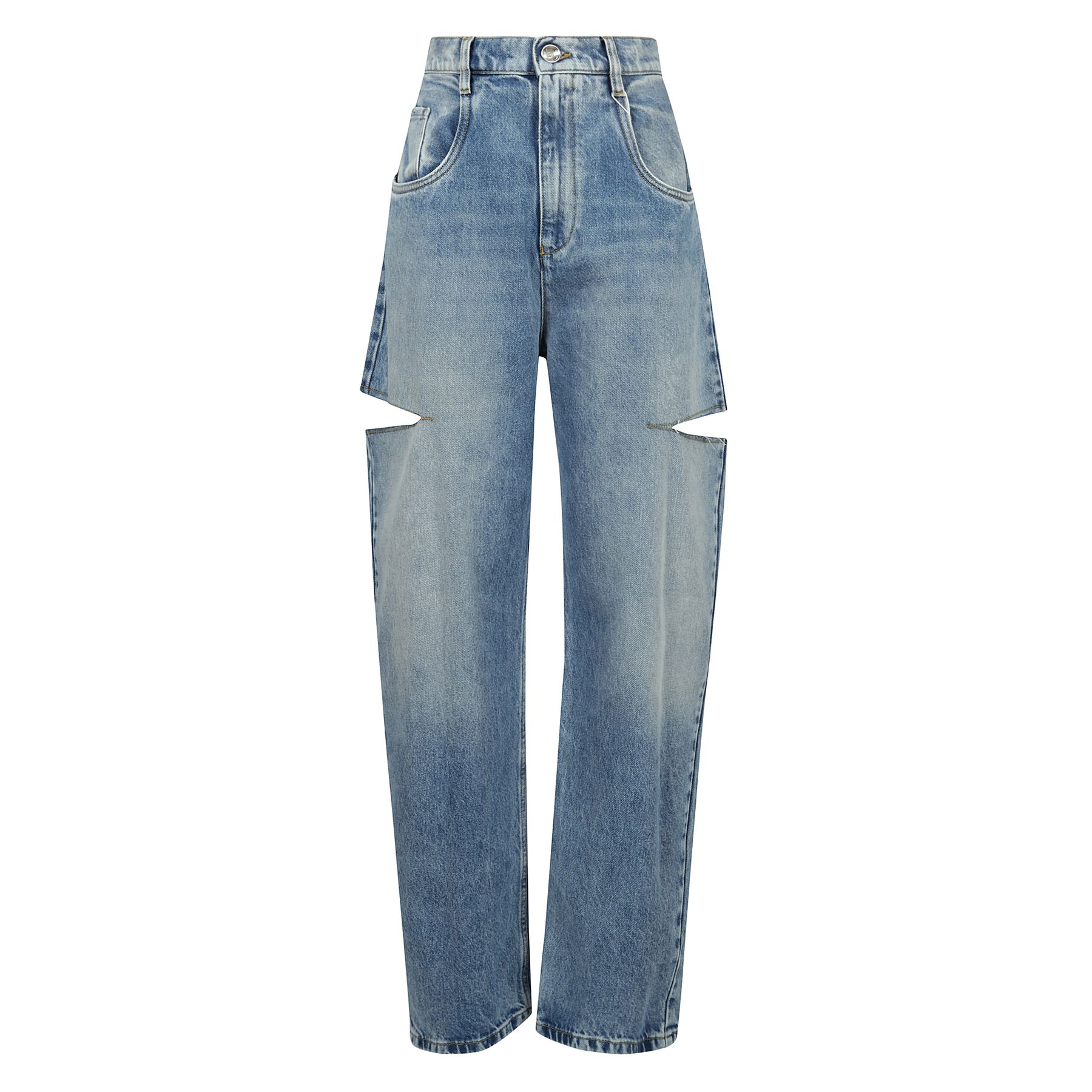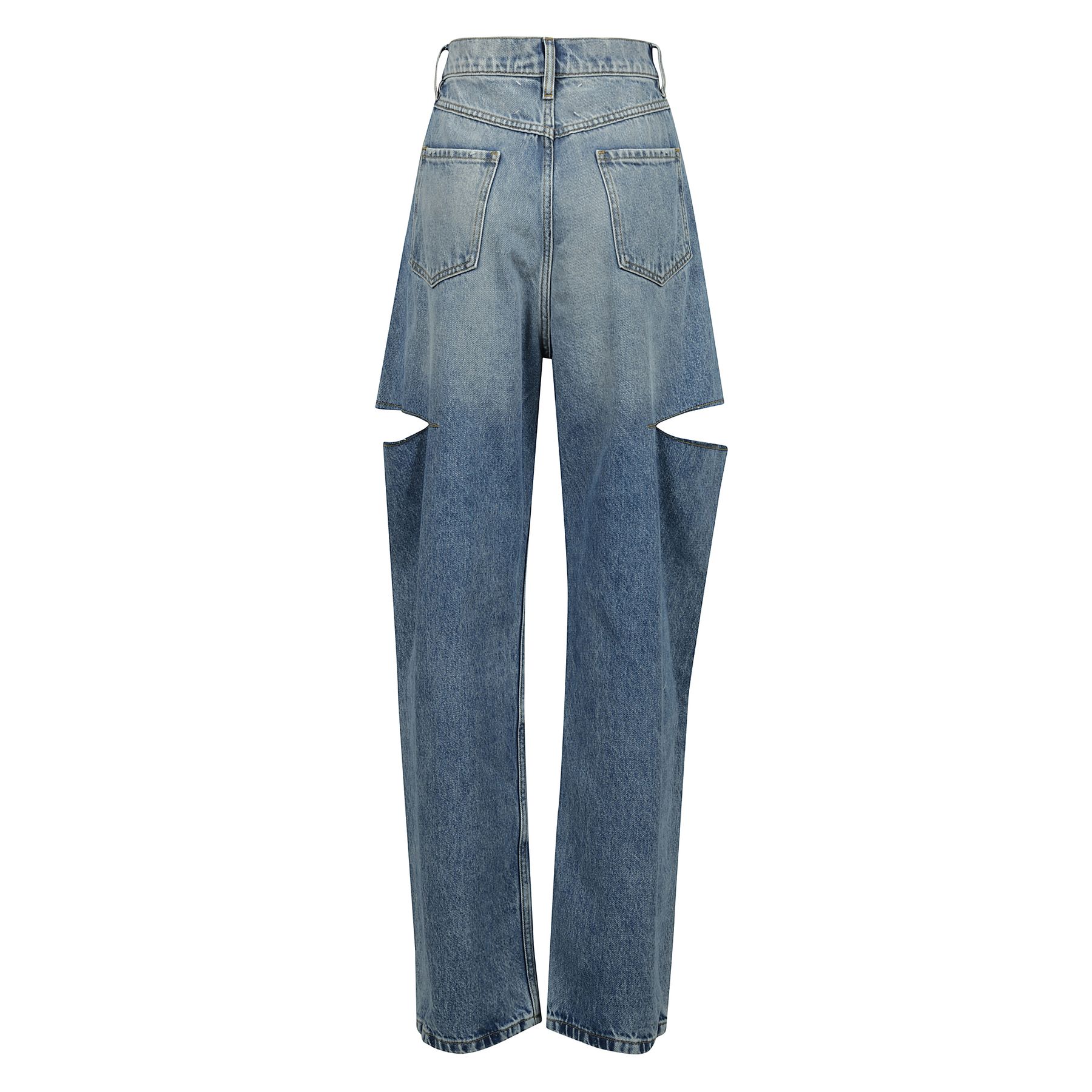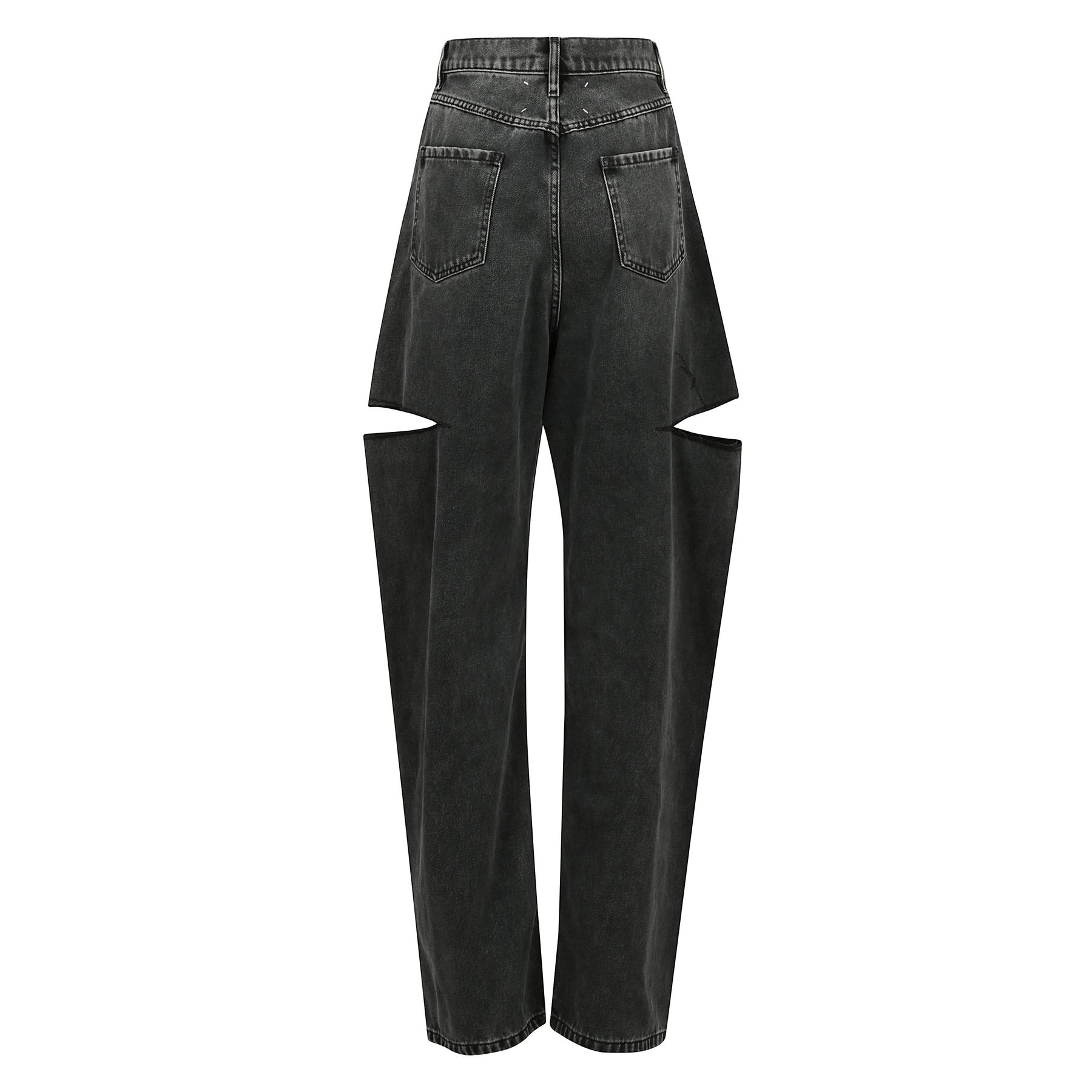 Jeans Maison Margiela. In denim, aderenti in vita e voluminosi sulle gambe. Cinque tasche, cut-out sulle cosce ed iconico logo del brand sul retro.