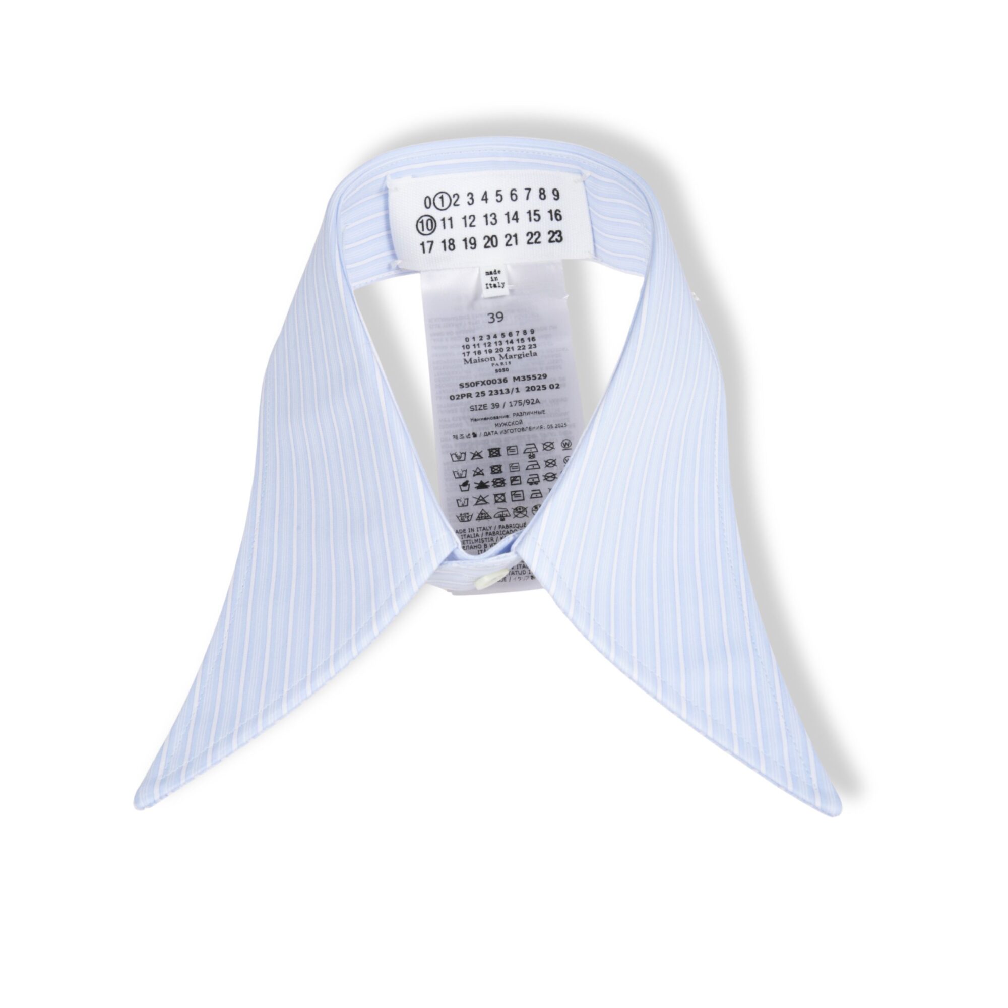 Col en Pointe Maison Margiela, modello in cotone a righe. Chiusura con unico bottone centrale.