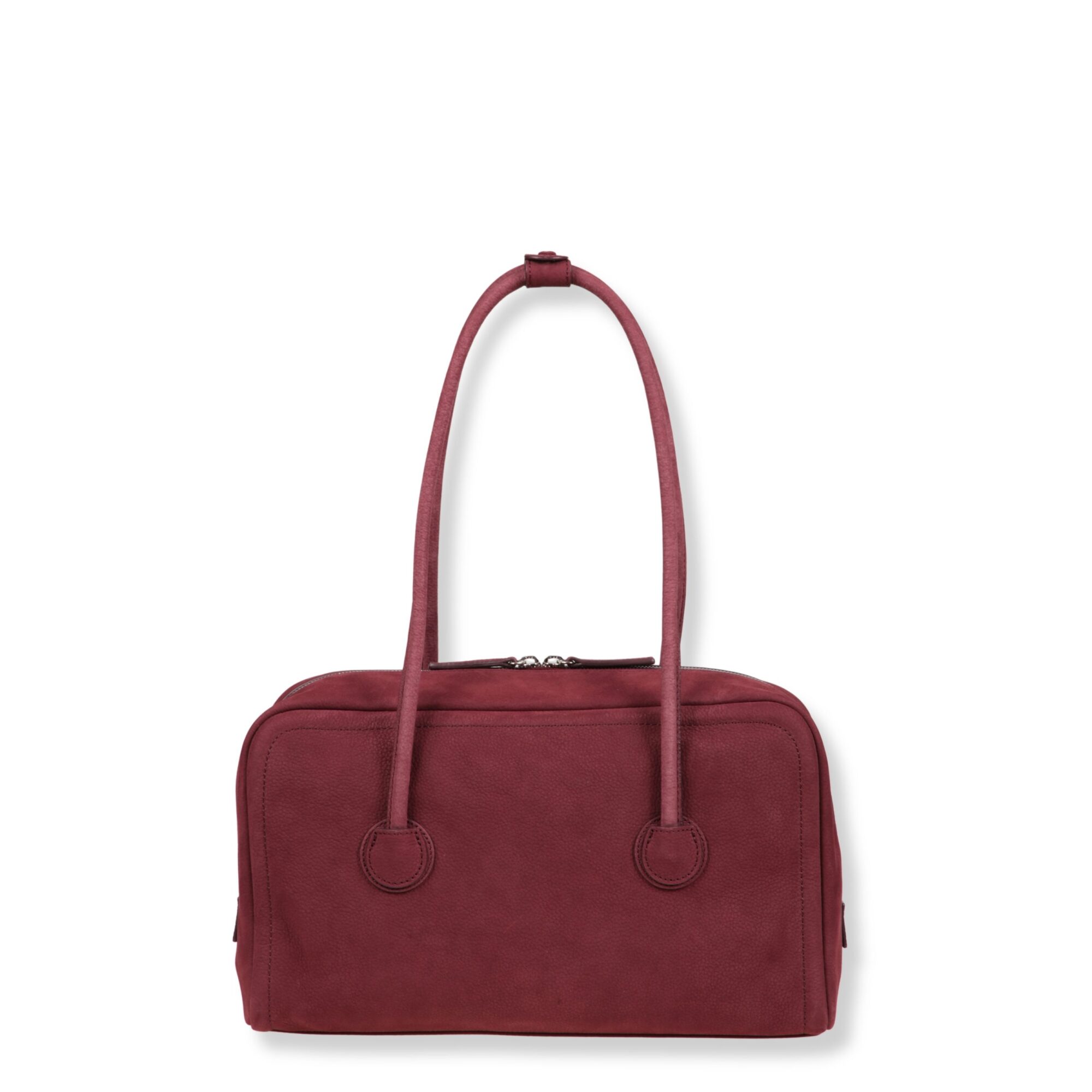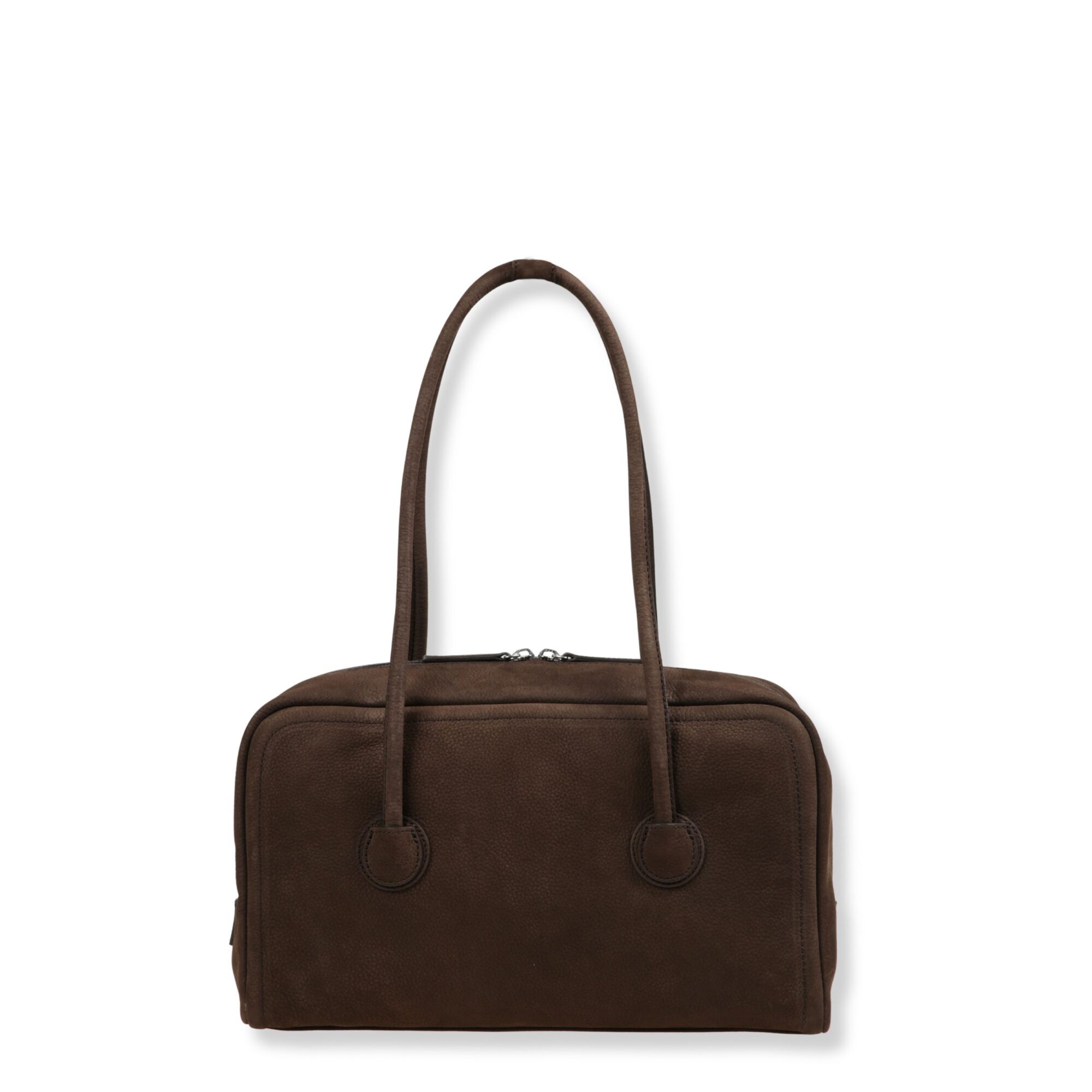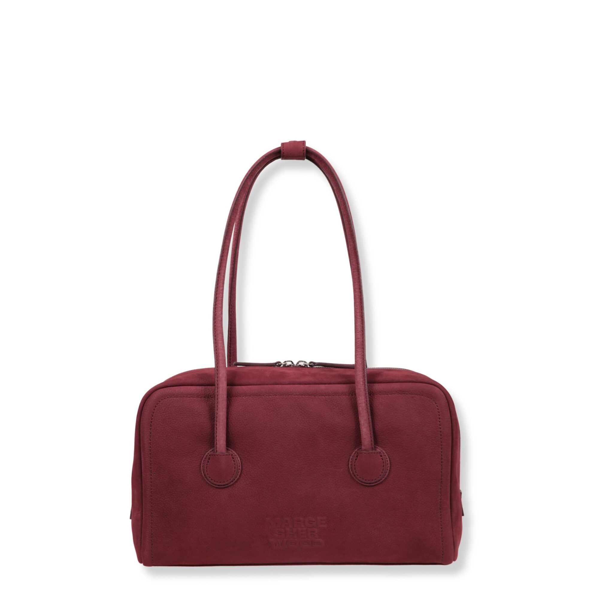 Soft Boston Bag Marge Sherwood. Corpo in pelle effetto nabuck, con logo del brand impresso sul pannello frontale. Chiusura superiore a cerniera e due manici sottili.