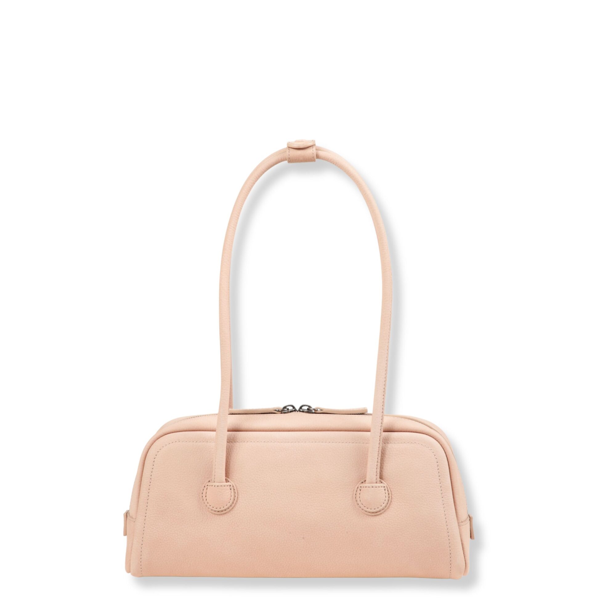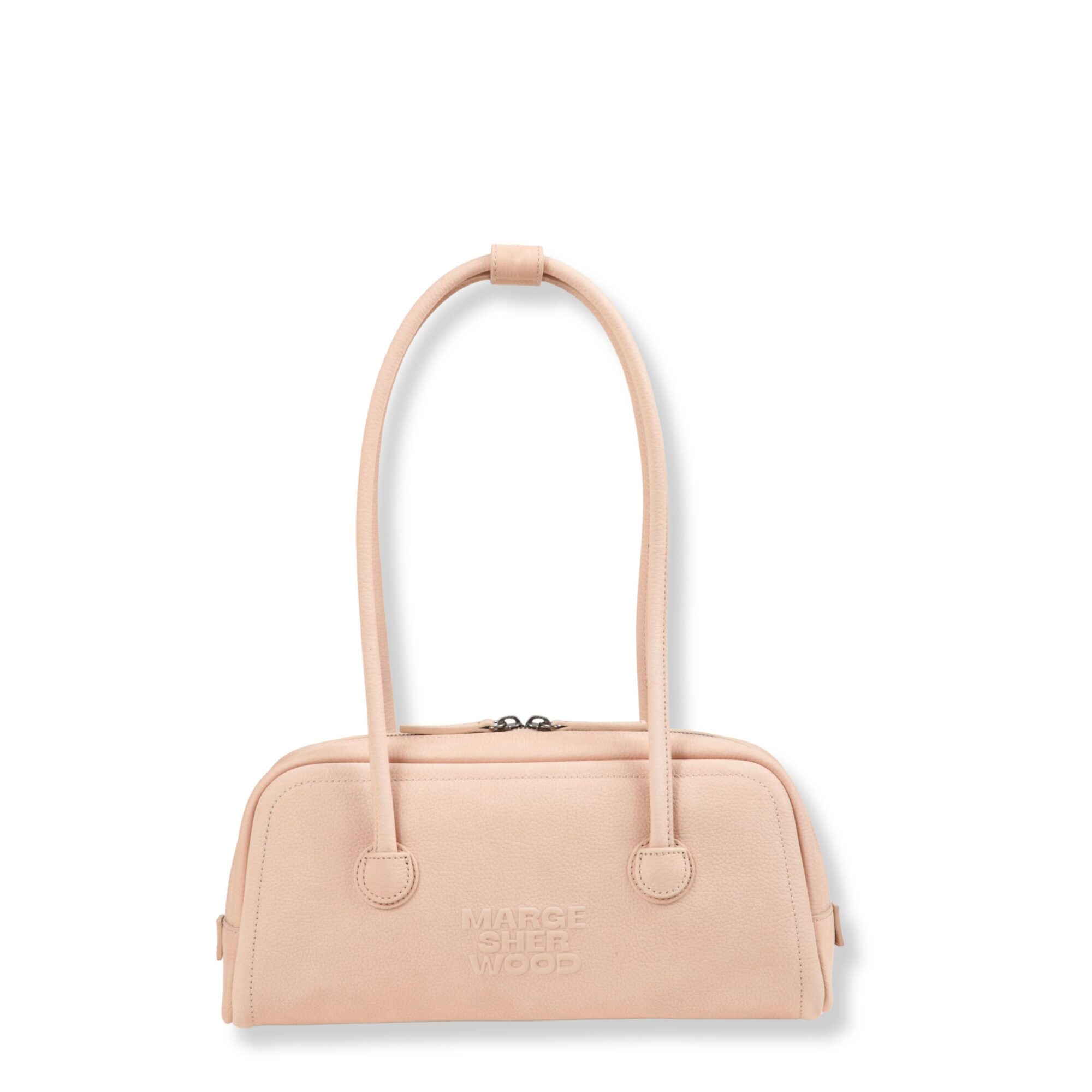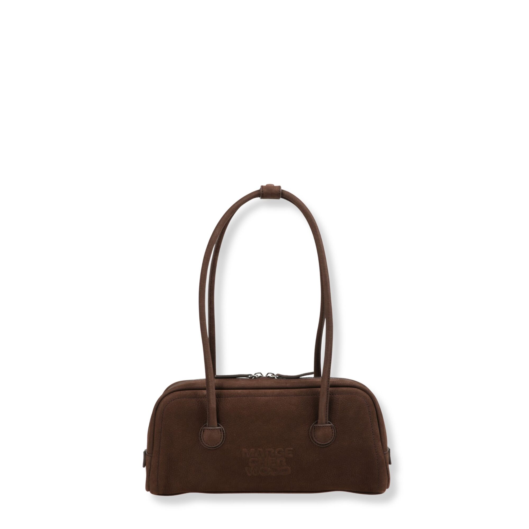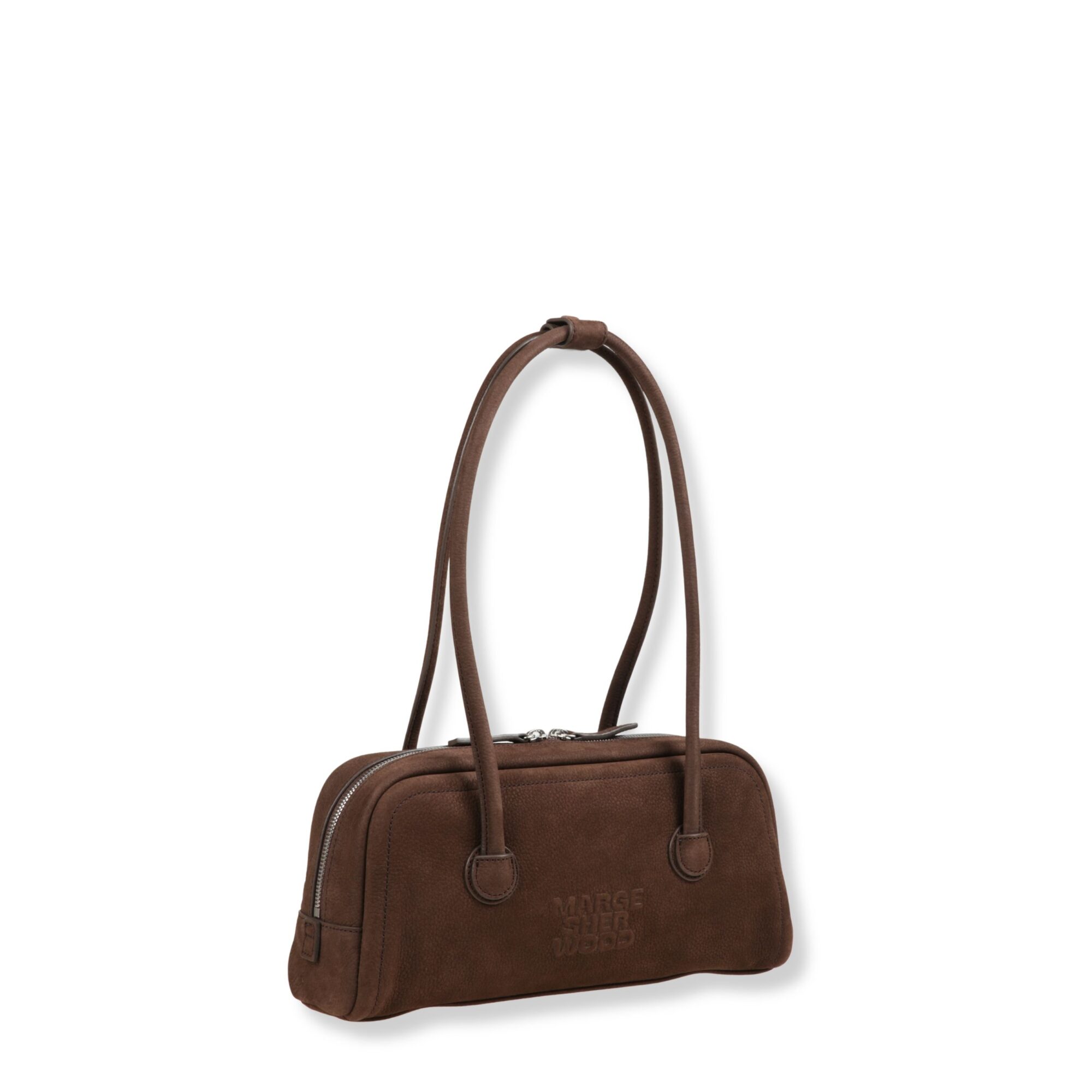 Soft Baguette Bag Marge Sherwood. Corpo in pelle effetto nabuck, con logo del brand impresso sul pannello frontale. Chiusura superiore a cerniera e due manici sottili.