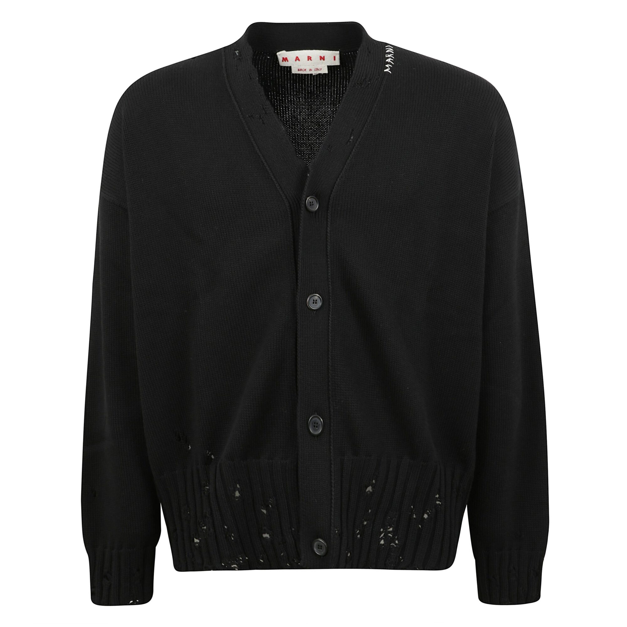 Cardigan Marni. Design con scollo a V ed effetto distressed sul bordo inferiore. Logo del brand ricamato sul bordo destro del collo.