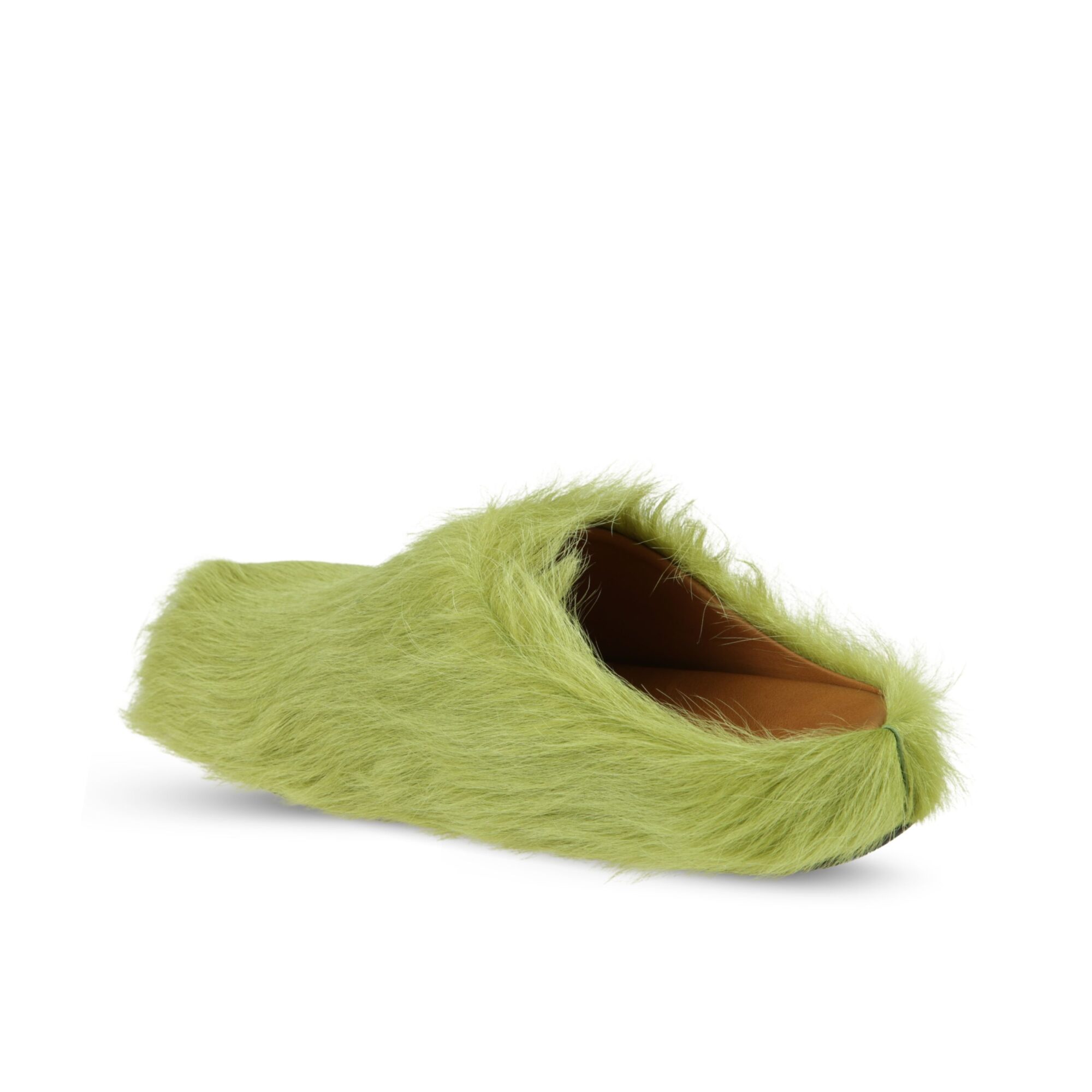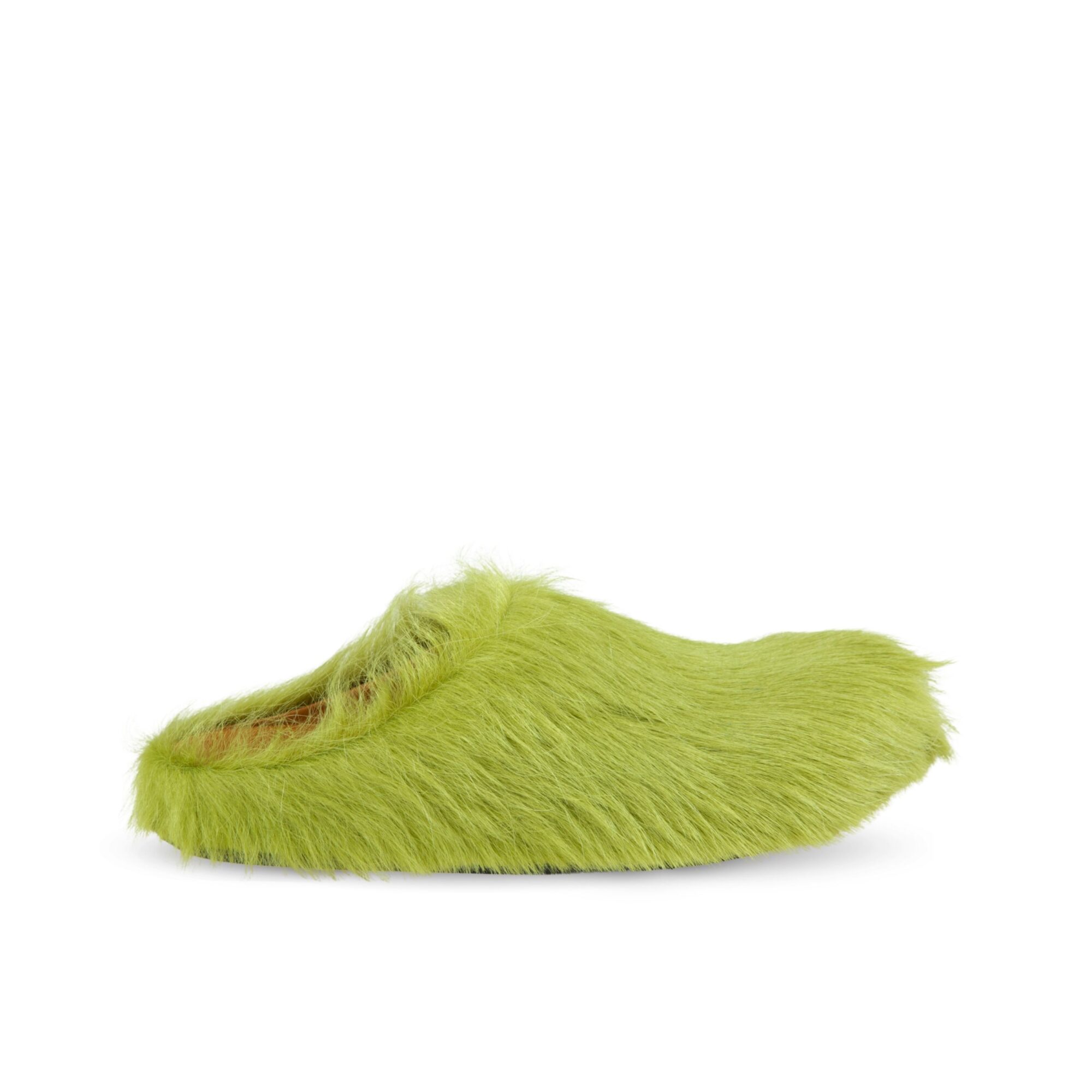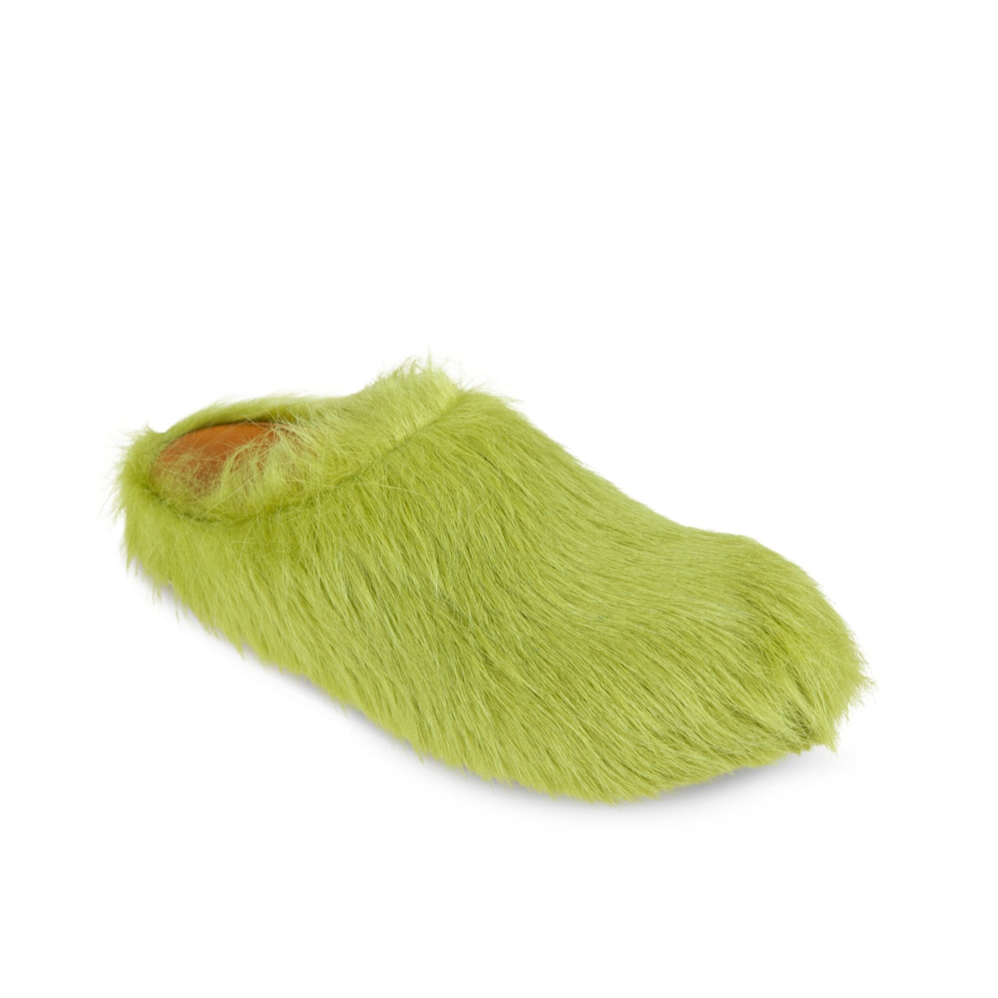 Fussbett Sabot Marni. Design slip-on con tomaia rifinita in shearling a pelo lungo e suola in gomma.