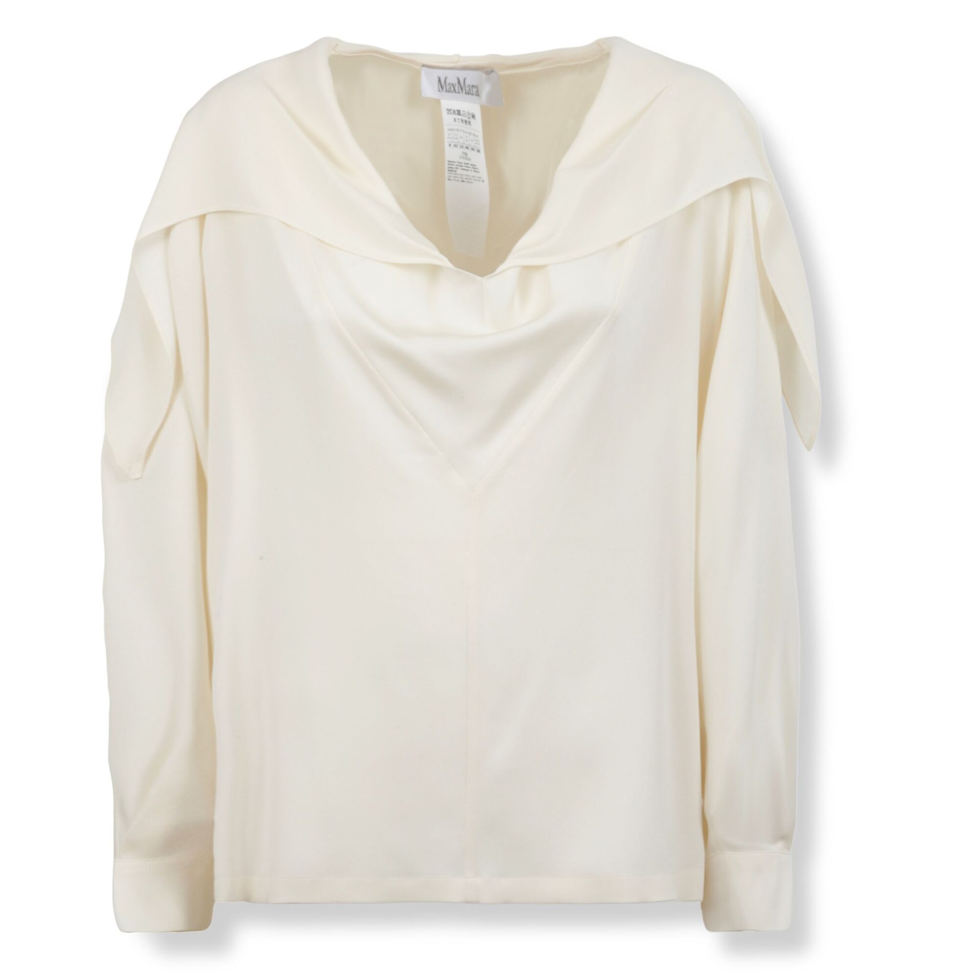 Blusa Max Mara. In charmeuse di seta, linea fluida e maniche lunghe con collo a foulard da annodare.
