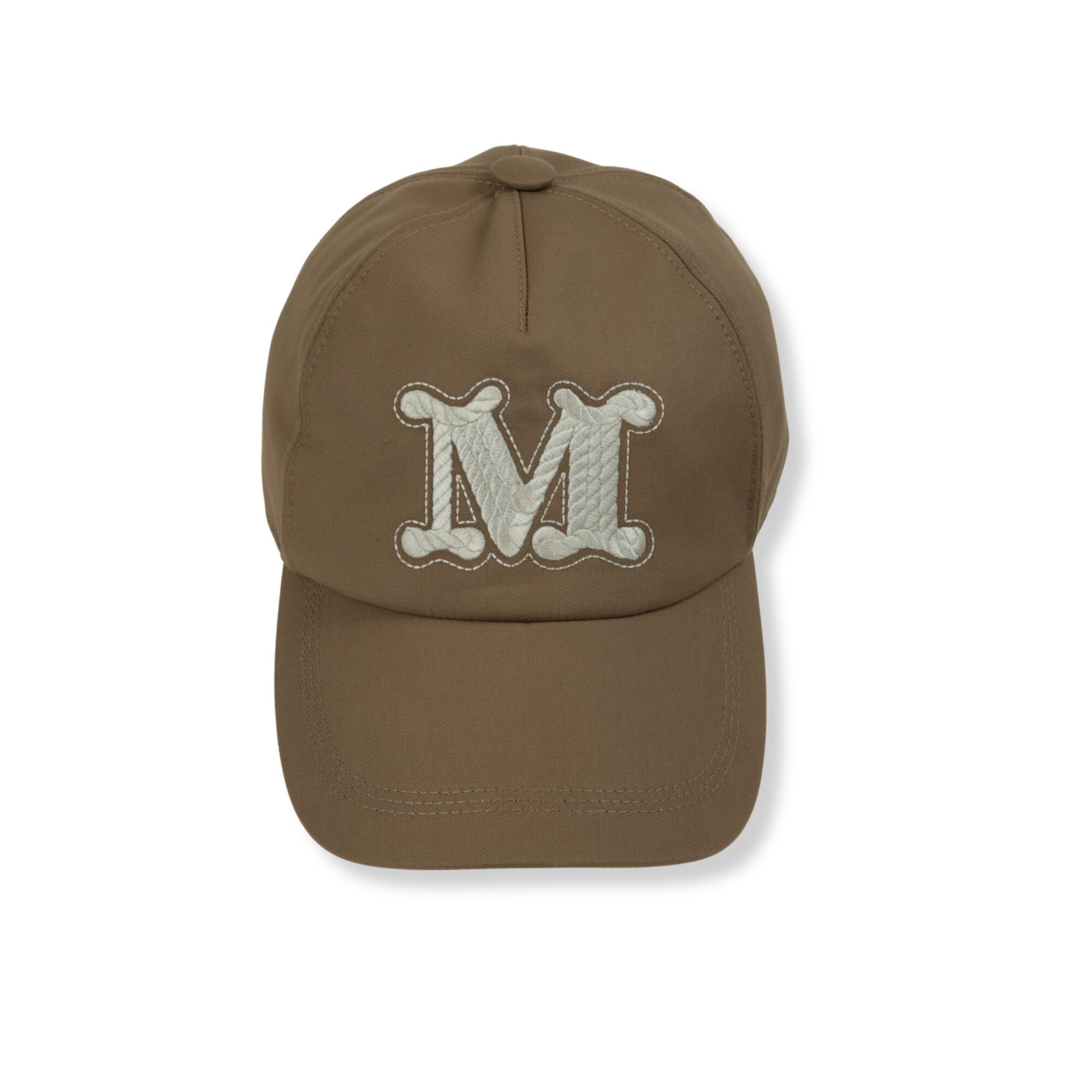 Cappello baseball Max Mara in cotone antigoccia, visiera semirigida e cinturino regolabile sul retro con monogramma del brand ricamato sul davanti.