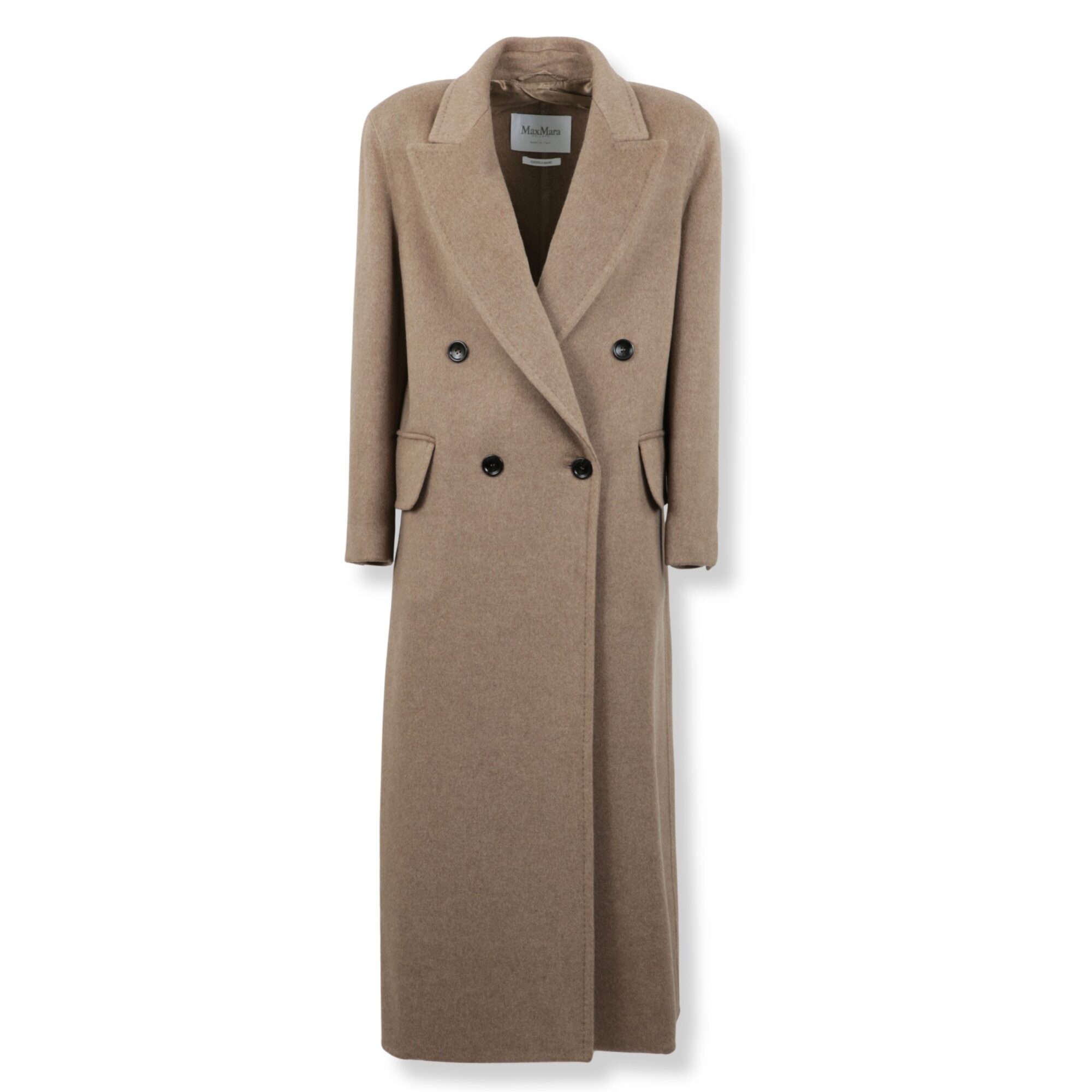 Cappotto Armonia Max Mara. Linea oversize, doppiopetto con bottoni sul fronte. Ampio collo rever, bottoni sui polsi e due tasche con patta sul davanti.