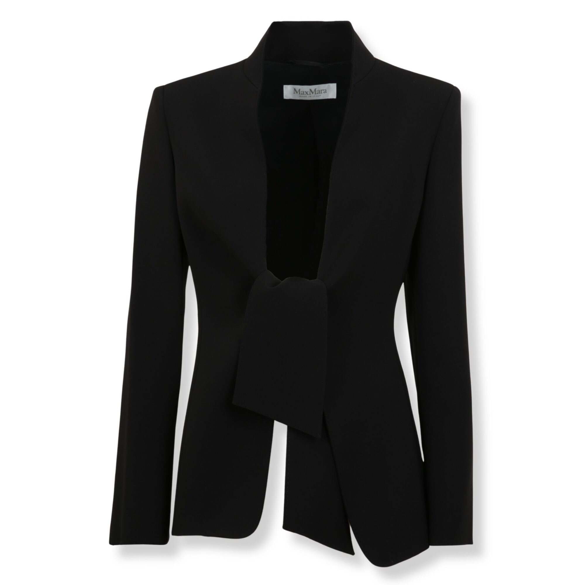 Giacca Ghiotto Max Mara. Linea dritta, chiusura annodata sul davanti. Collo a listino e maniche lunghe con alto spacco sui polsi.