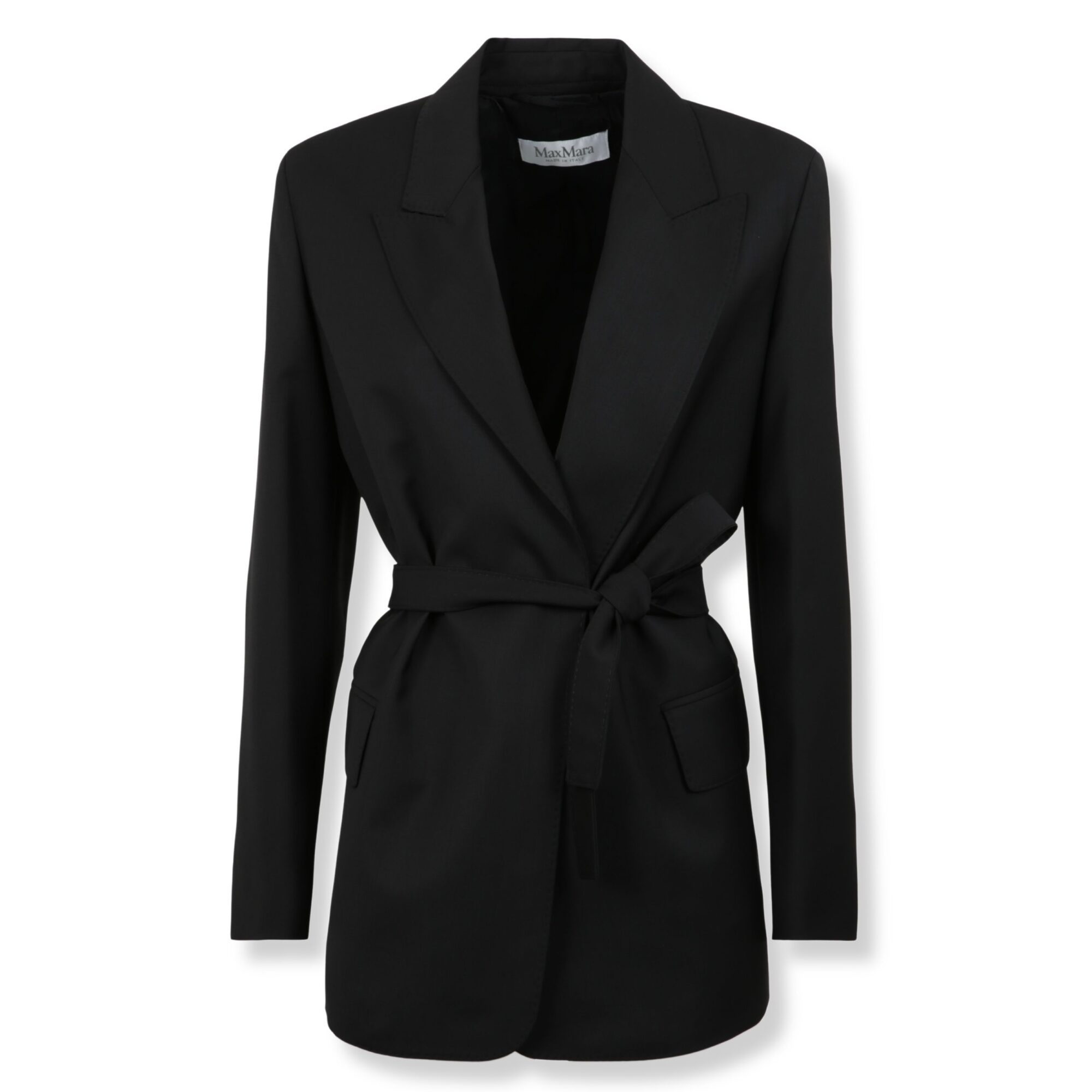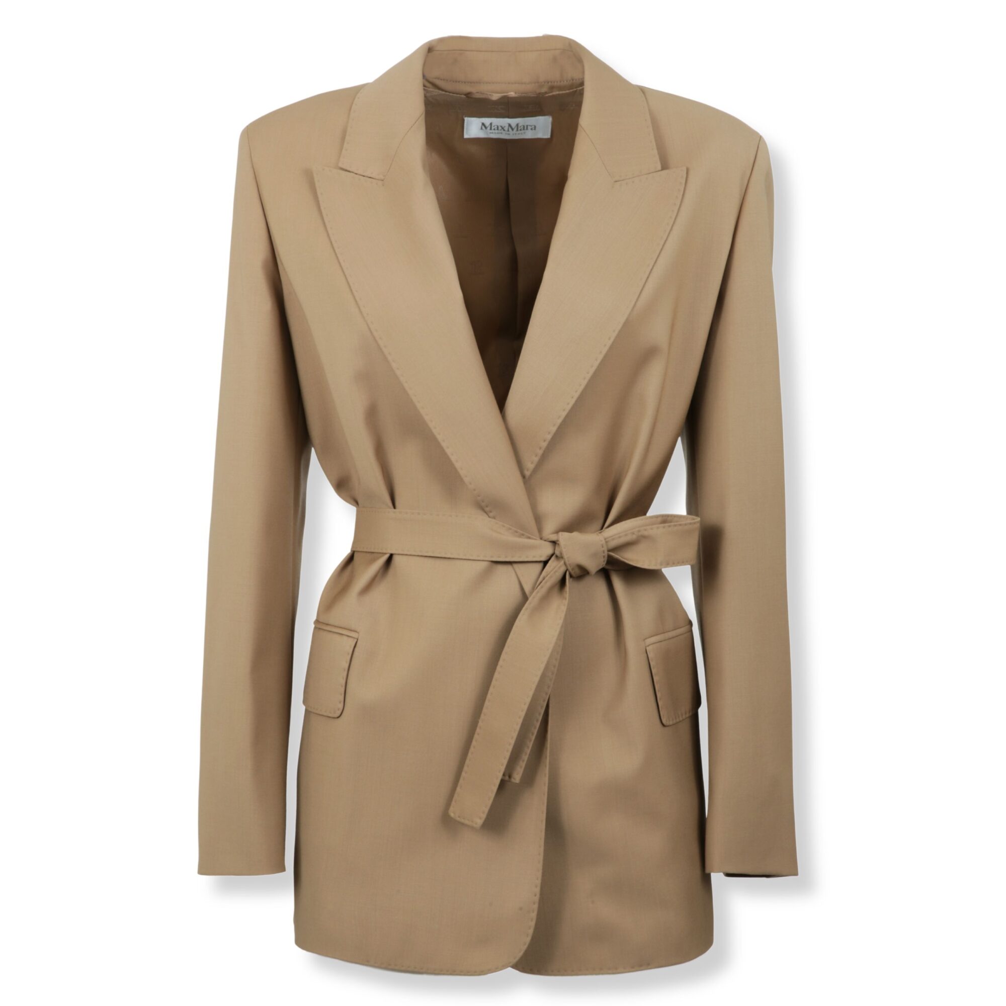 Blazer Talento Max Mara. Linea dritta, collo rever e maniche lunghe con bottoni sui polsi. Chiusura frontale con cintura coordinata e due tasche laterali con patta.