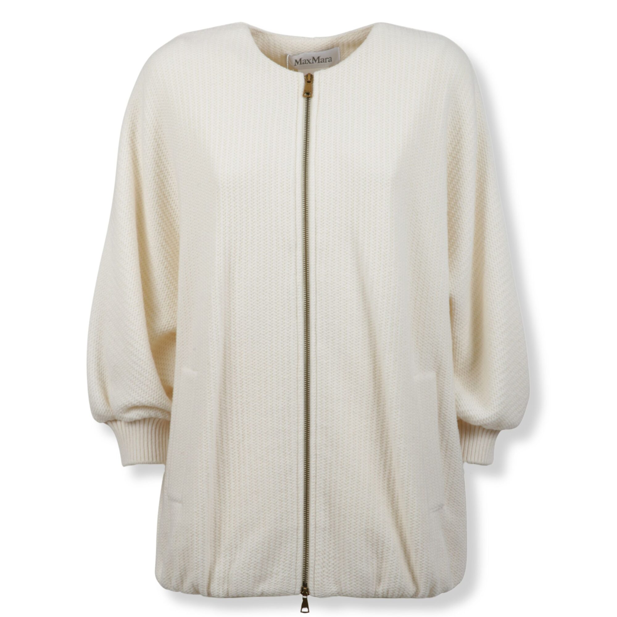 Giaccone Cirino Max Mara. Girocollo, vestibilità ampia, maniche ampie a kimono. Polsini in maglia a costine stretch e bordo arricciato sul fondo.