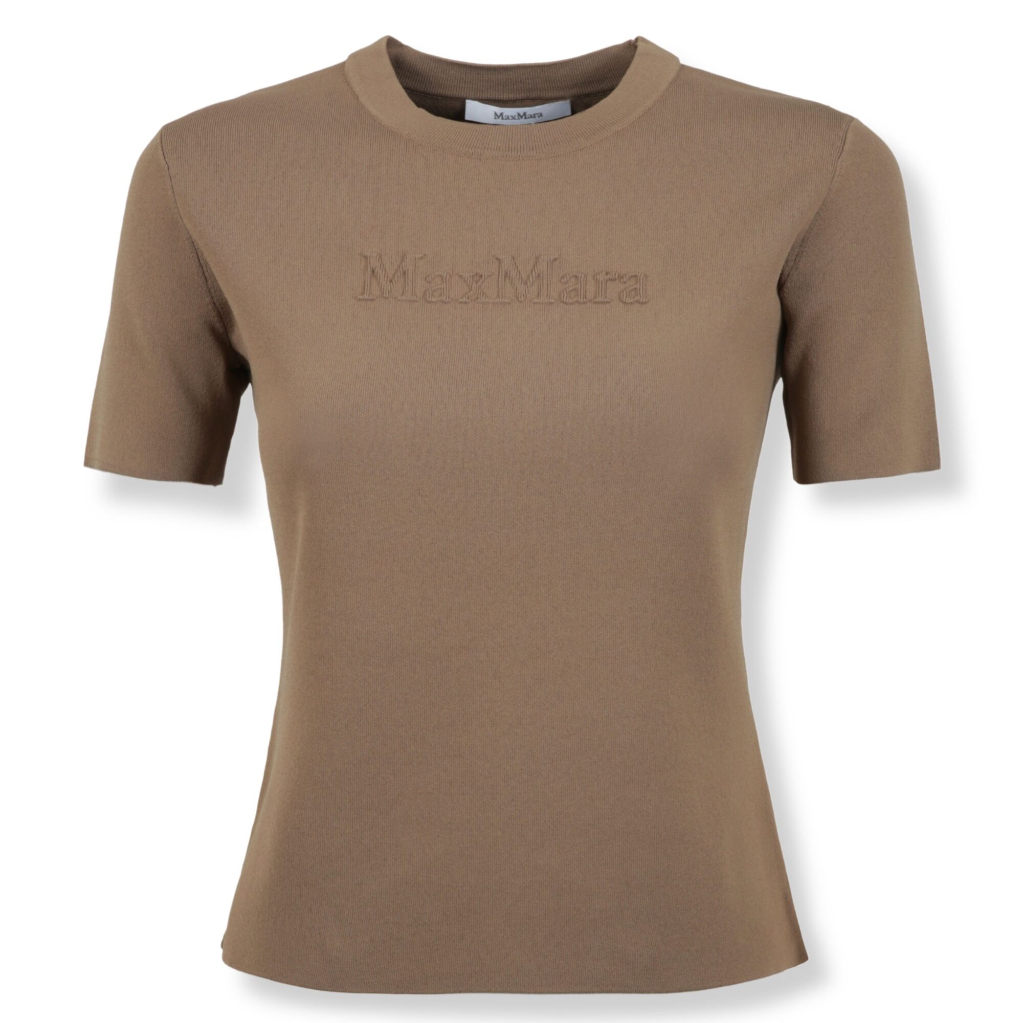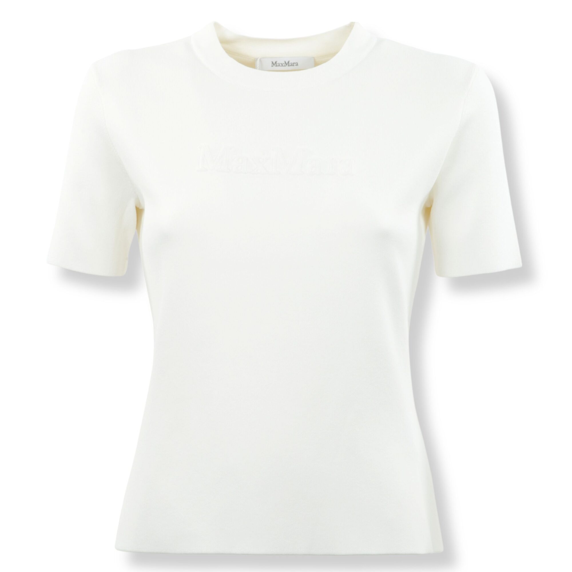 Maglia Adelio Max Mara. Linea semi-aderente, girocollo a costine, maniche corte a giro.