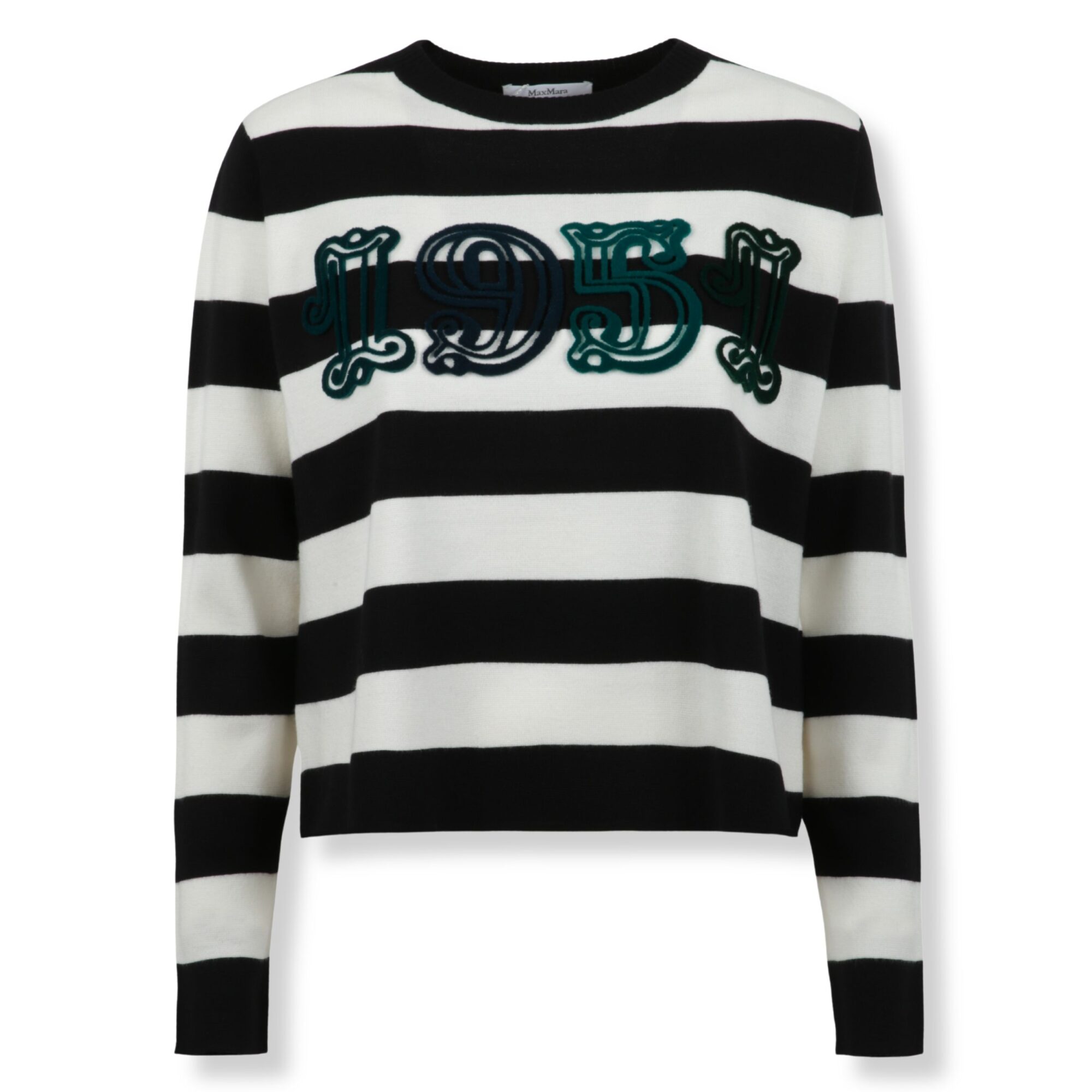 Maglia Viterbo Max Mara. Design a righe orizzontali, con scollo a giro e vestibilità boxy. Ricamo con logo sul fronte.