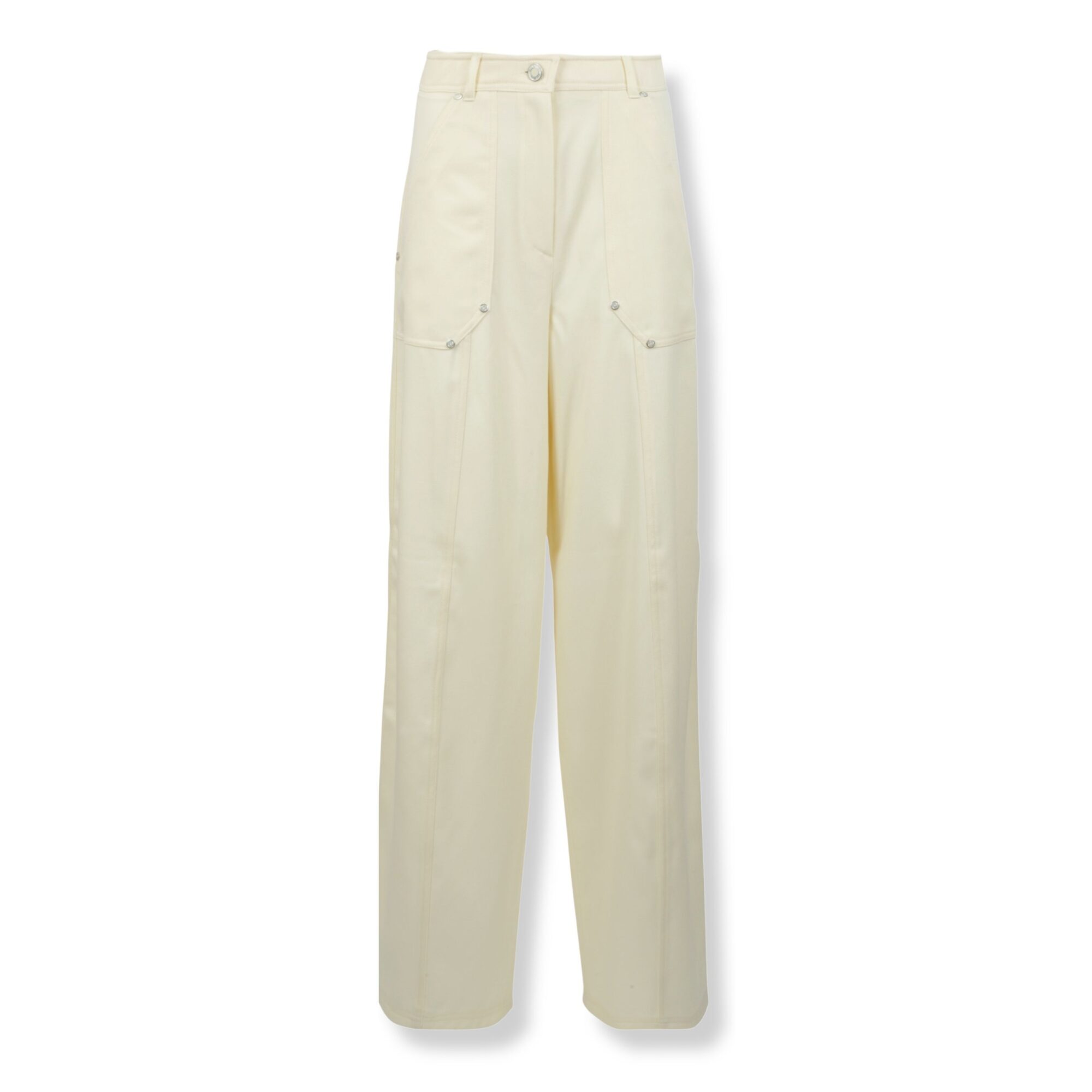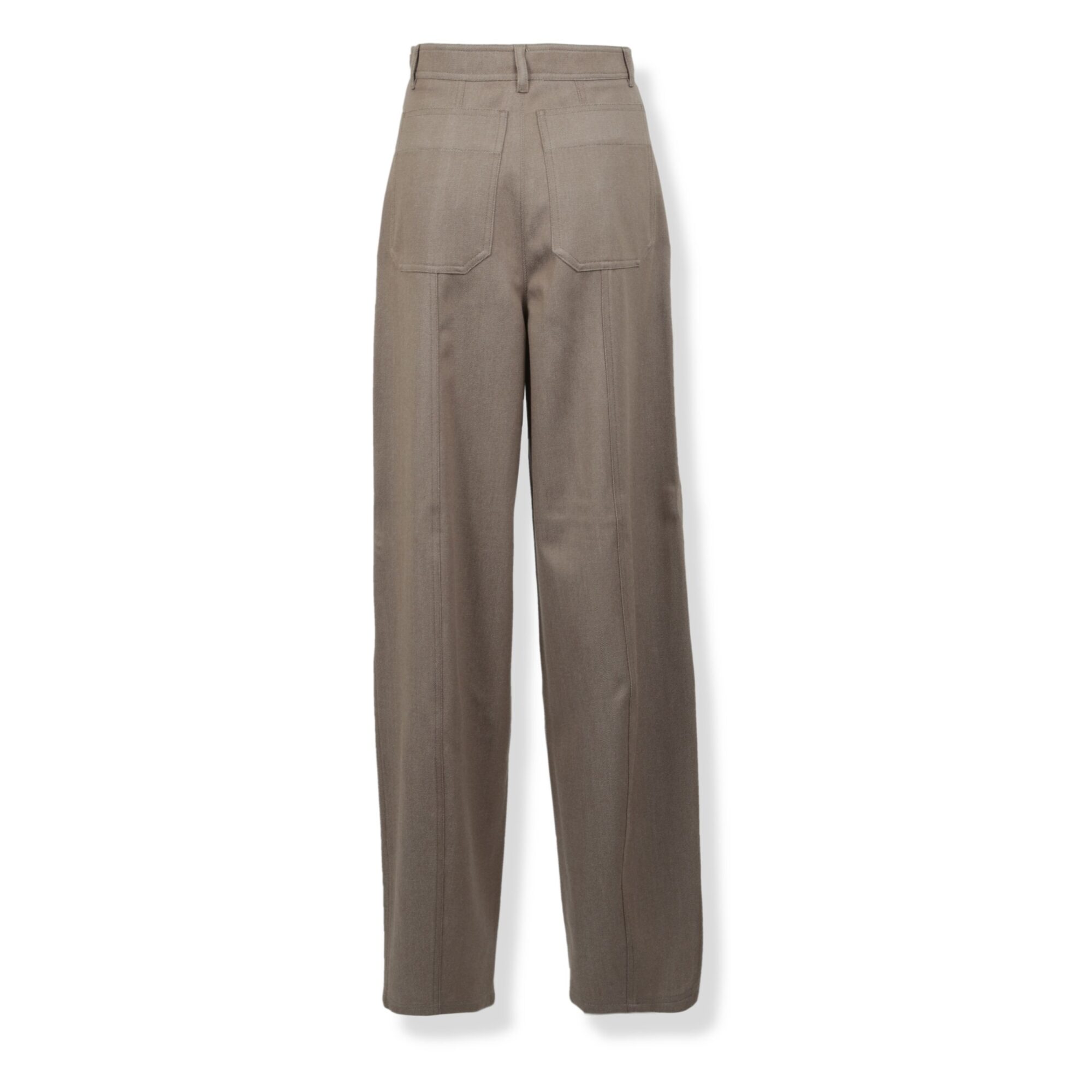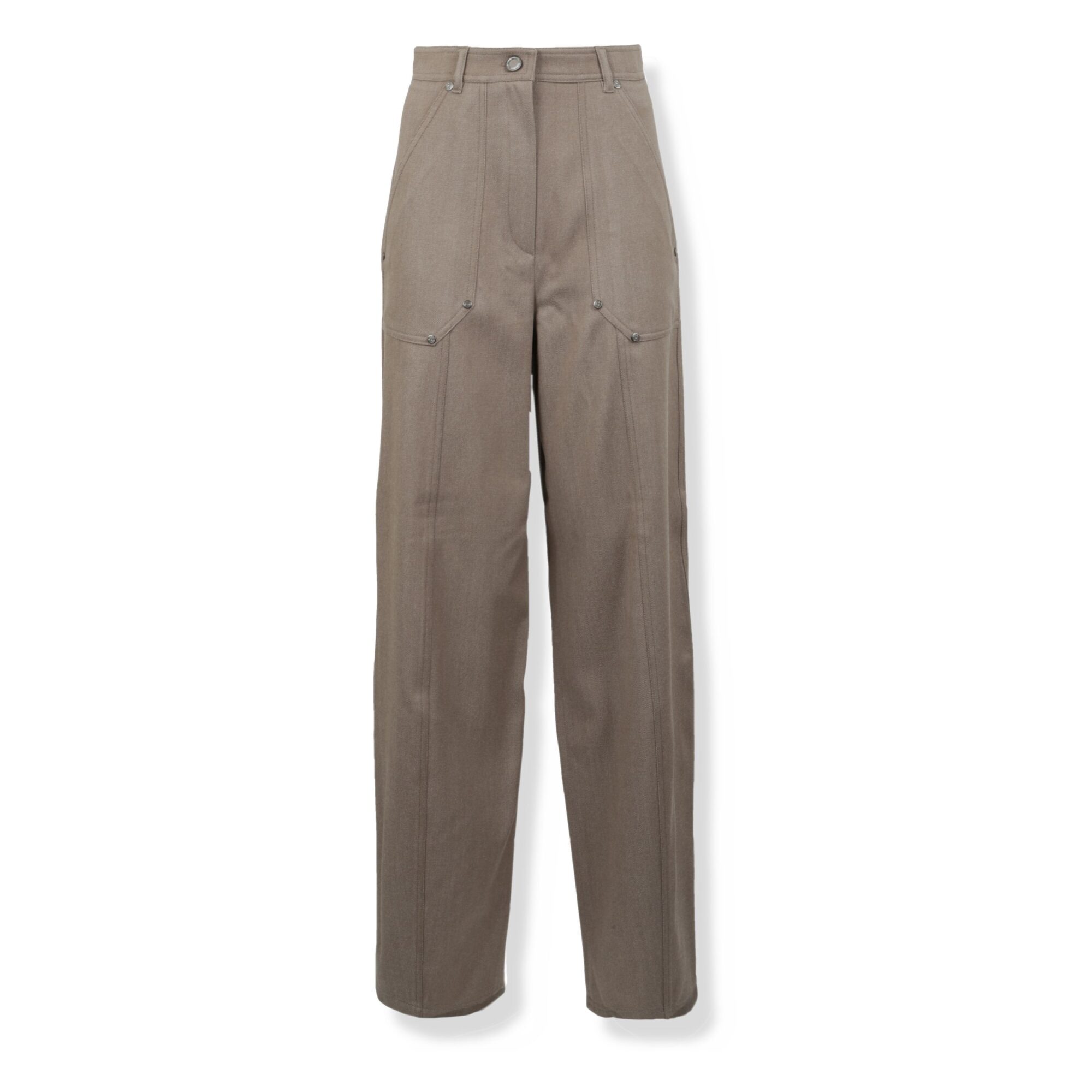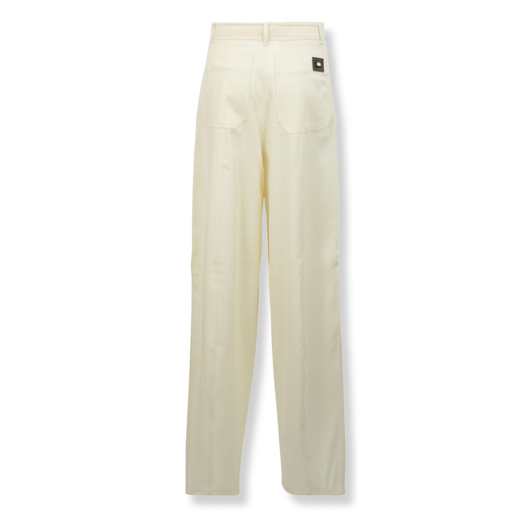 Pantalone Abetaia Max Mara. Design in lana effetto denim. Vita alta e silhouette ampia, con gamba larga. Tasche applicate sul davanti con rivetti in metallo.