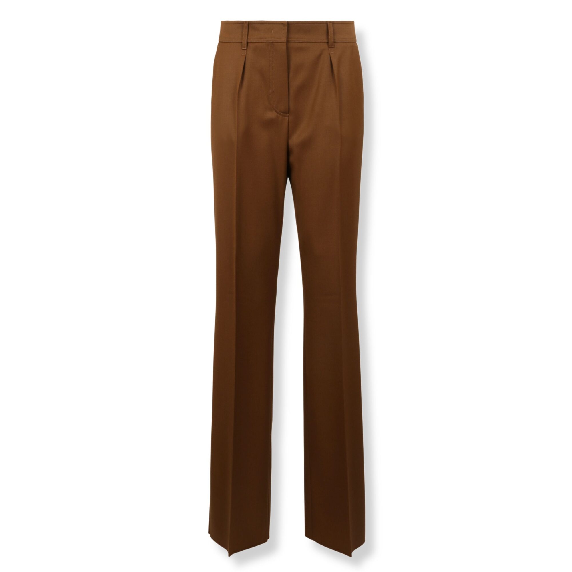 Pantaloni Cannes Max Mara. Silhouette straight leg con pince sul davanti. Chiusura con listino alto in vita. Tasche alla francese sui fianchi e due tasche a filetto sul retro.