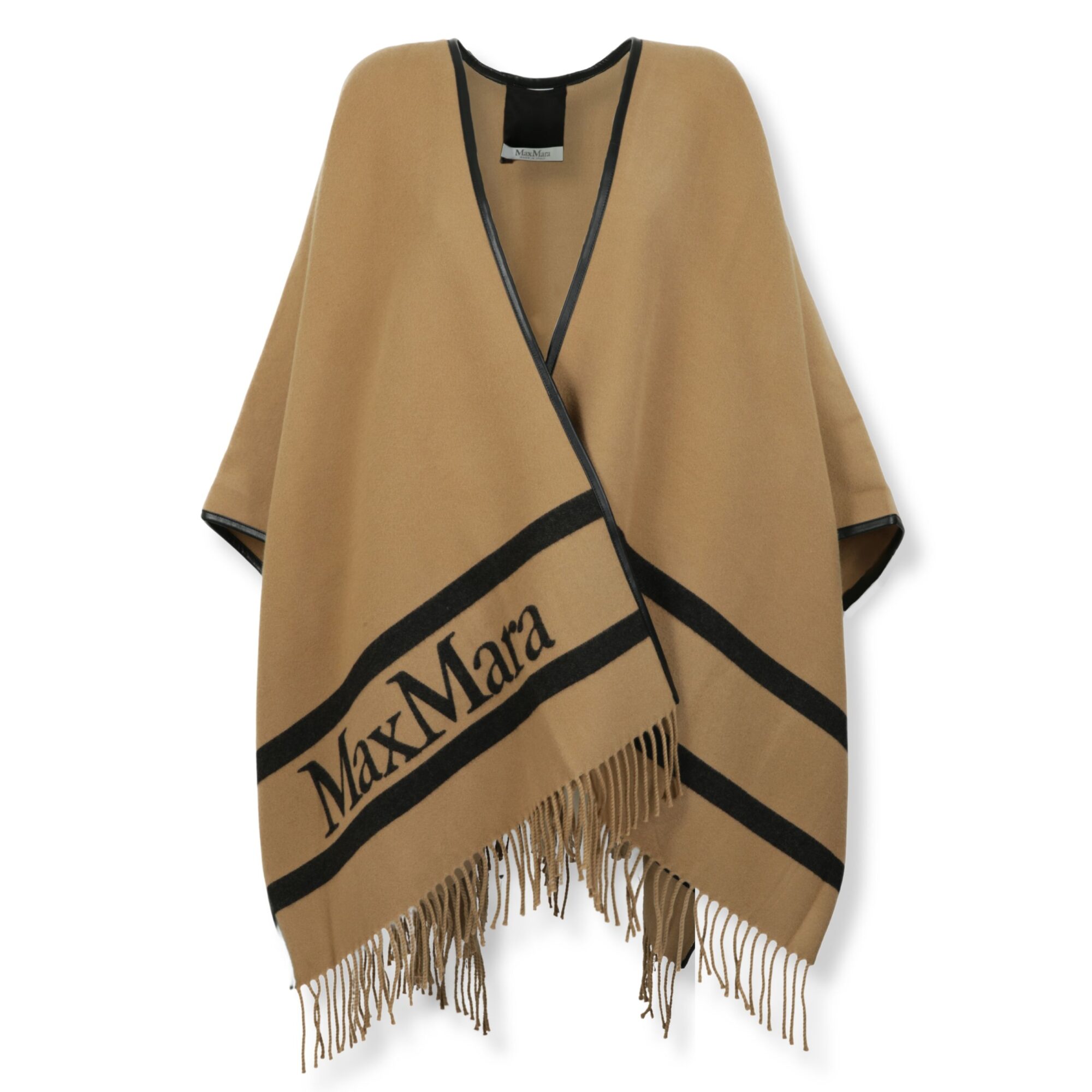 Poncho Mxaaris Max Mara. Design con tessitura jacquard e bordi con frange, logo del brand sul davanti.