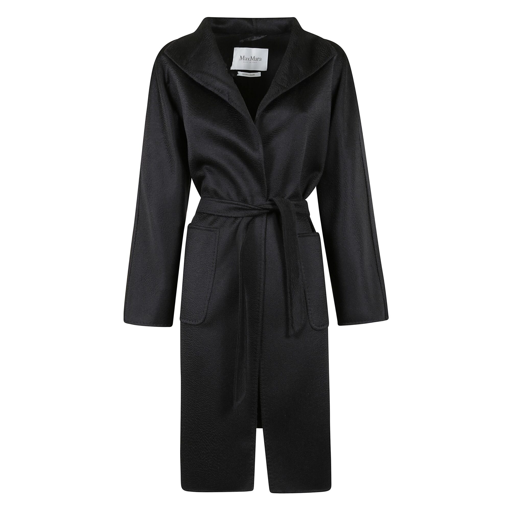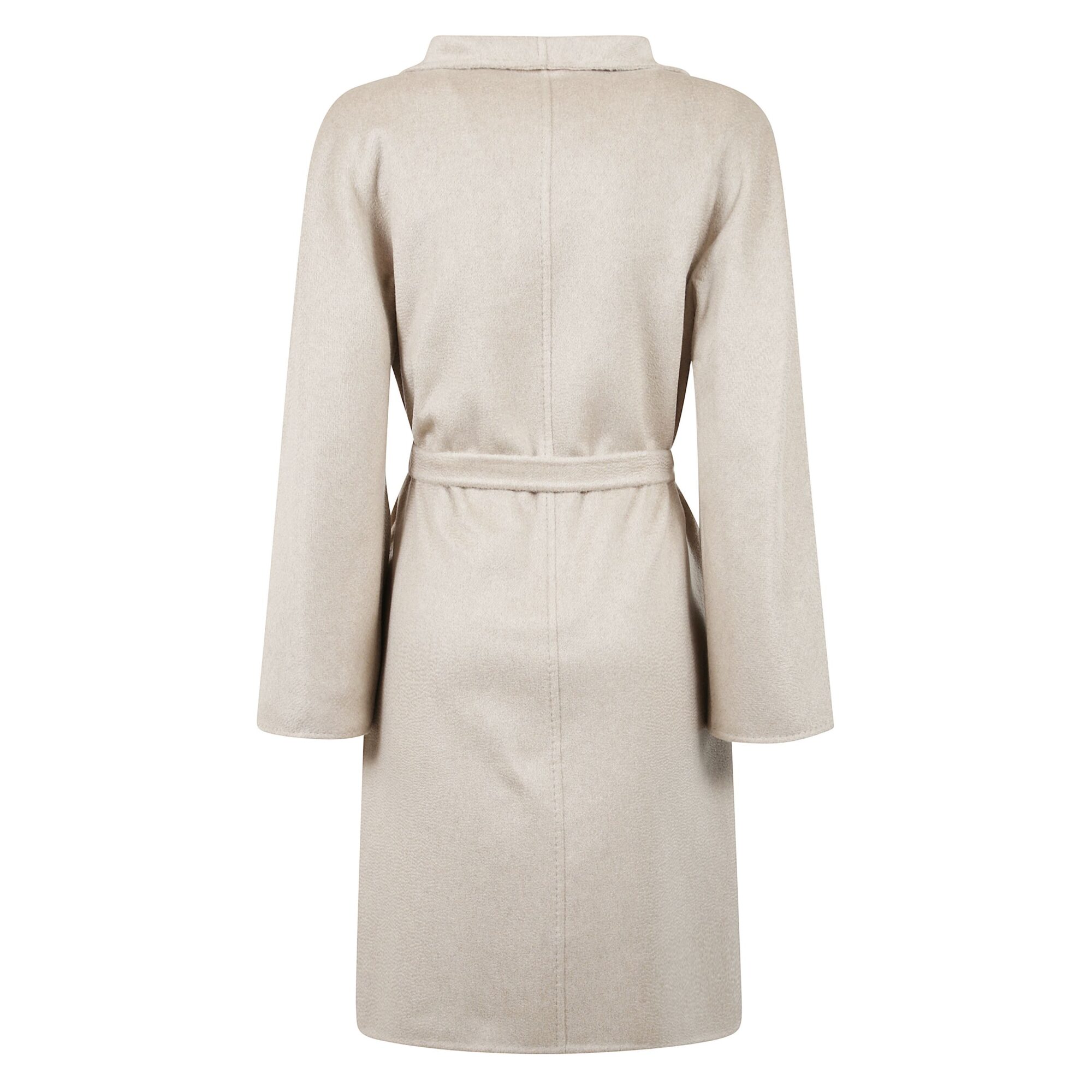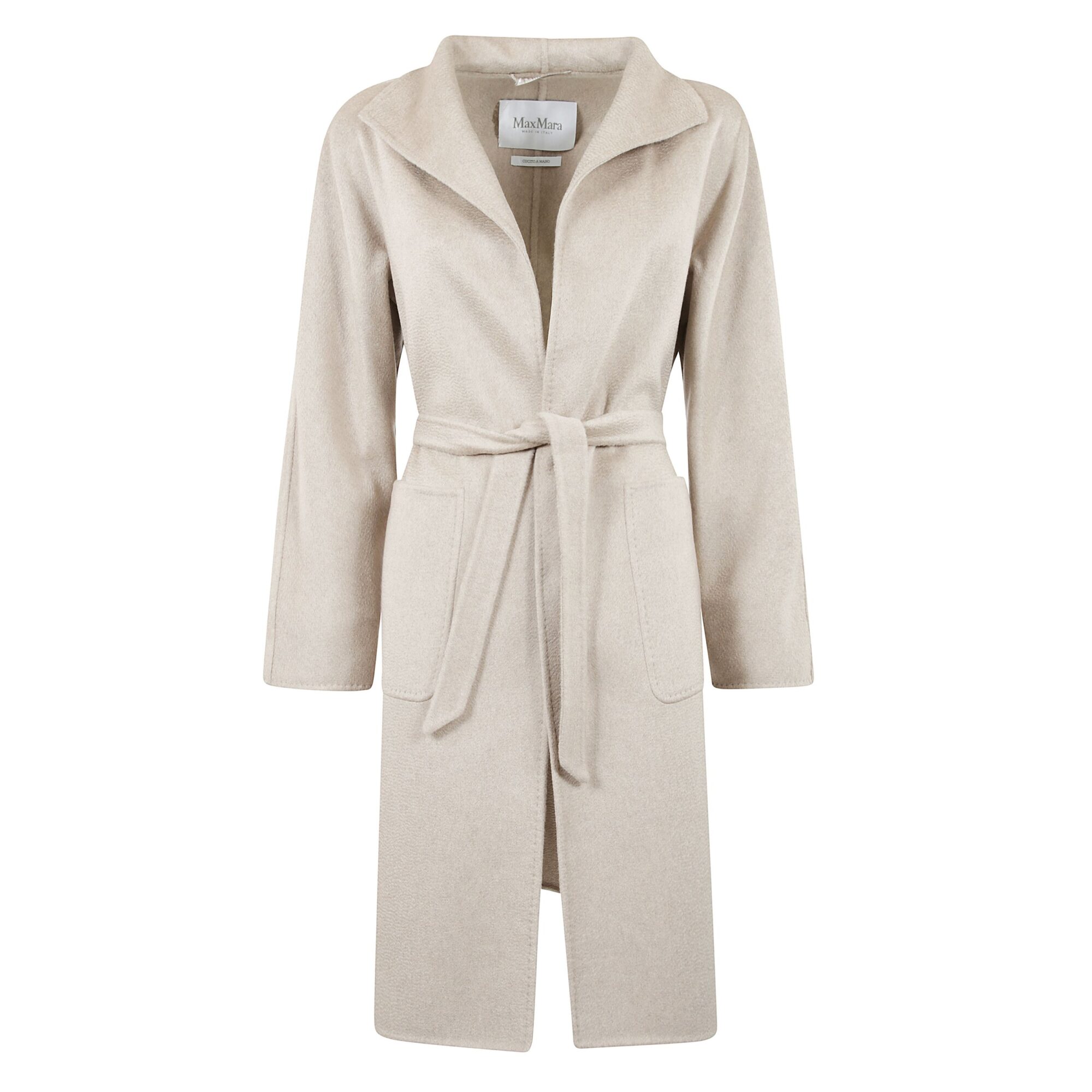 Cappotto cardigan midi in cachemire Max Mara. Collo alto, maniche lunghe a kimono, due tasche applicate sul davanti. Chiusura con cintura abbinata.
