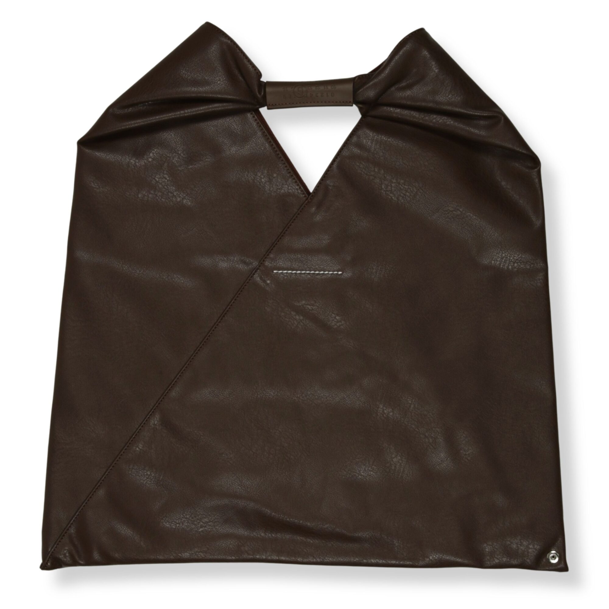 Japanese Bag MM6. Forma iconica, ispirata all’origami giapponese, con manico superiore strutturato. Sul retro, impuntura bianca a contrasto distintiva del brand.