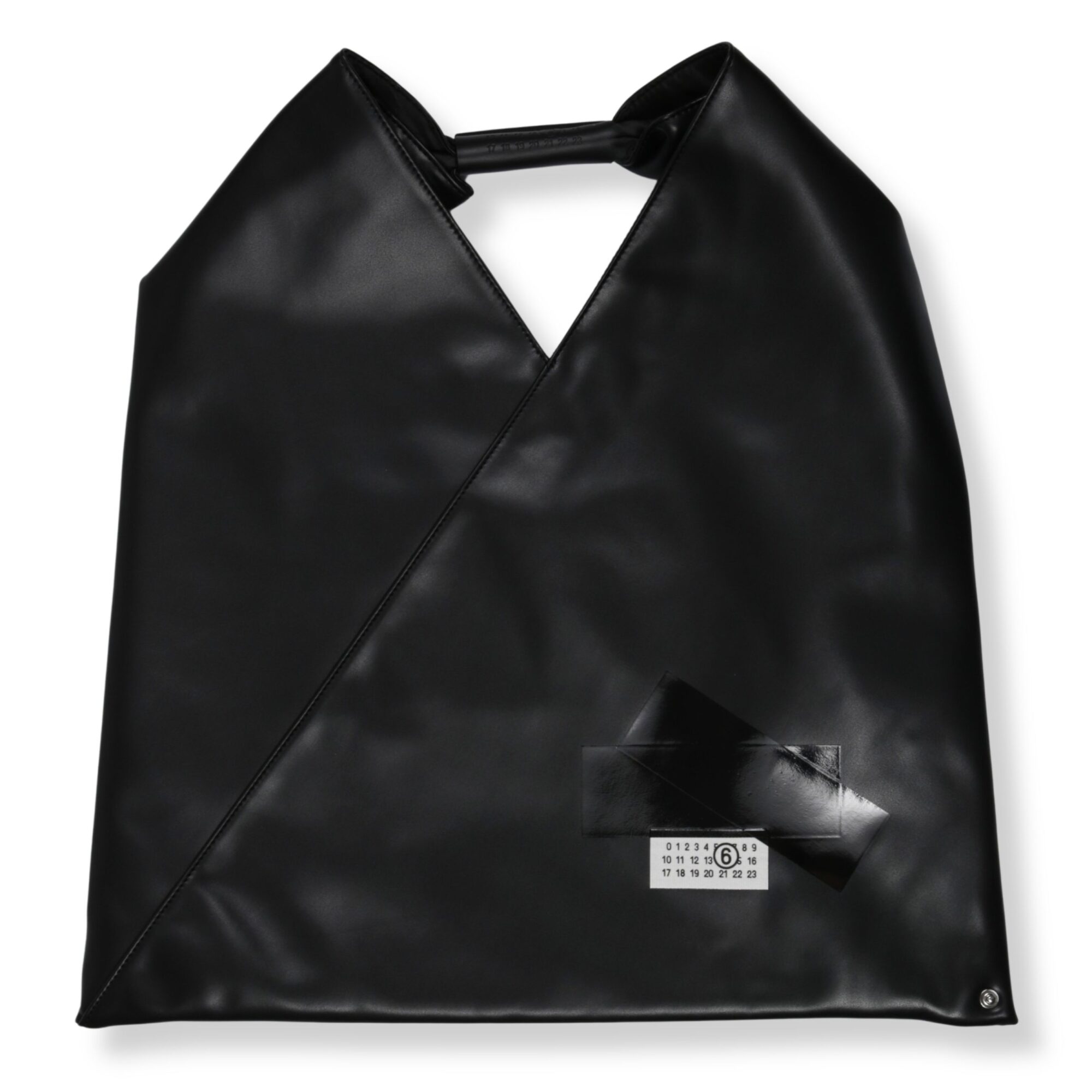 Japanese Bag MM6. Forma iconica, ispirata all’origami giapponese, con manico superiore strutturato. Logo numerico del brand sul fronte con dettaglio nastro adesivo.