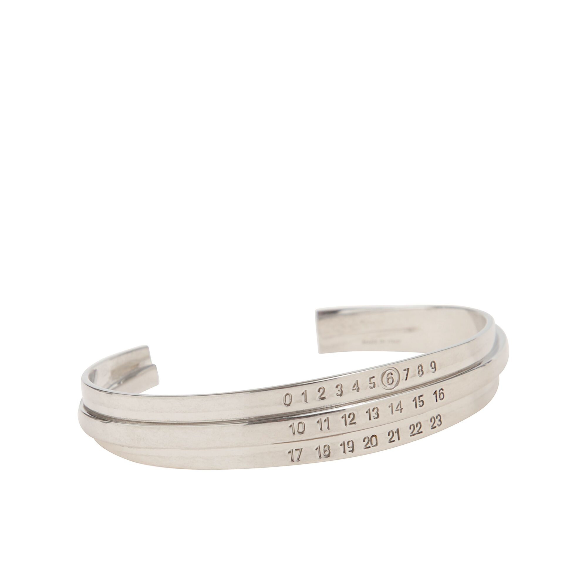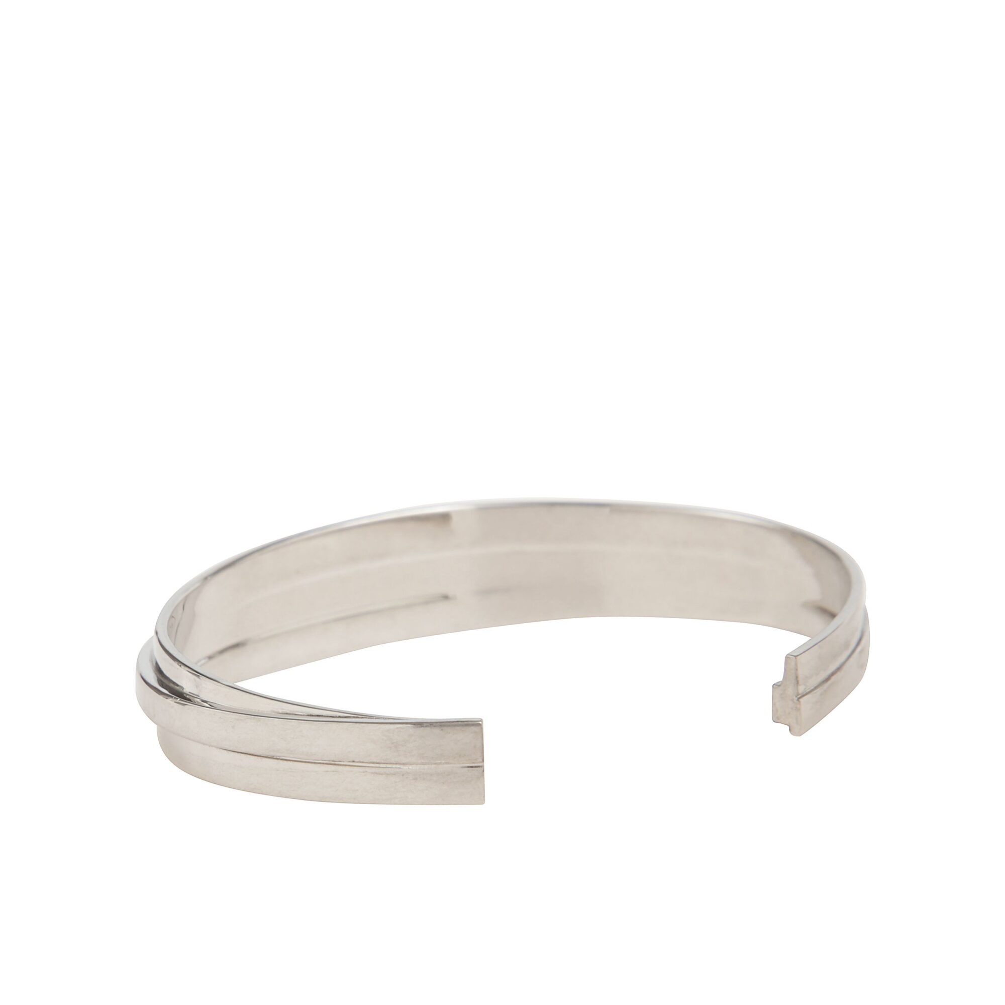 Bracciale rigido in metallo. Tre fasce sovrapposte con logo del brand inciso.
