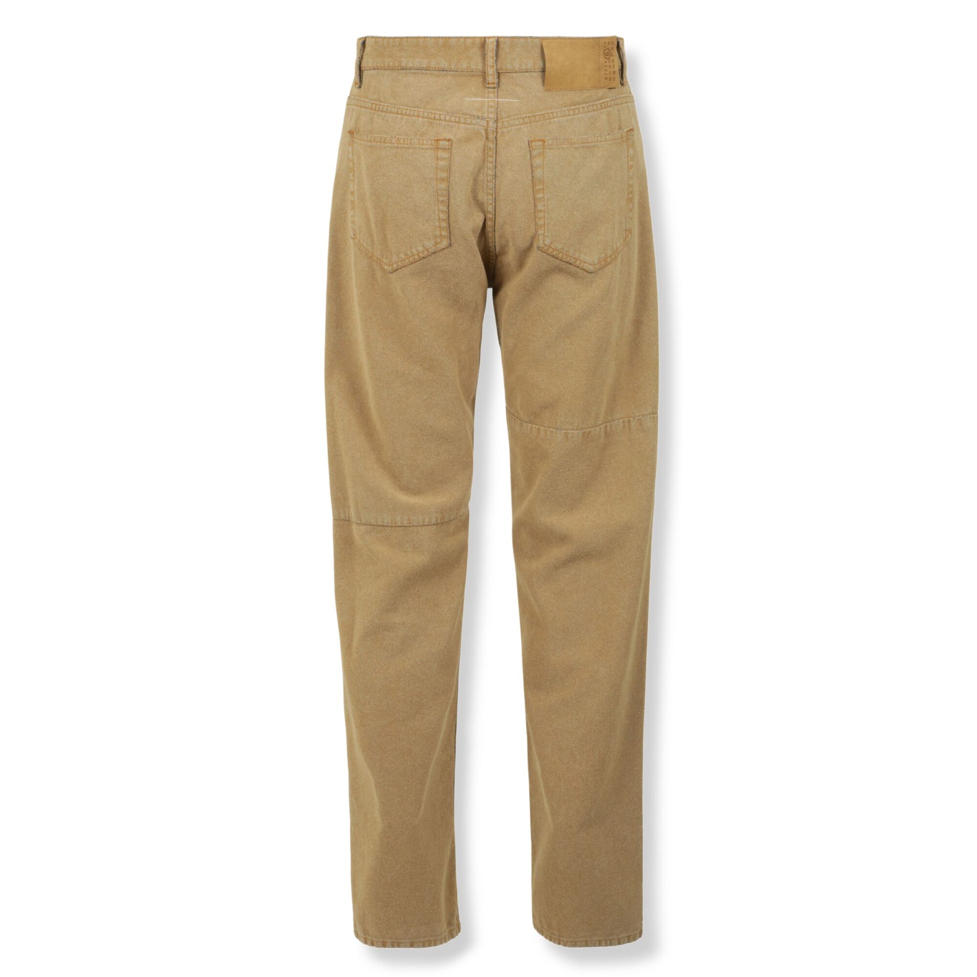 Jeans MM6. Gamba dritta, cinque tasche. Trattamento effetto sand-wash su tutto il corpo ed inserti con cuciture a vista sulle gambe.