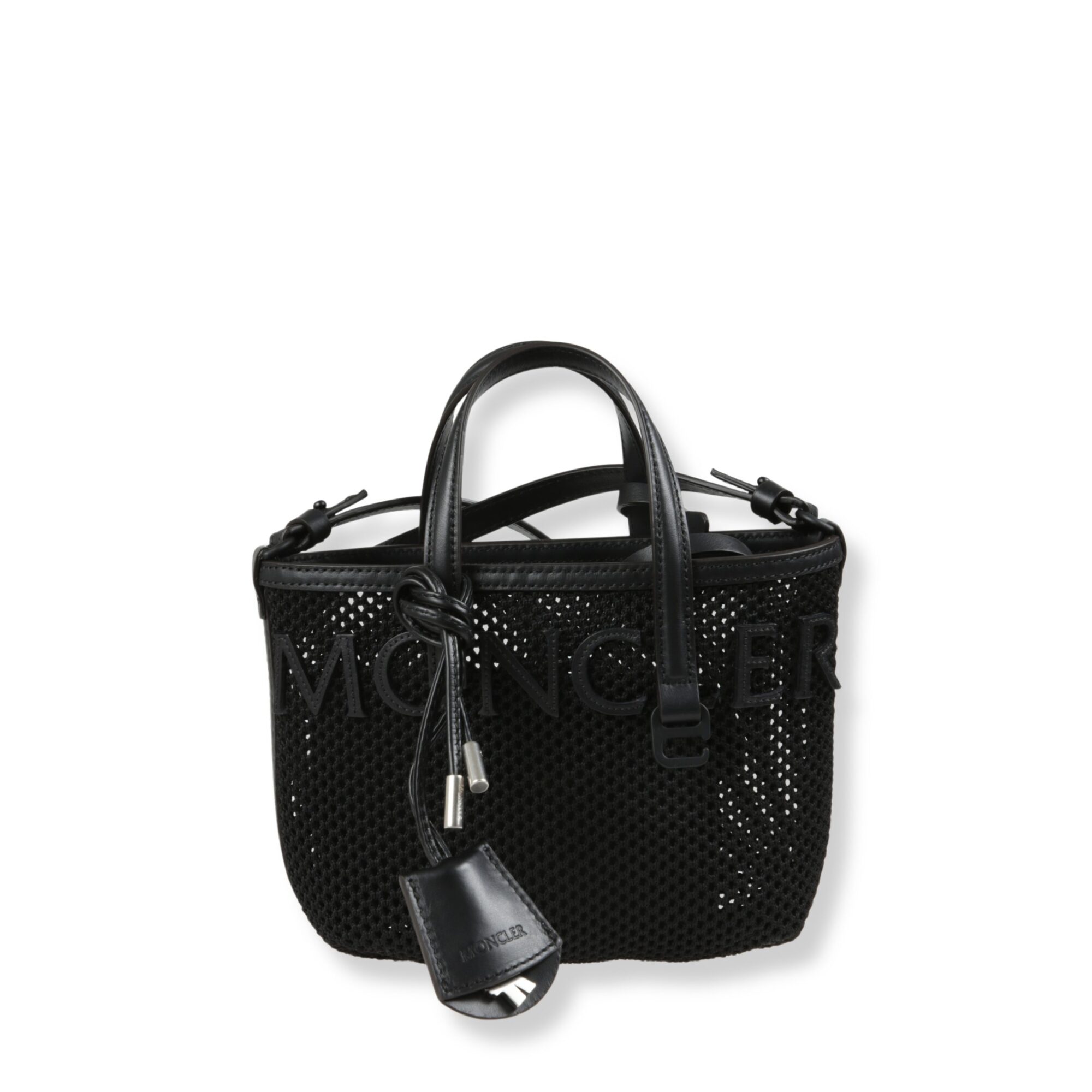 Borsa Tote Very Moncler. Design in rete e pelle, charm con portachiavi, doppio manico e tracolla rimovibile, pouch interna.