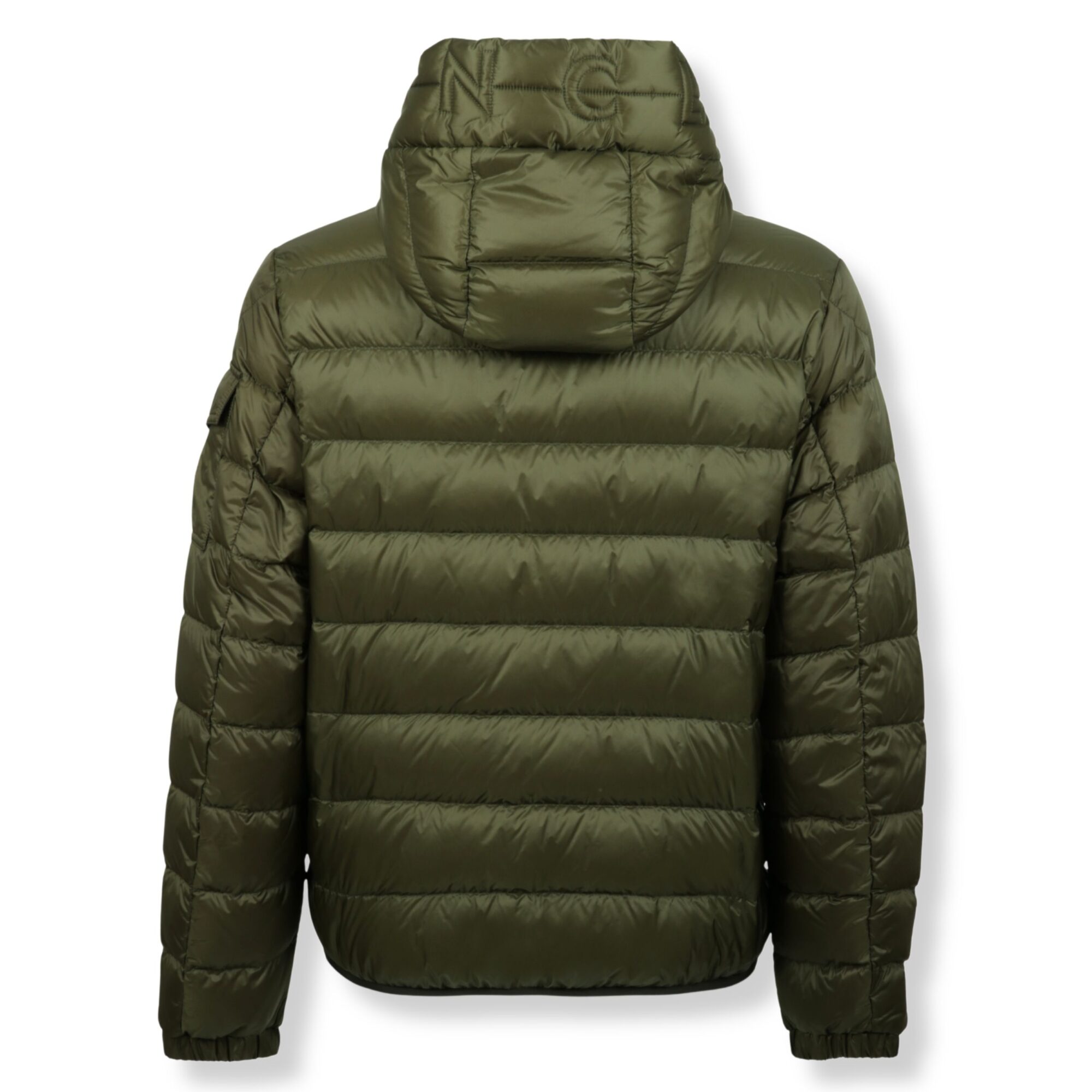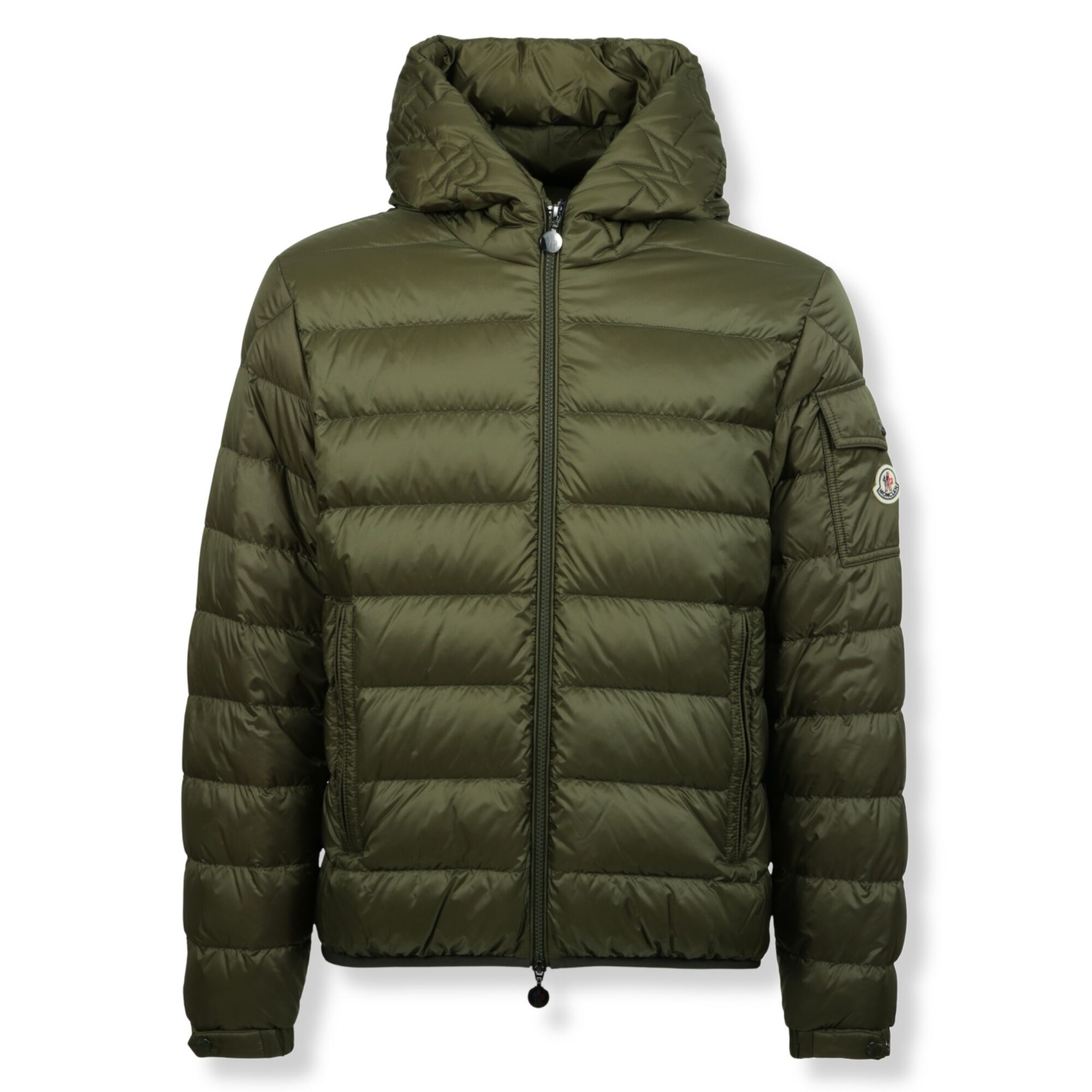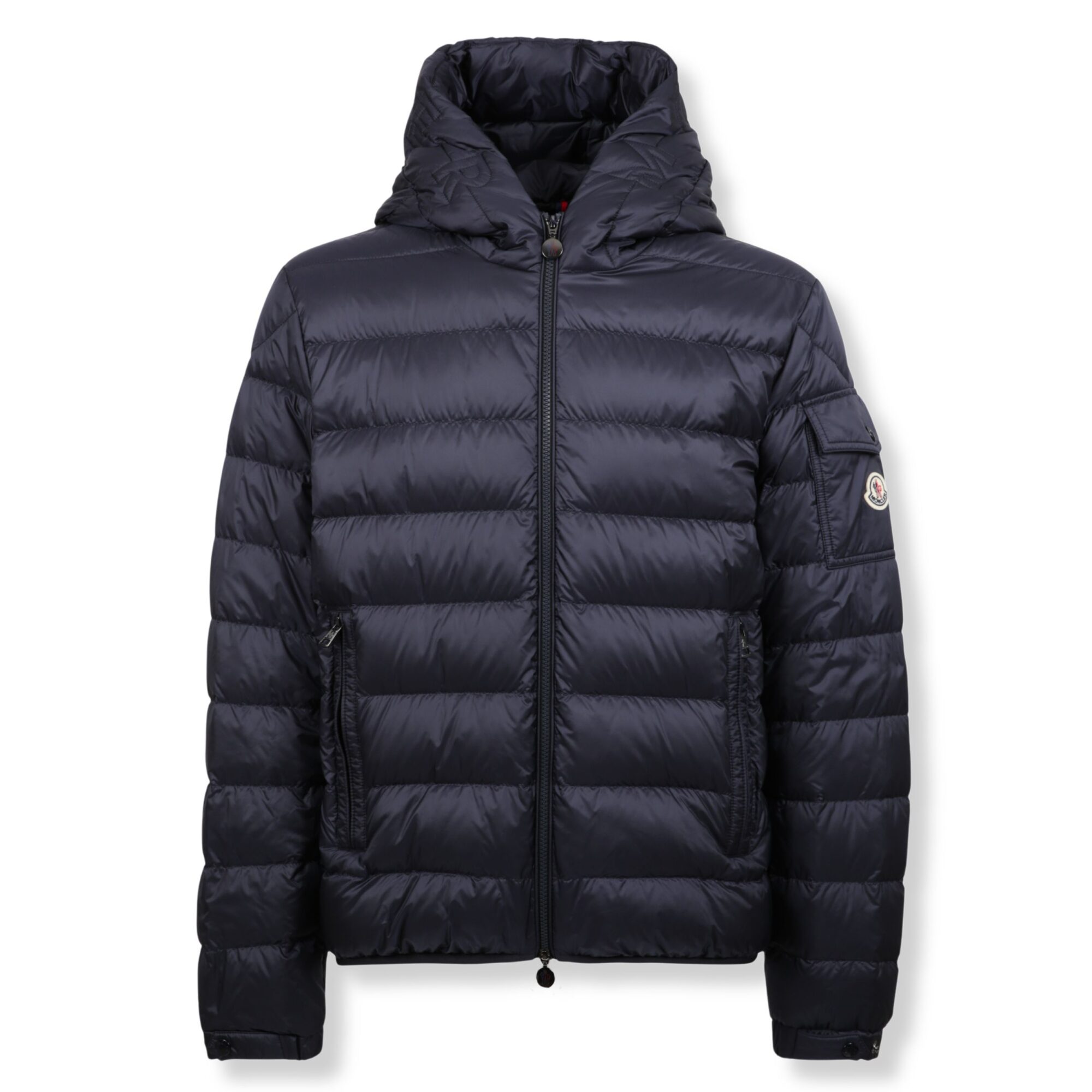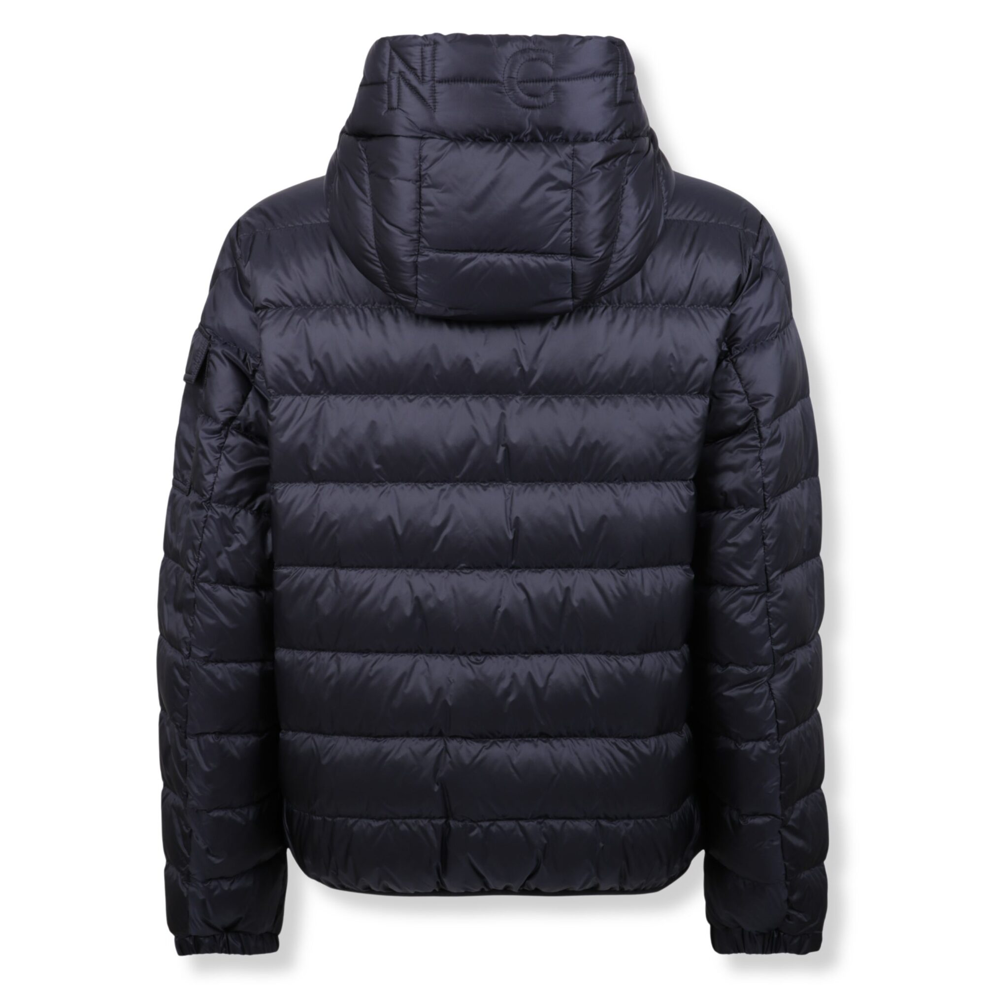 Piumino corto Najan Moncler. Modello con cappuccio, in longue saison idrorepellente. Polsini regolabili con bottone a pressione e tasca sulla manica con logo del brand.
