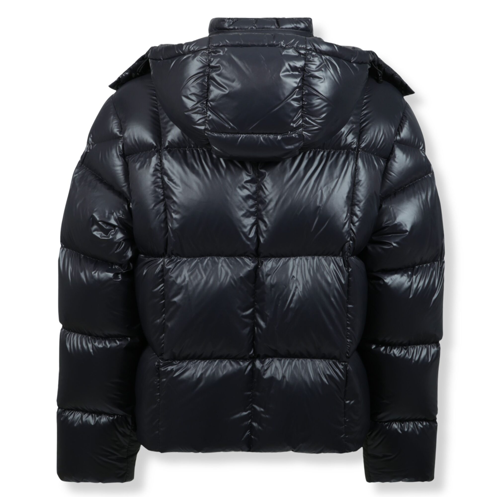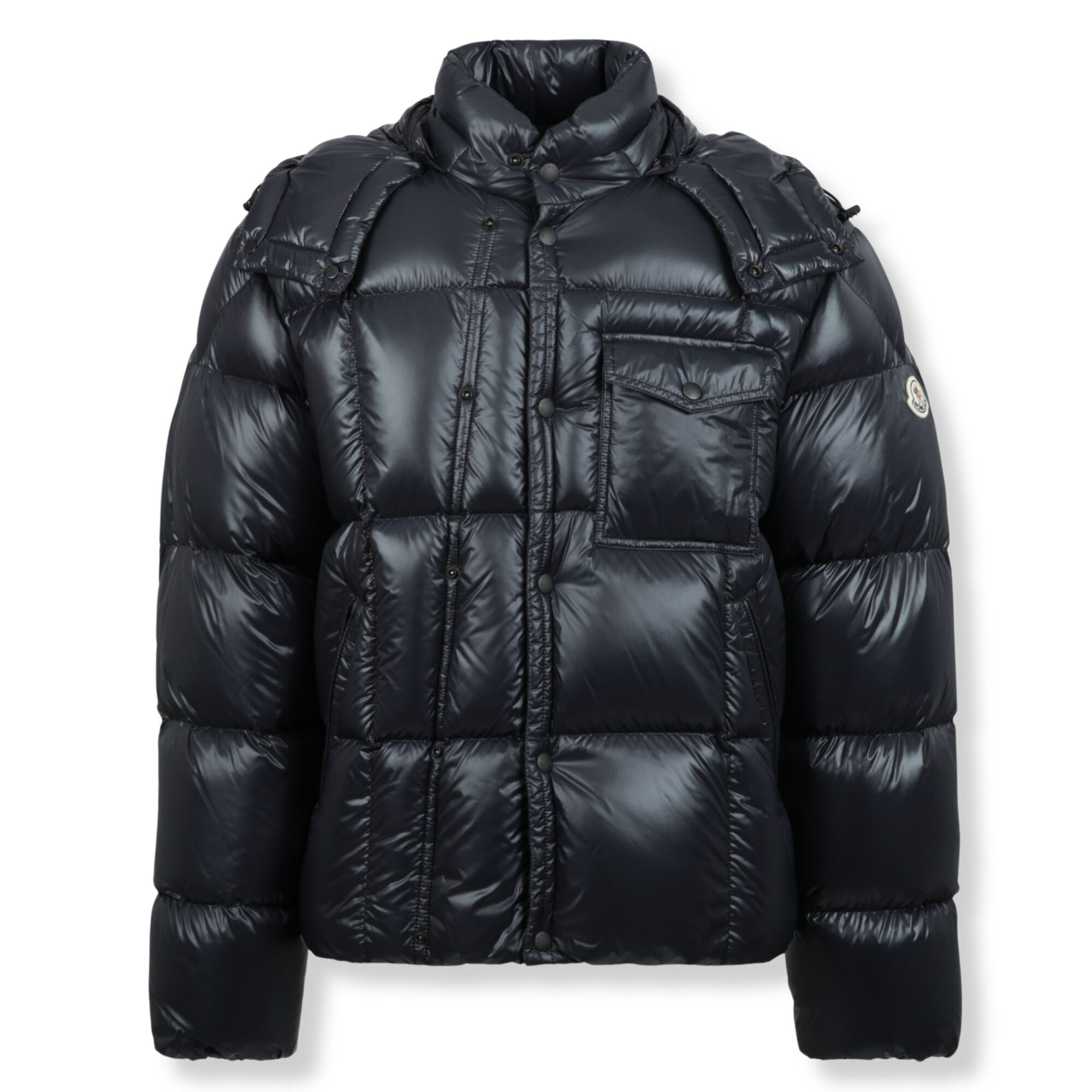 Piumino corto Serfanto Moncler. Design in nylon super laqué, trapuntato, con cappuccio rimovibile. Tasca sul petto con bottone a pressione e logo del brand sul braccio.