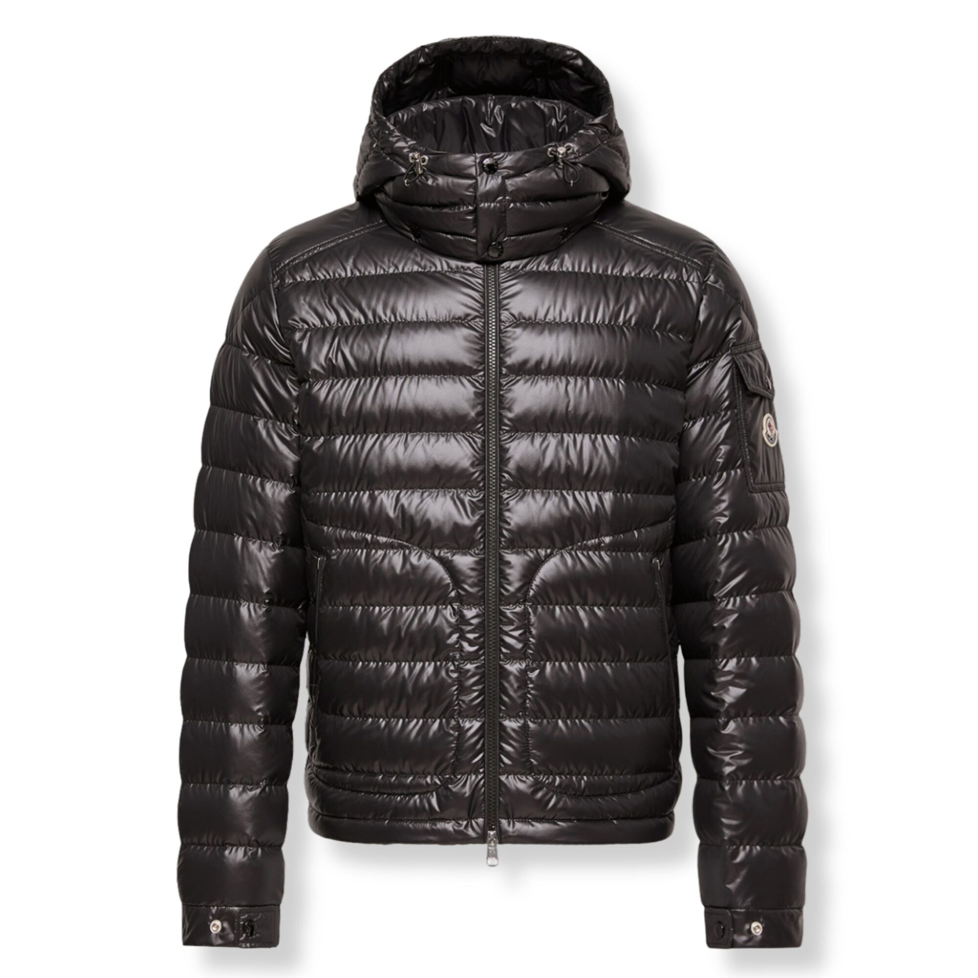 Piumino corto Lauros Moncler. Imbottitura in piumino 90/10, cappuccio rimovibile e chiusura con zip centrale. Tasca sulla manica con bottone e due tasche con zip sul davanti.