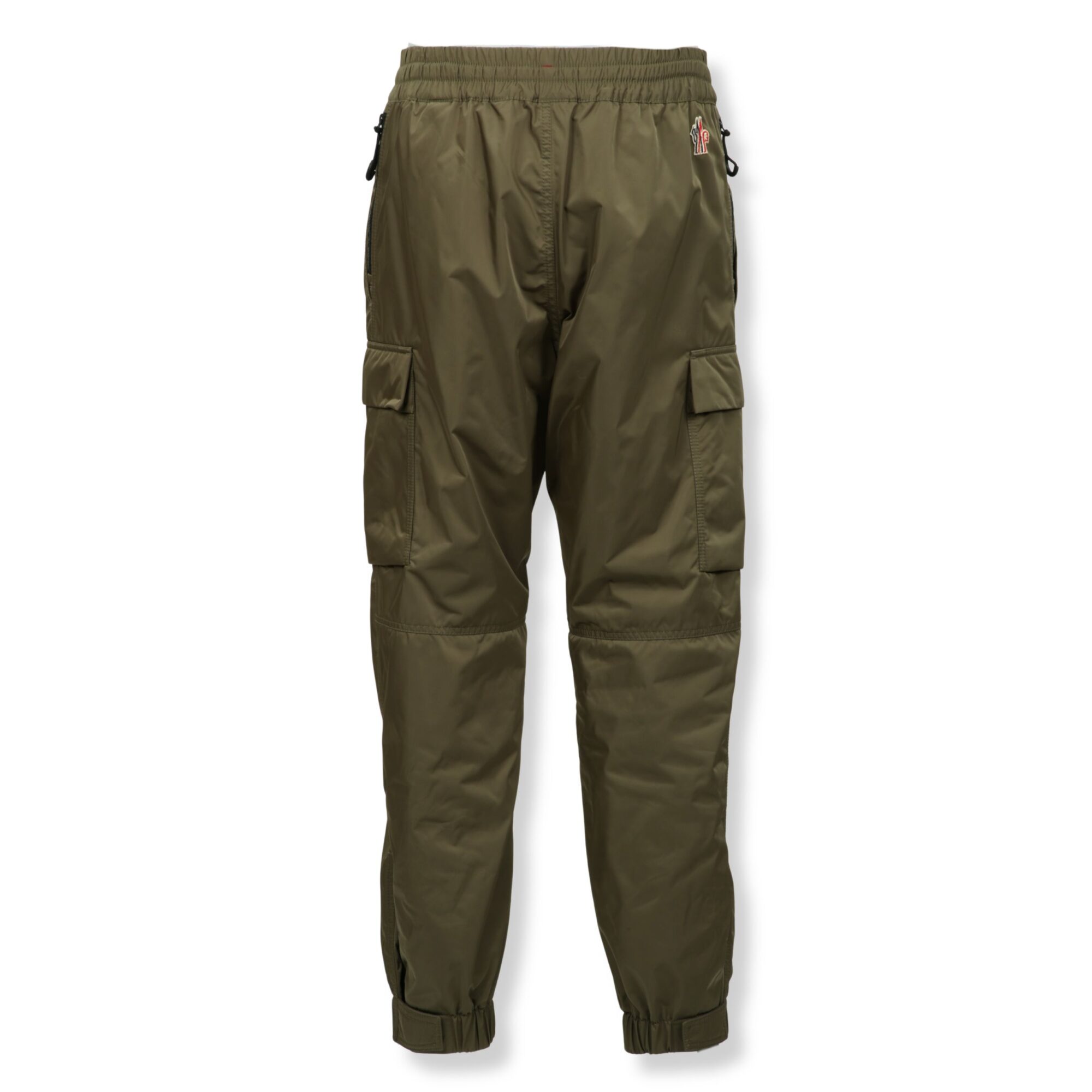 Pantaloni Cargo Moncler Grenoble. Desing in micro gabardine, cintura elastica con coulisse e polsini alle caviglie. Tasche cargo con logo del brand sulla gamba sinistra.