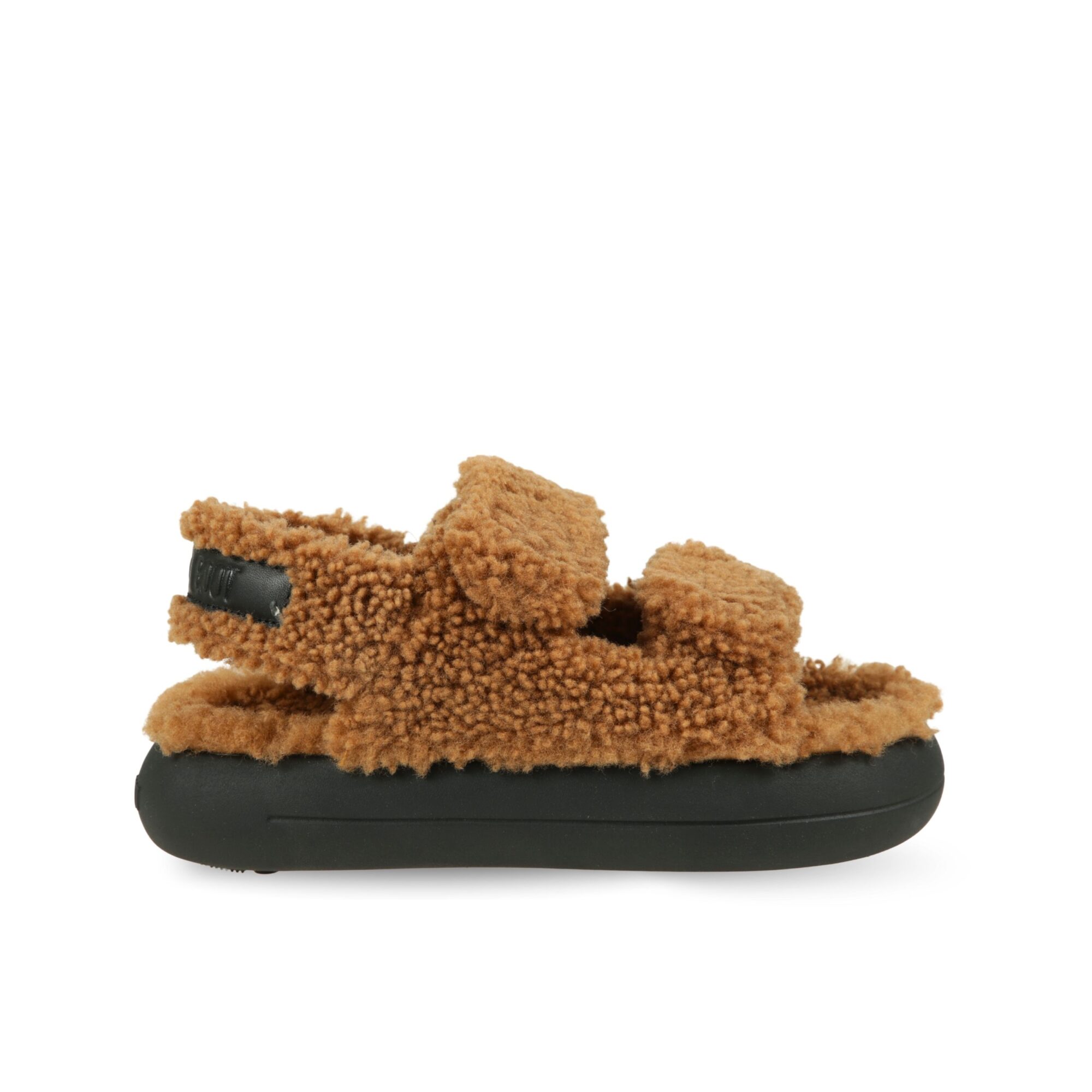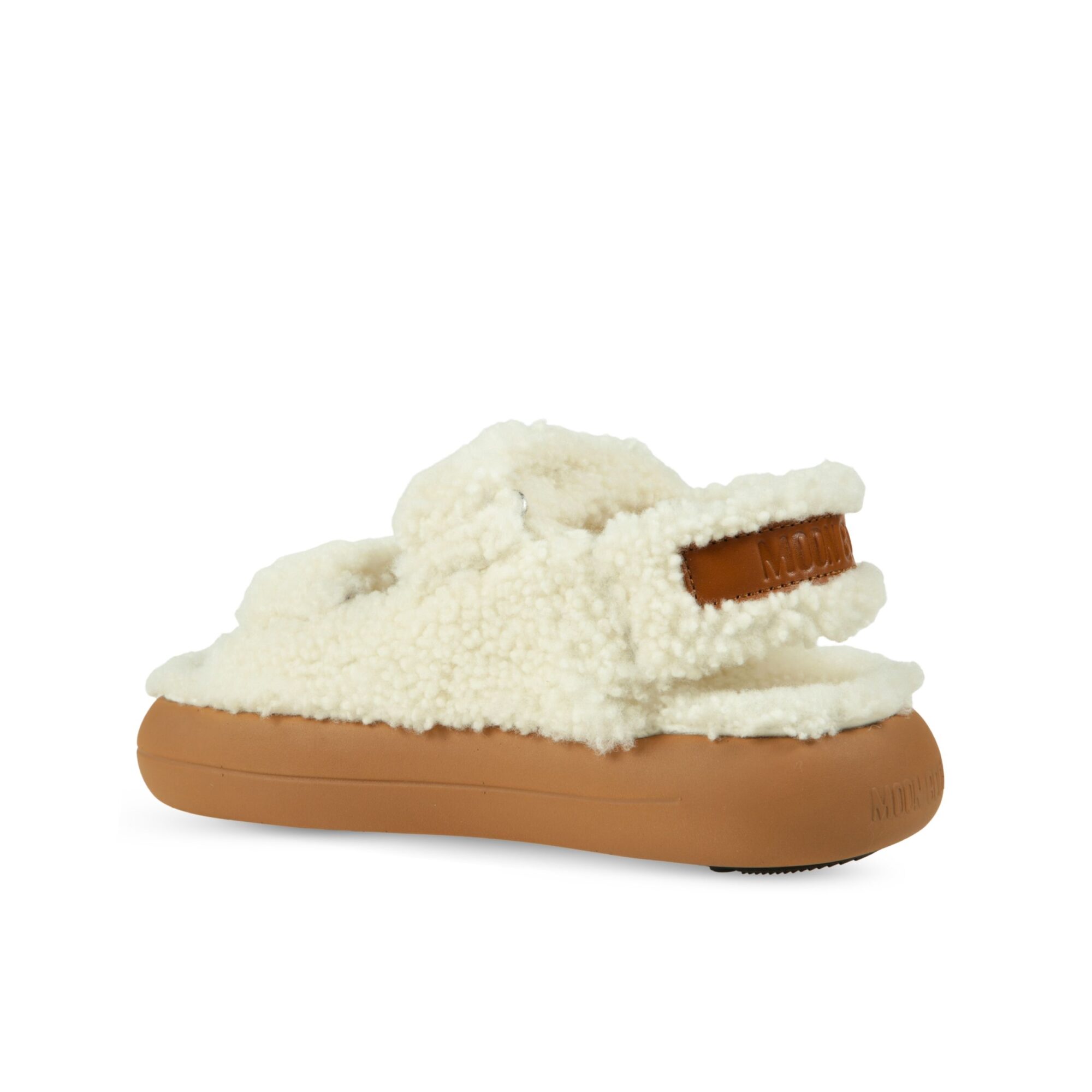 Sandalo Moon Boot in shearling. Design slip-on in pelle con cinturini regolabili e suola in gomma ammortizzata.