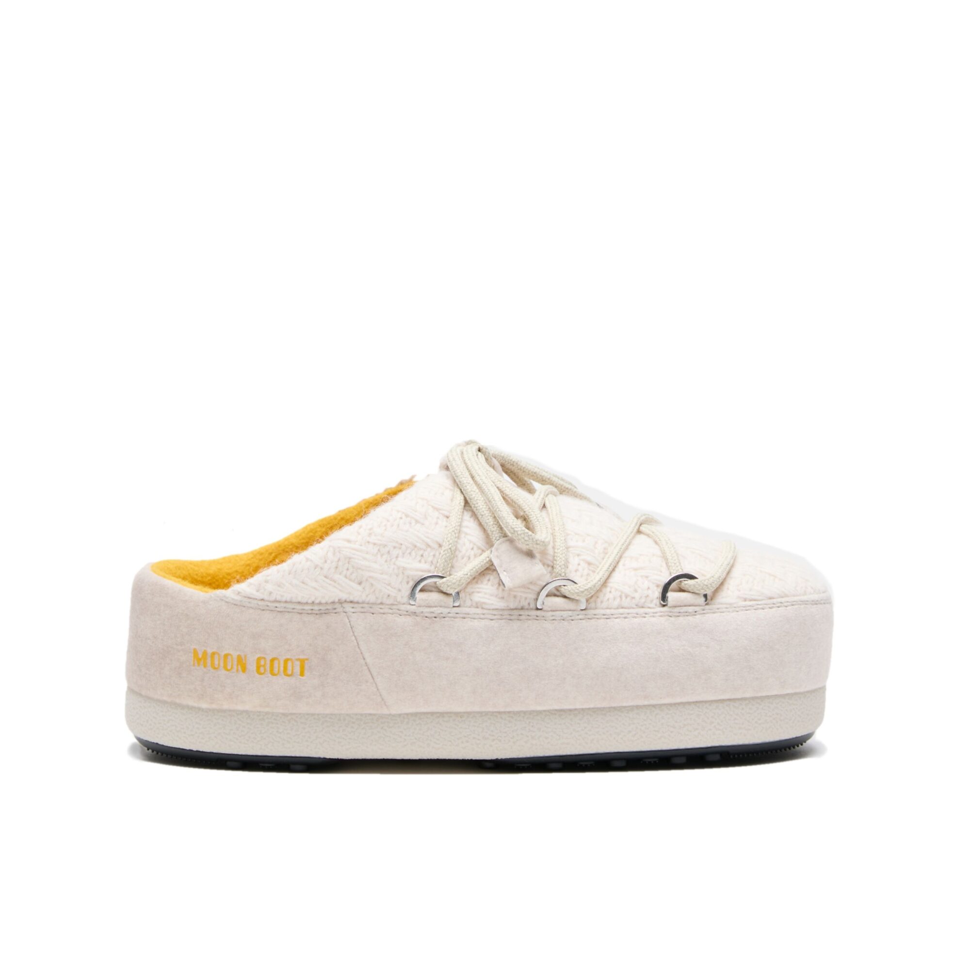 Mule EVX Moon Boot. Design slip-on con tomaia in knitwear, suola chunky in gomma termoplastica e lacci incrociati sul davanti.
