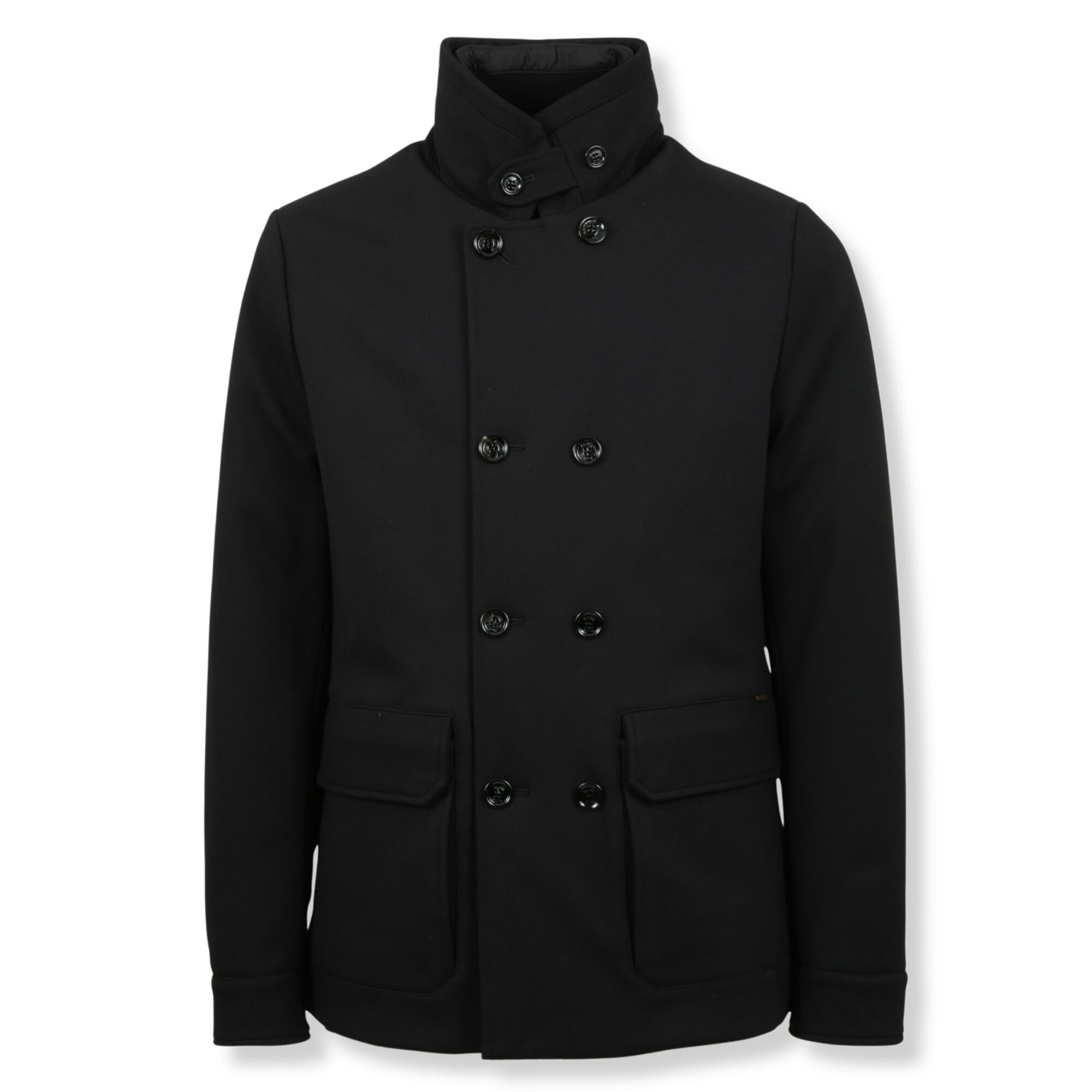 Giacca doppiopetto Moorer. Collo alto con cinturino. Tasche con patta applicate sul davanti.