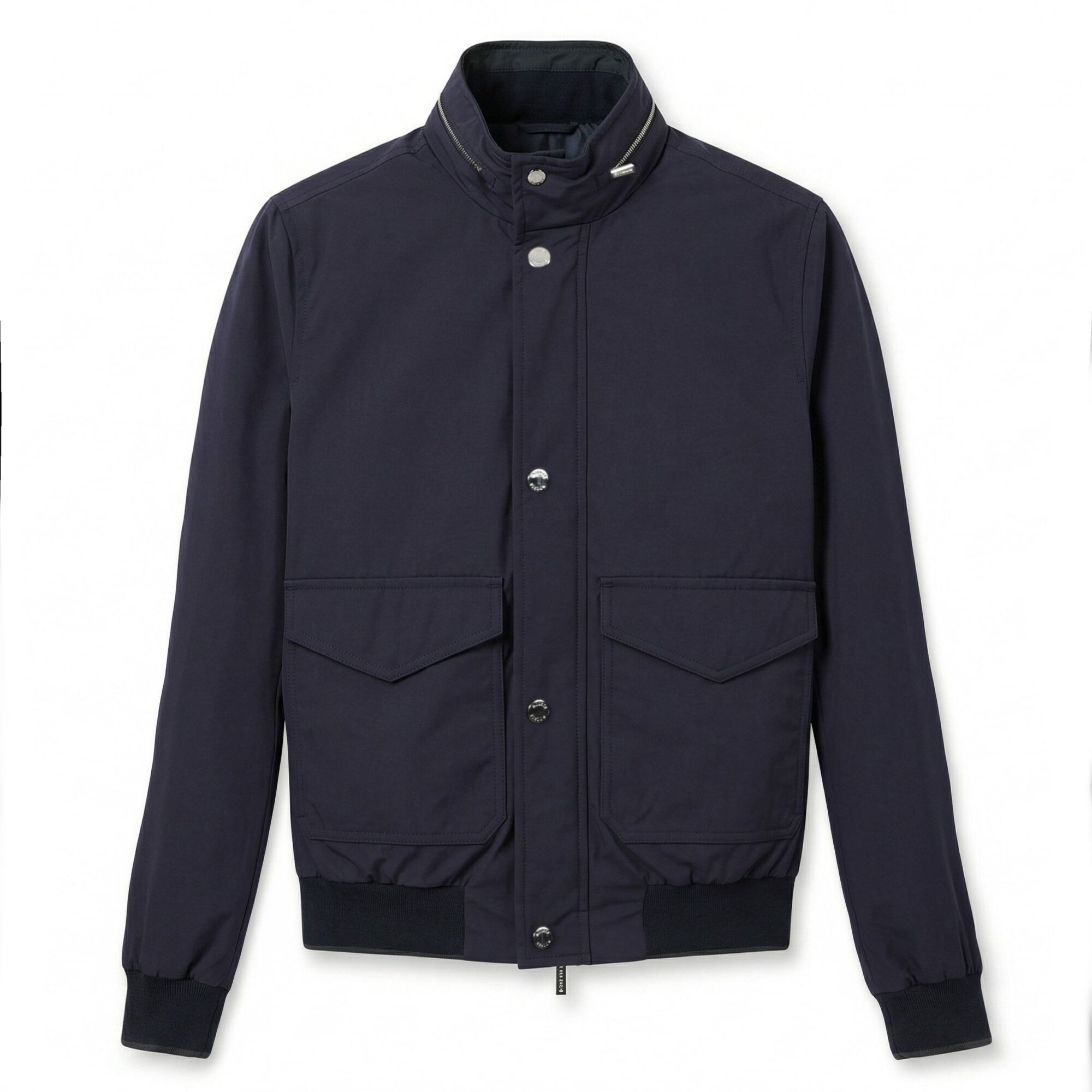 Giubbino Tanner Moorer. Design in twill di poliestere water repellent, collo alto, tasche applicate con pattina, bordi a costine.