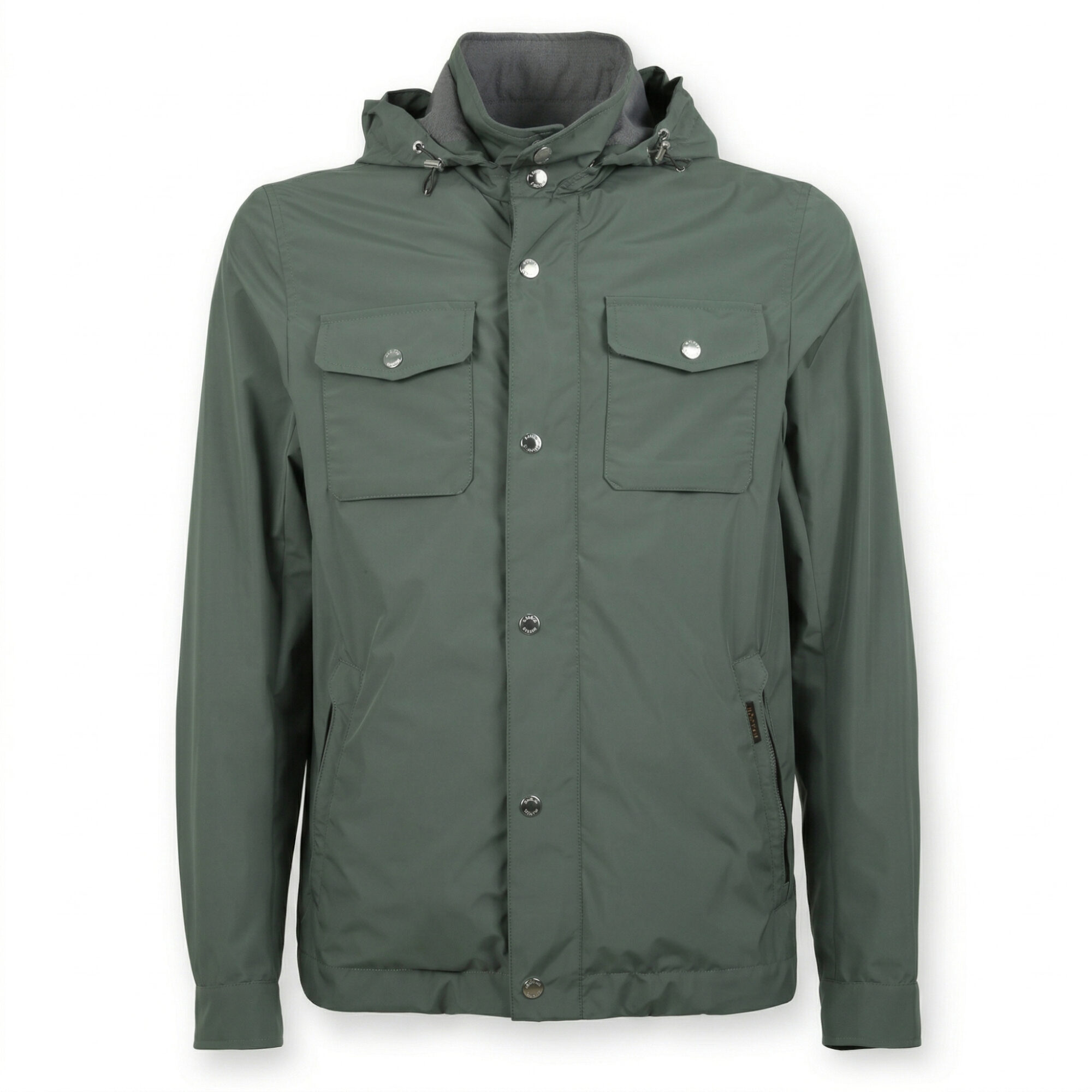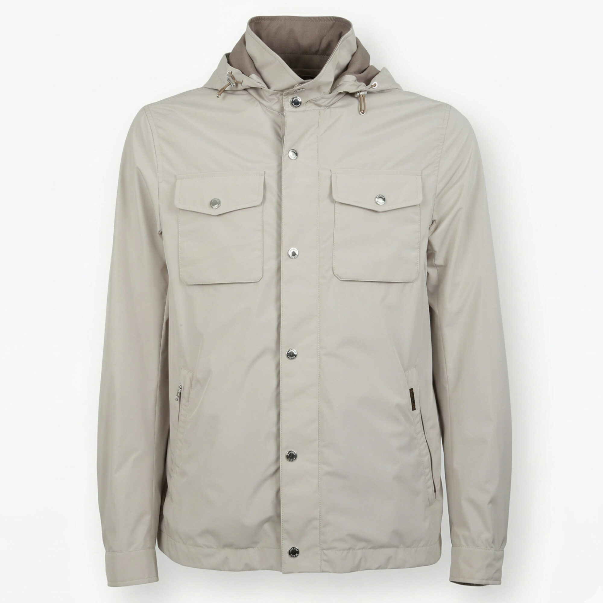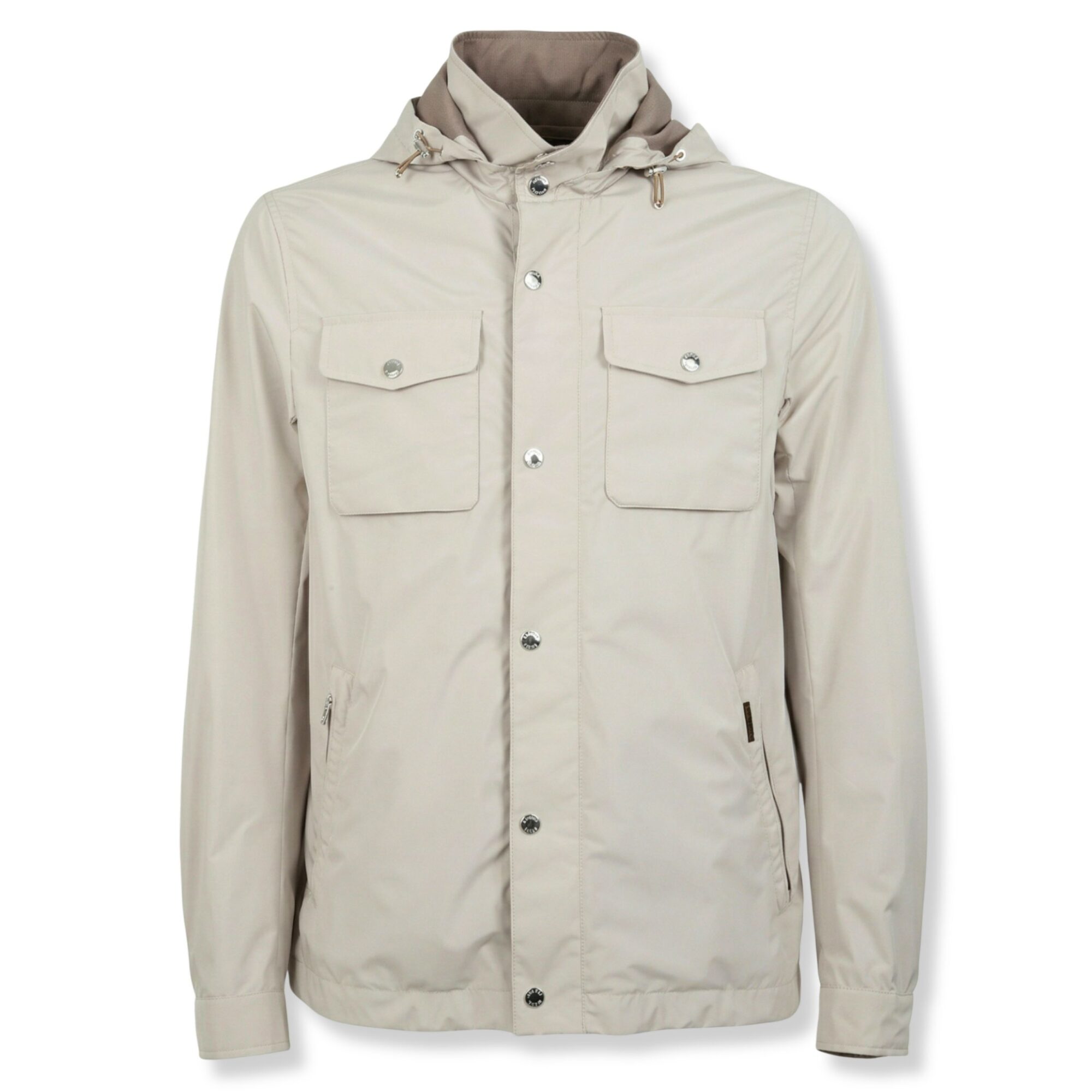 Anorak Fenzi-Stu Moorer. Cappuccio rimovibile, chiusura frontale con bottoni, tasche sul petto con patta e tasche sul davanti con zip nascoste.