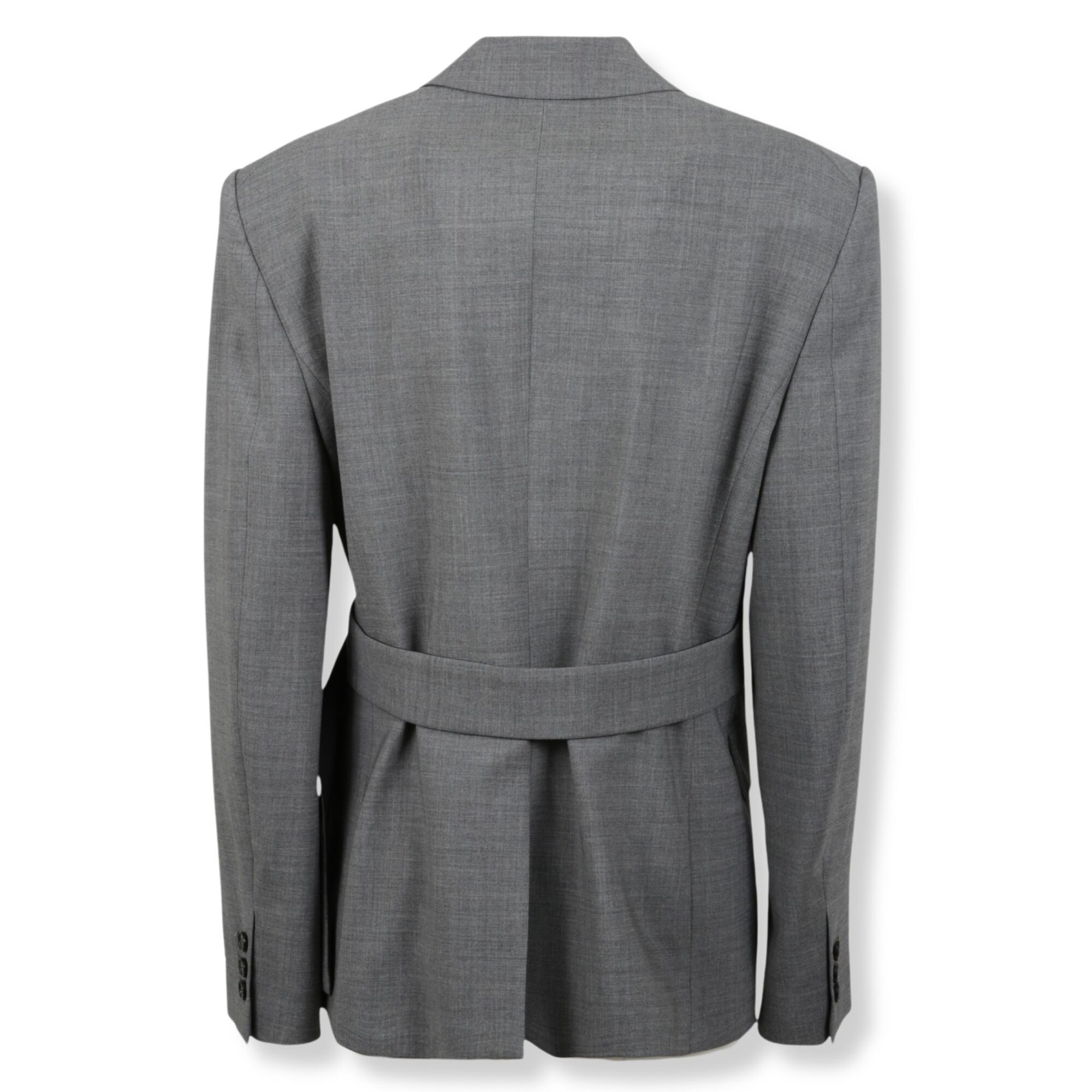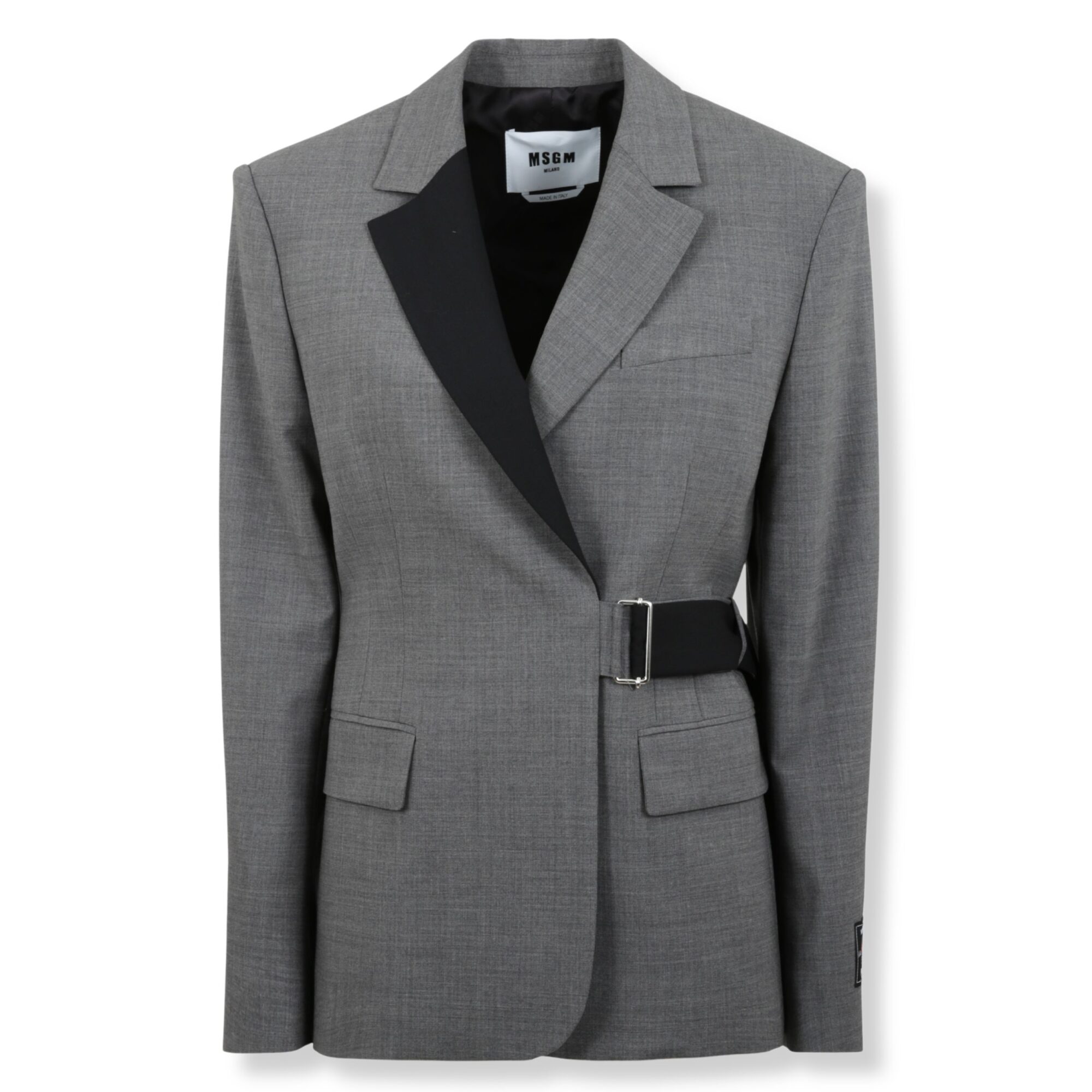Giacca MSGM. Taglio classico, collo rever con dettaglio a contrasto e cintura abbinata in vita con fibbia laterale in metallo. Un taschino a filetto sul petto e due tasche con patta sul davanti.