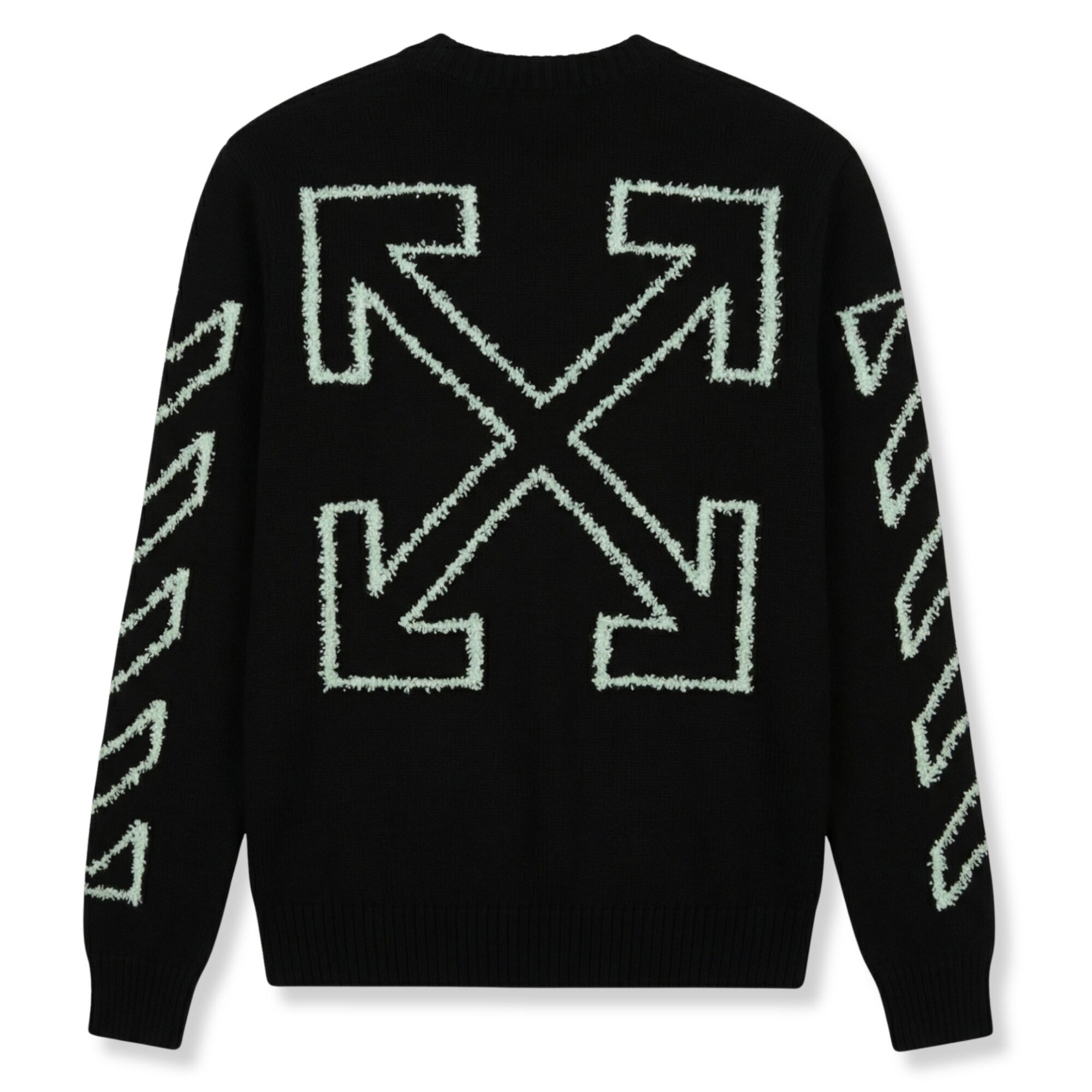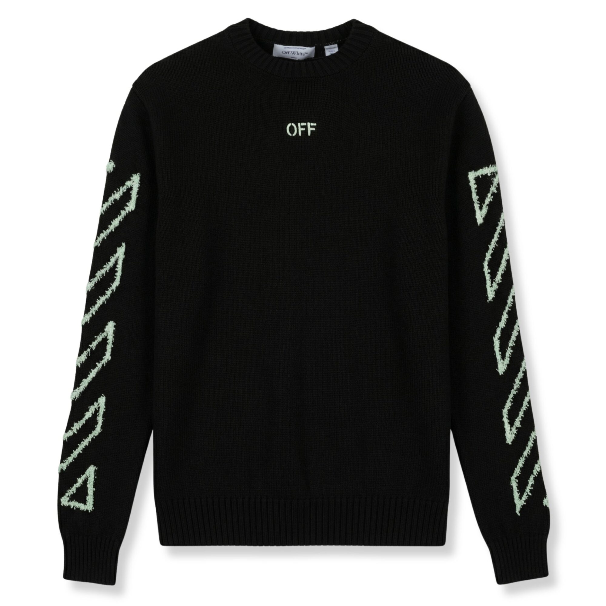Diagonal Arrow Fuzzy Crewneck Sweater Off-White. Modello a girocollo, motivo grafico su maniche e retro, bordi rifiniti a costine.
