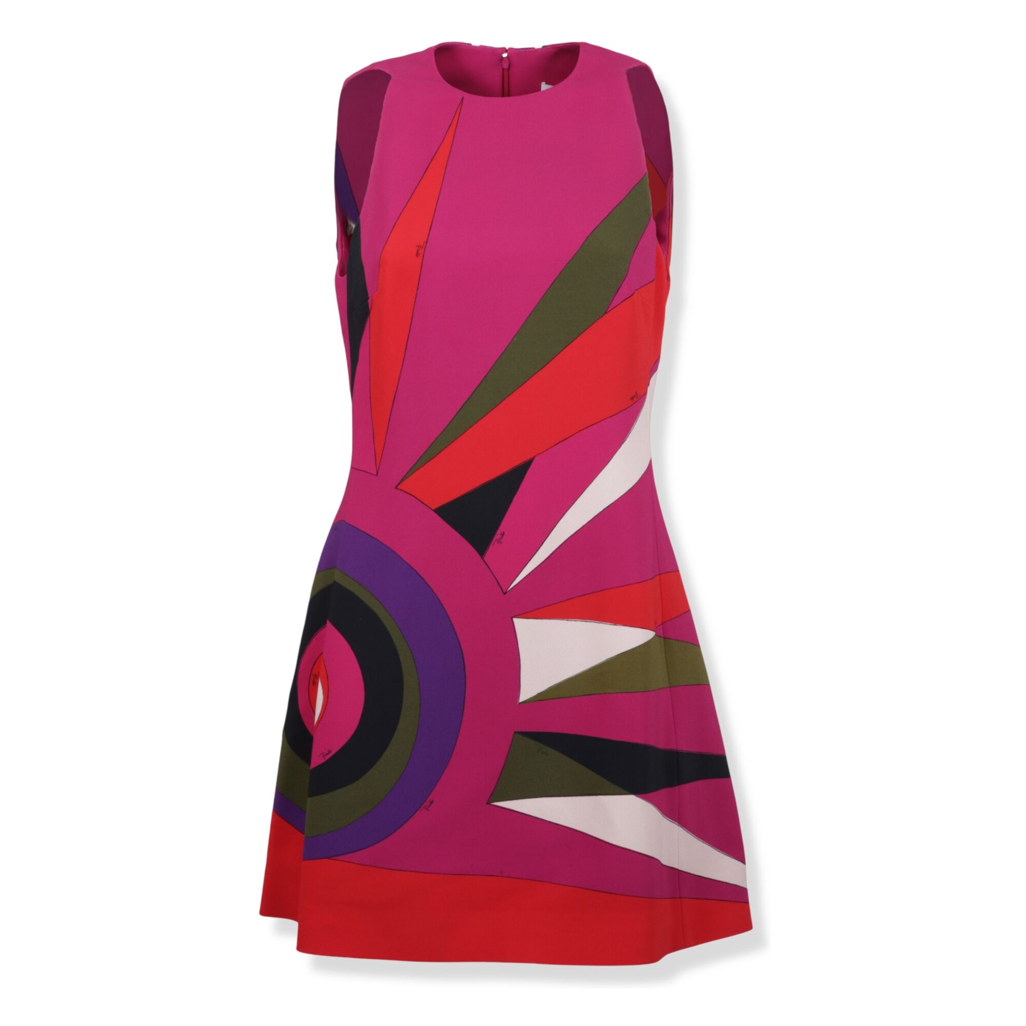 Mini Abito Pucci. Smanicato, girocollo con iconica fantasia multicolore del brand e gonna con orlo svasato.