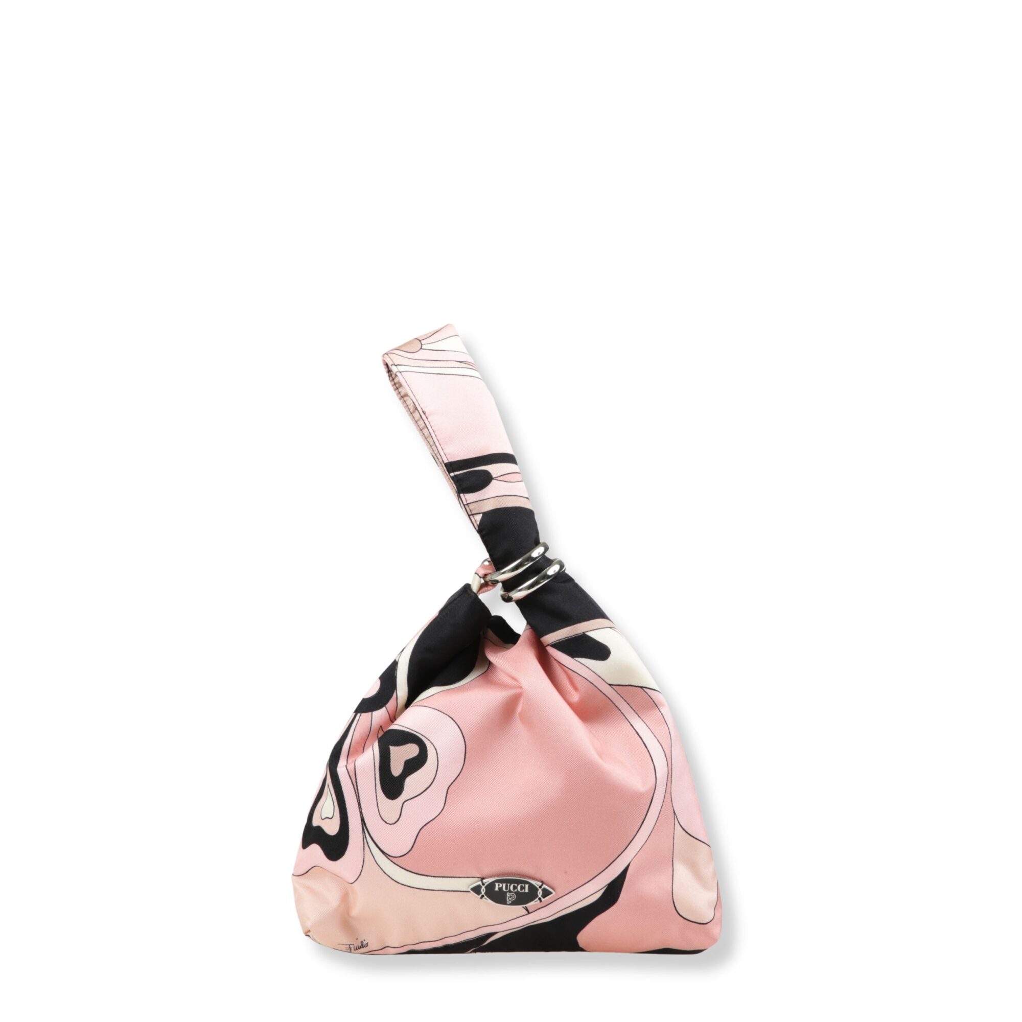 Borsa Emilio Pucci. Design in twill di seta con stampa, manico integrato con spirale metallica decorativa.