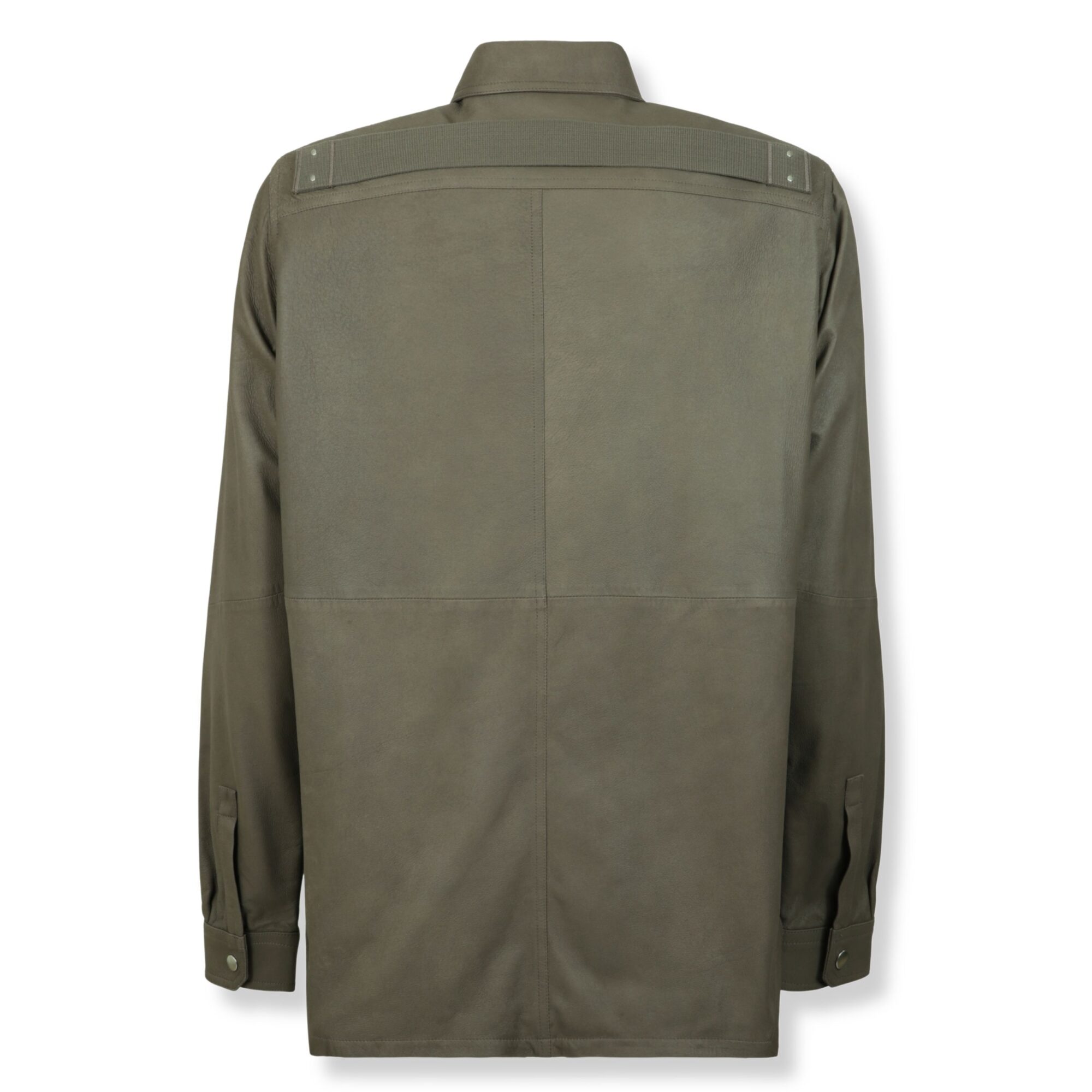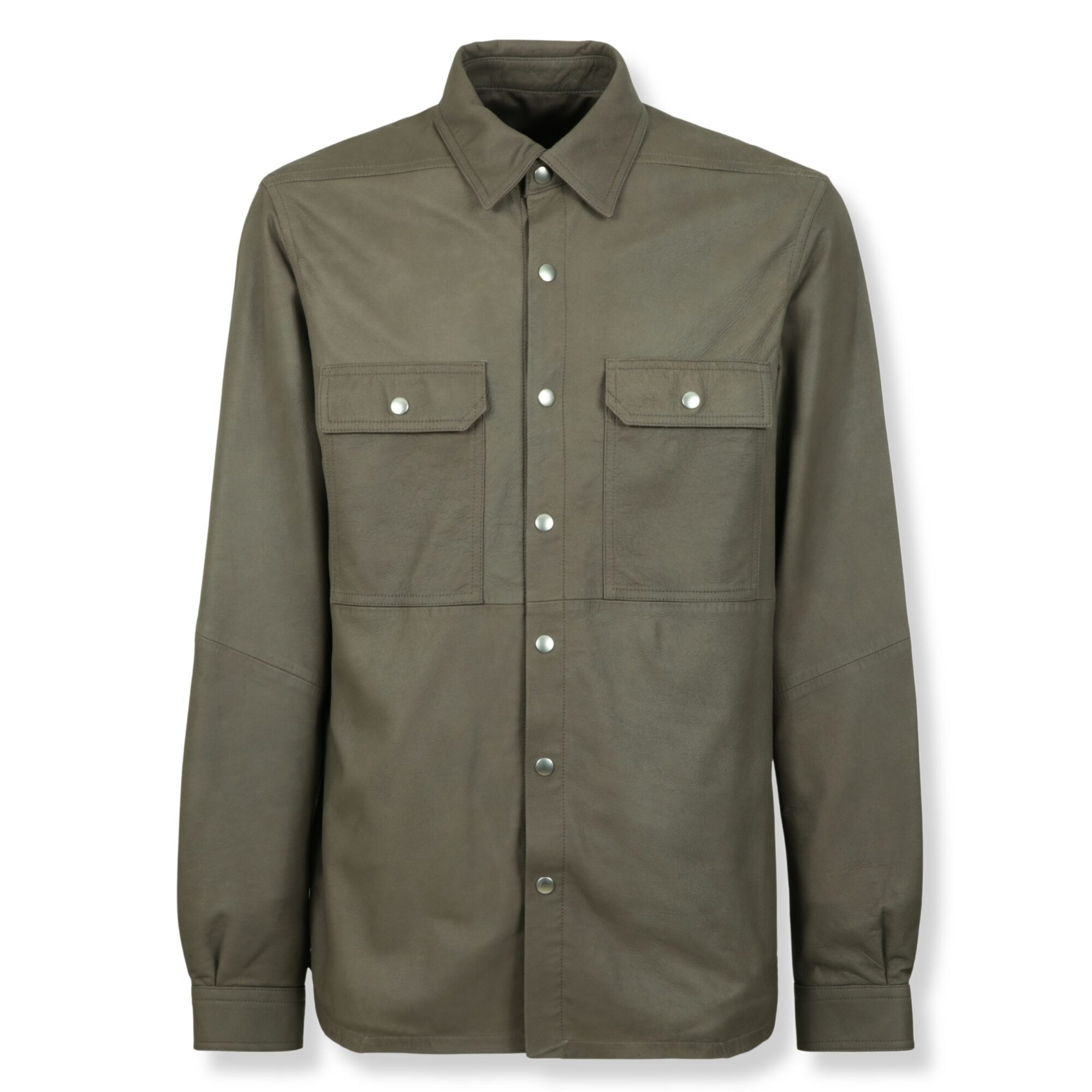 Temple Outershirt Rick Owens. Vestibilità boxy, colletto classico e abbottonatura frontale, due tasche con patta sul petto.