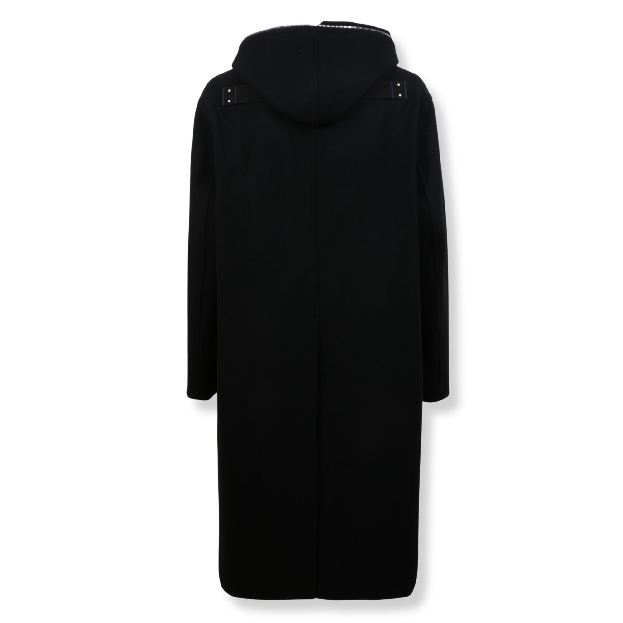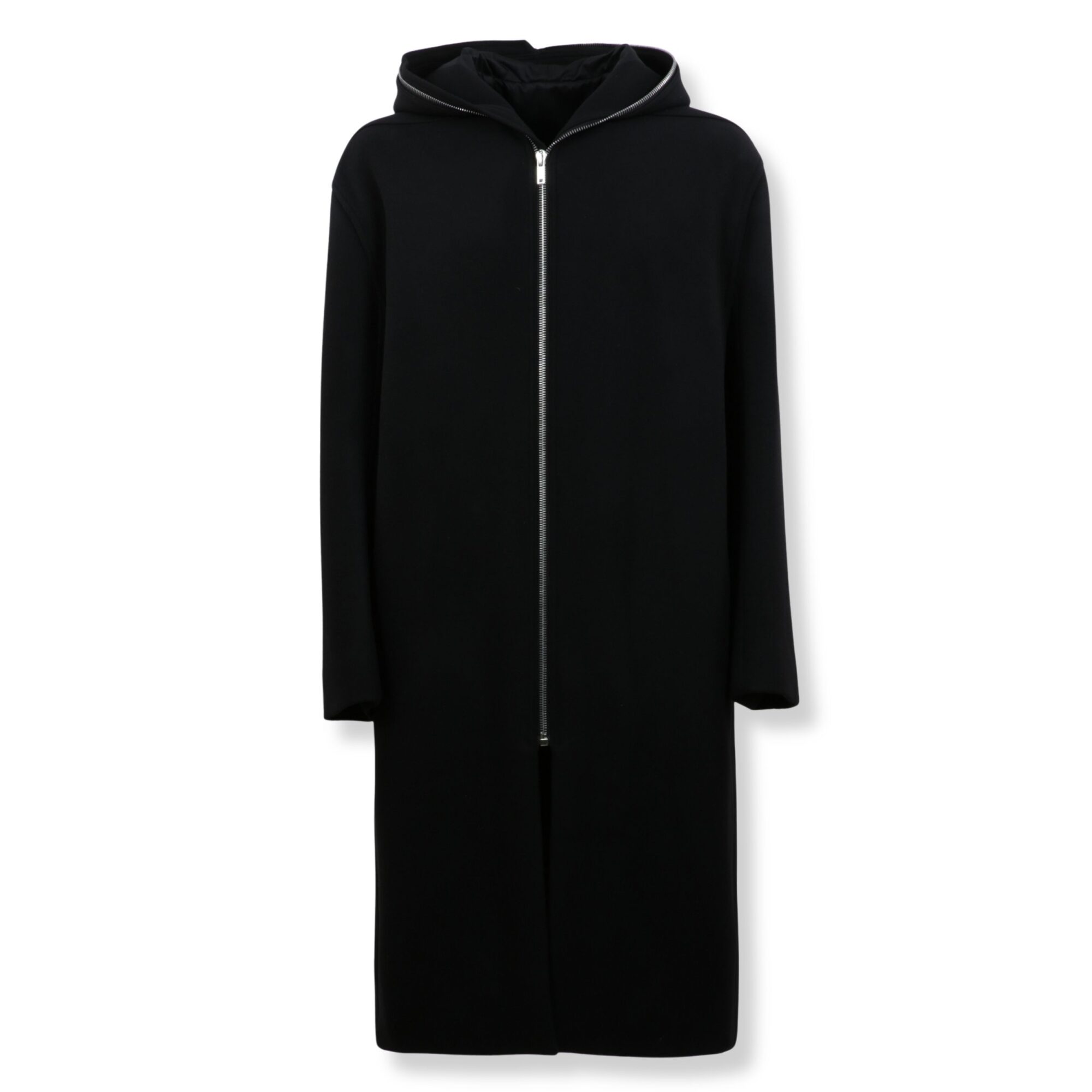 Gimp Mac Rick Owens. Cappotto lungo con cappuccio. Linea dritta. Zip frontale che si chiude lungo l’orlo del cappuccio.